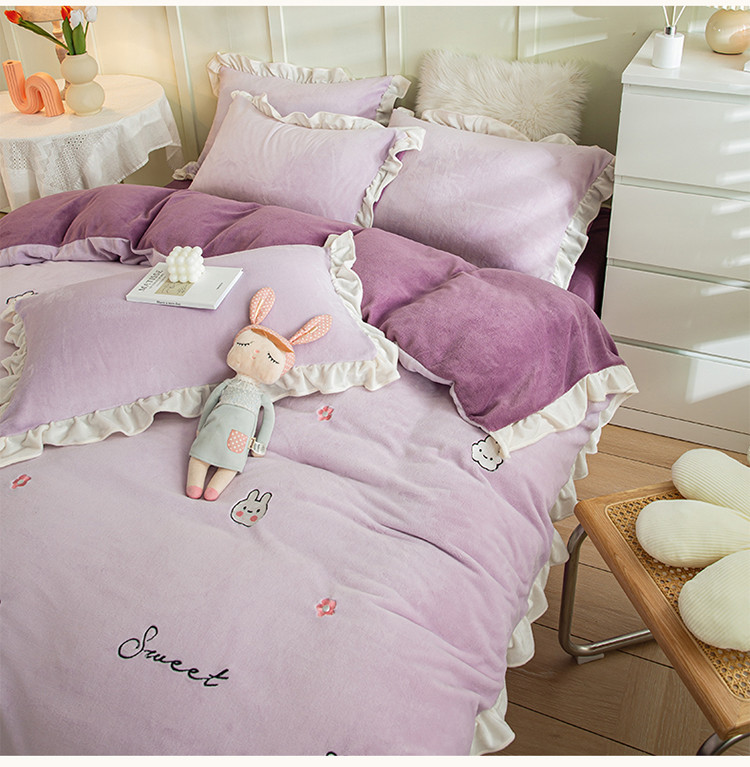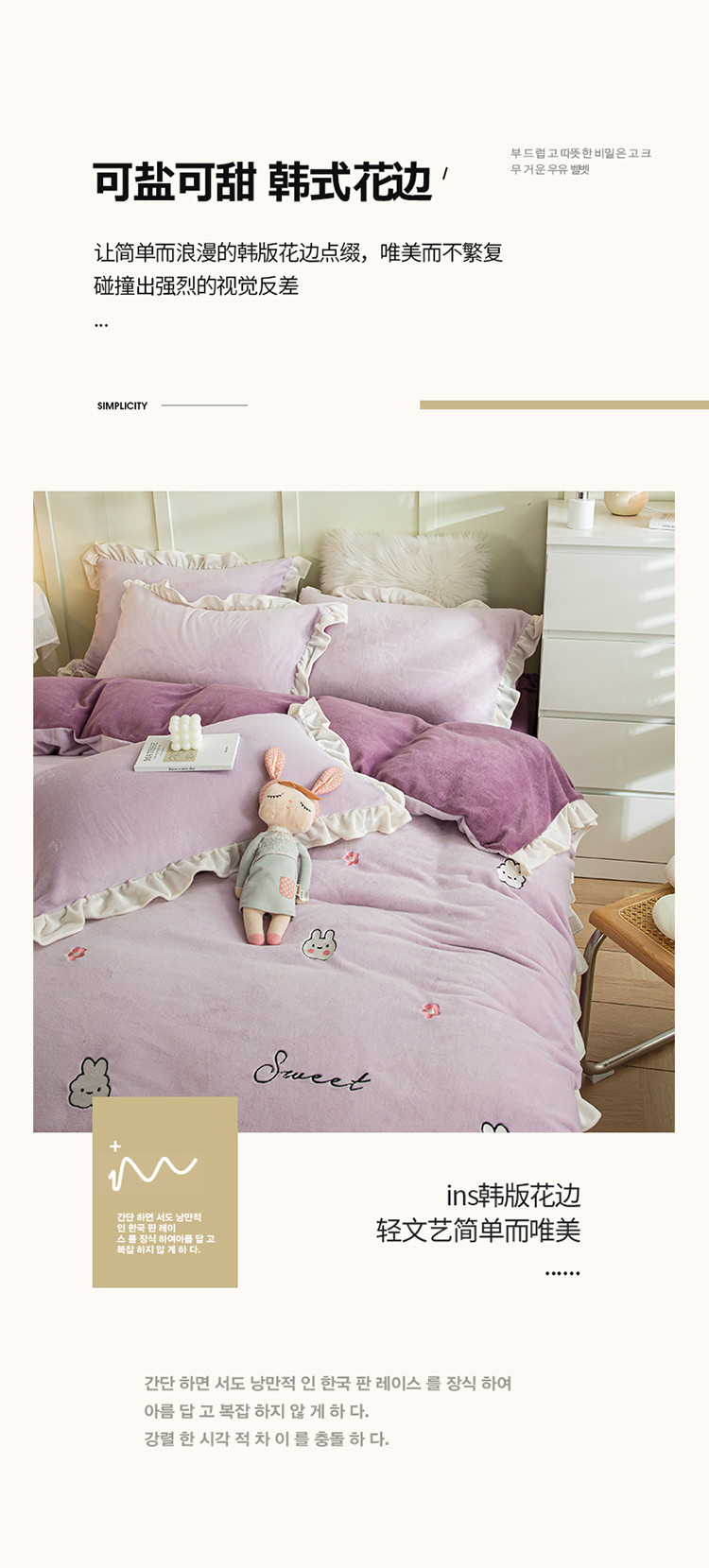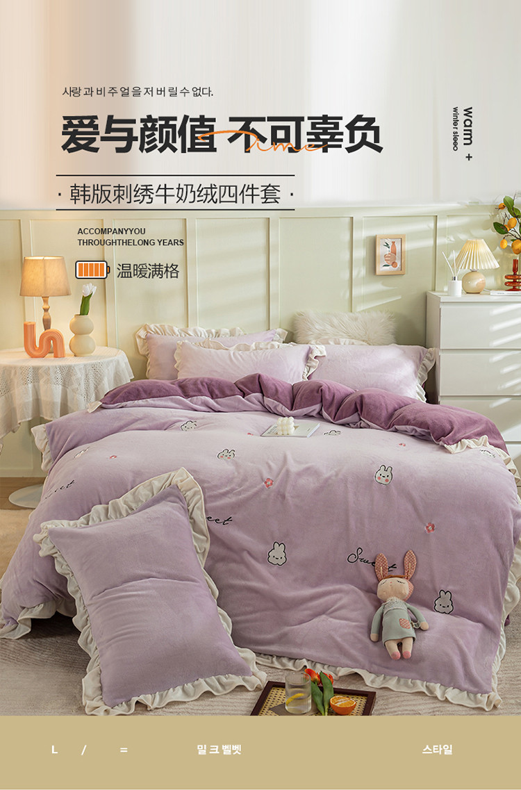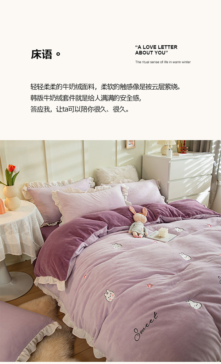沐辰 2021新款超厚韩版刺绣牛奶绒四件套 甜心兔兔-紫