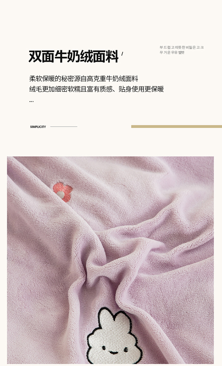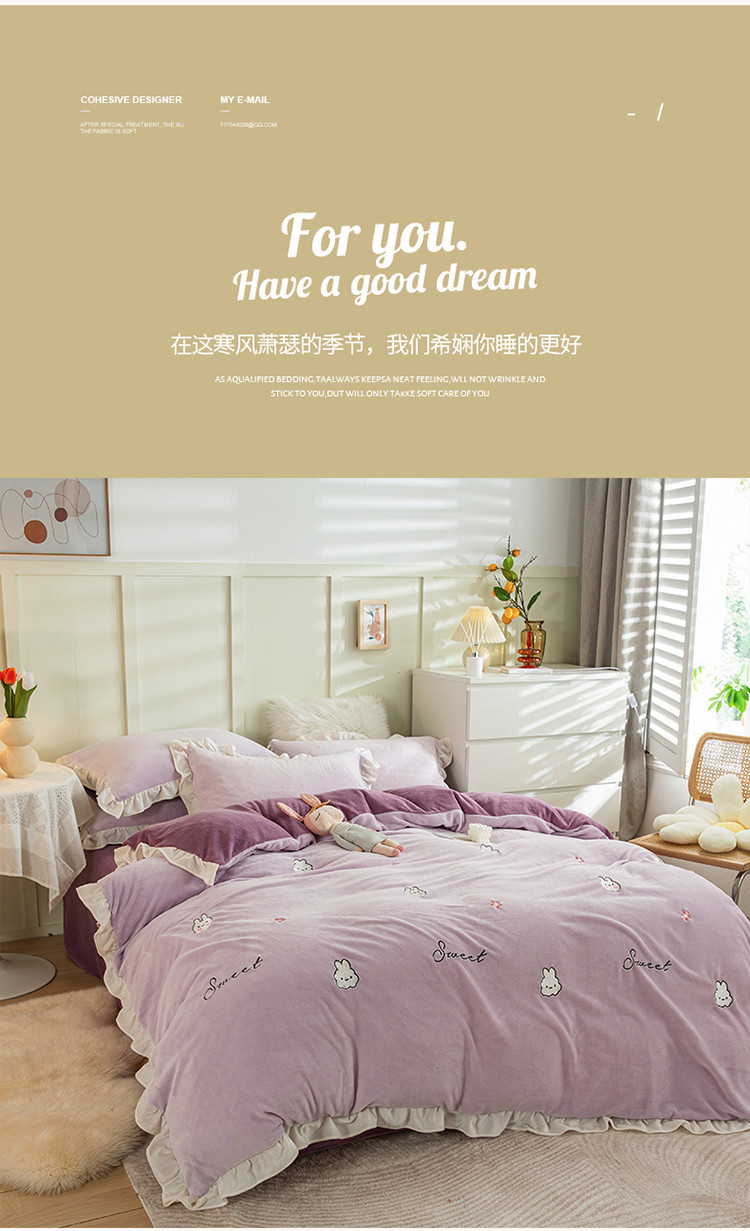 商品名称:沐辰 2021新款超厚韩版刺绣牛奶绒四件套 甜心兔兔-紫