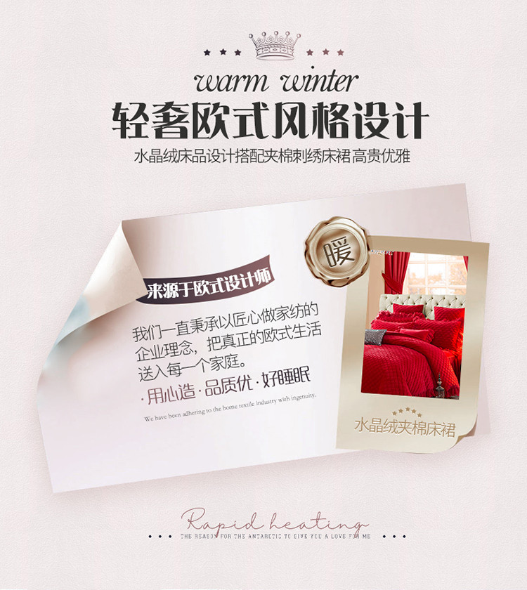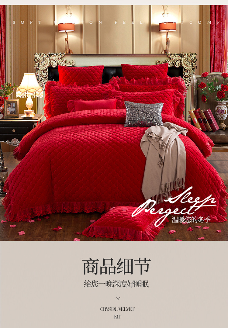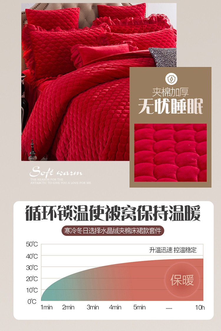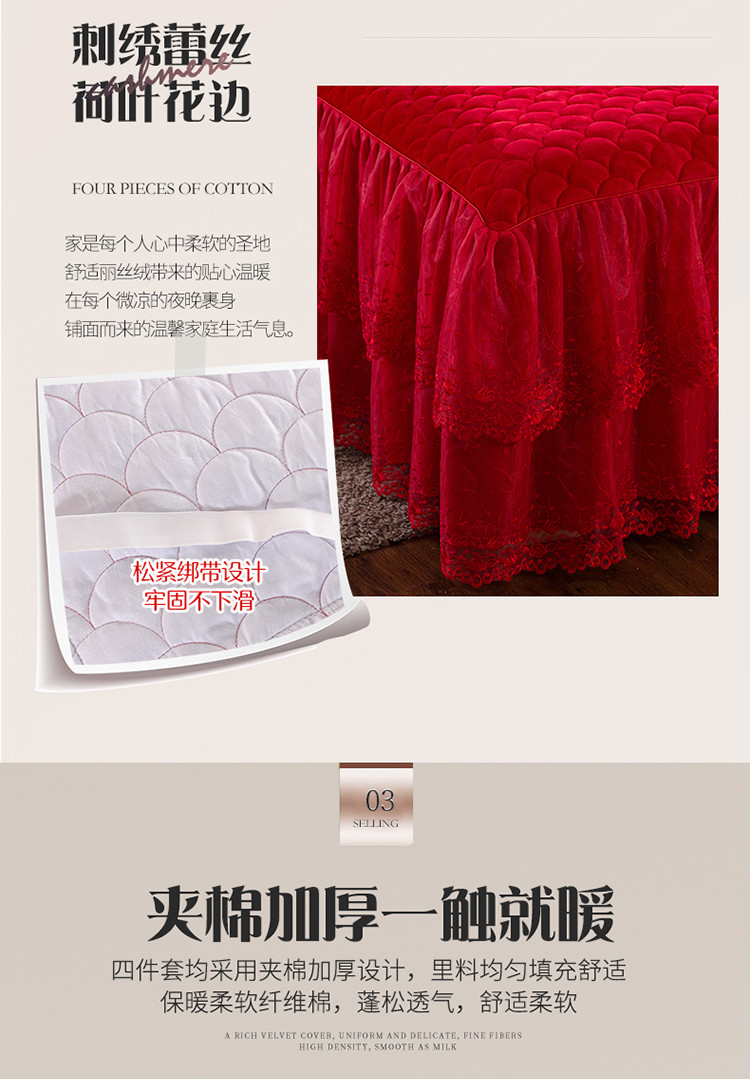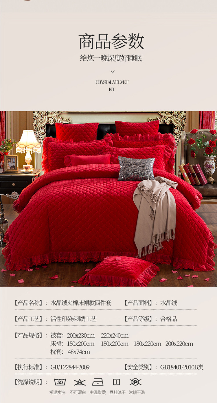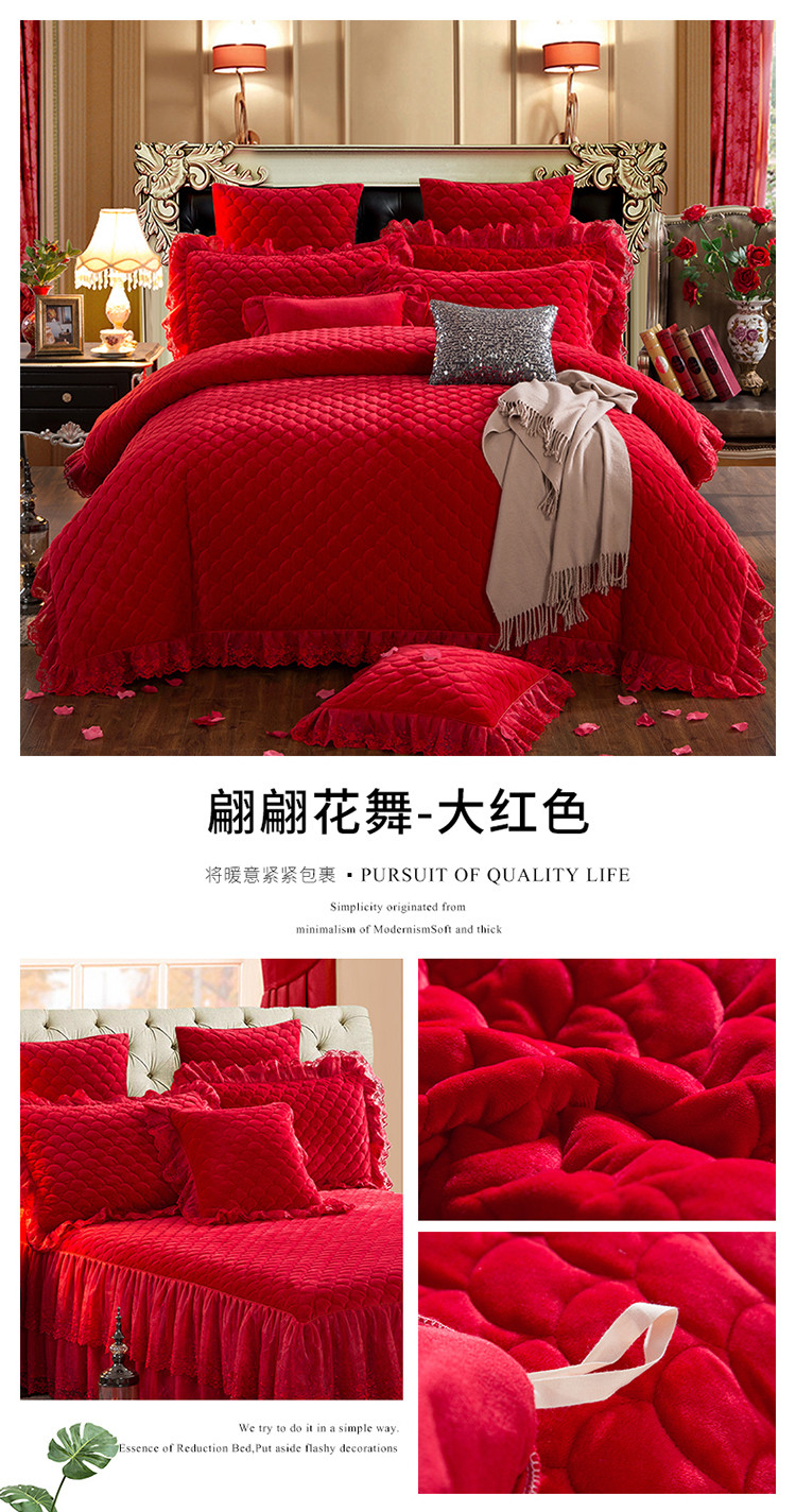 当前位置: 91家纺网 > 商品网购 > 床品套件 > 四件套 > 水晶绒四件套 > 恒爱2021新款水晶绒夹棉床裙款翩翩花舞系列四件套 大红色