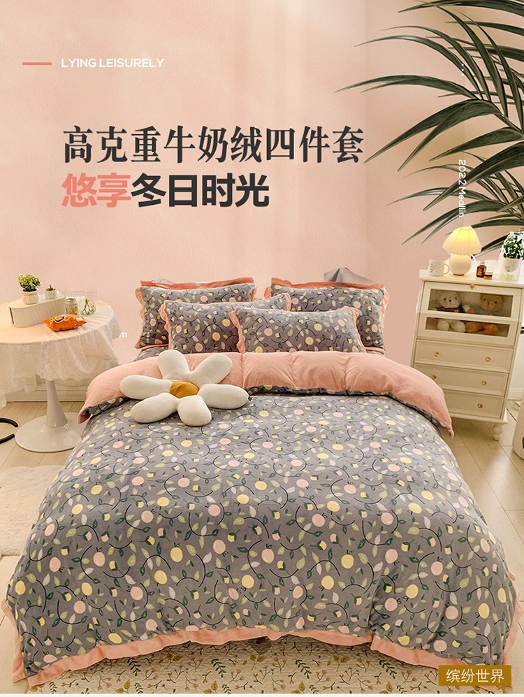 商品名称:金爱家 2021新款高克重牛奶绒四件套 缤纷世界