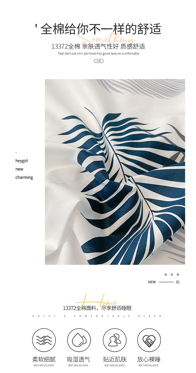 雅居纺家纺 2022新款13070全棉四件套 羽叶