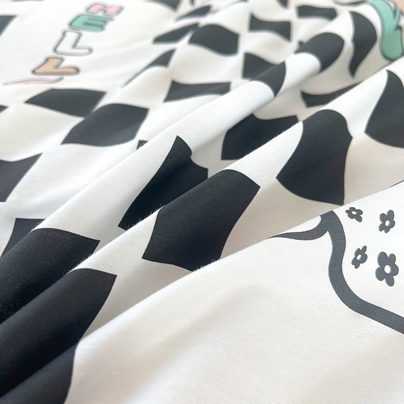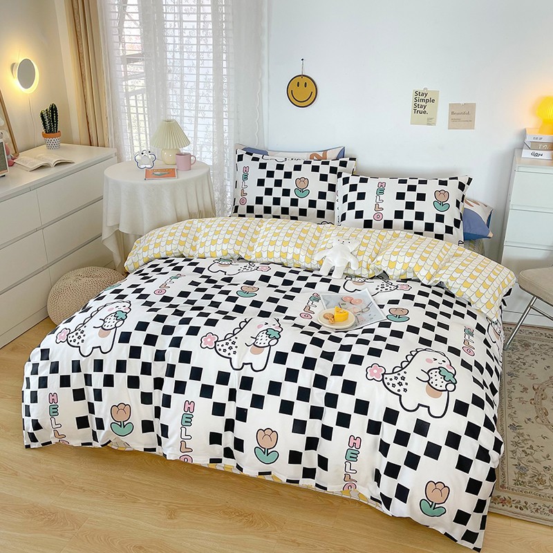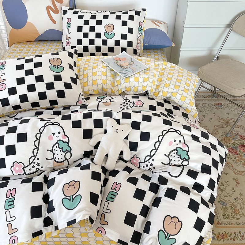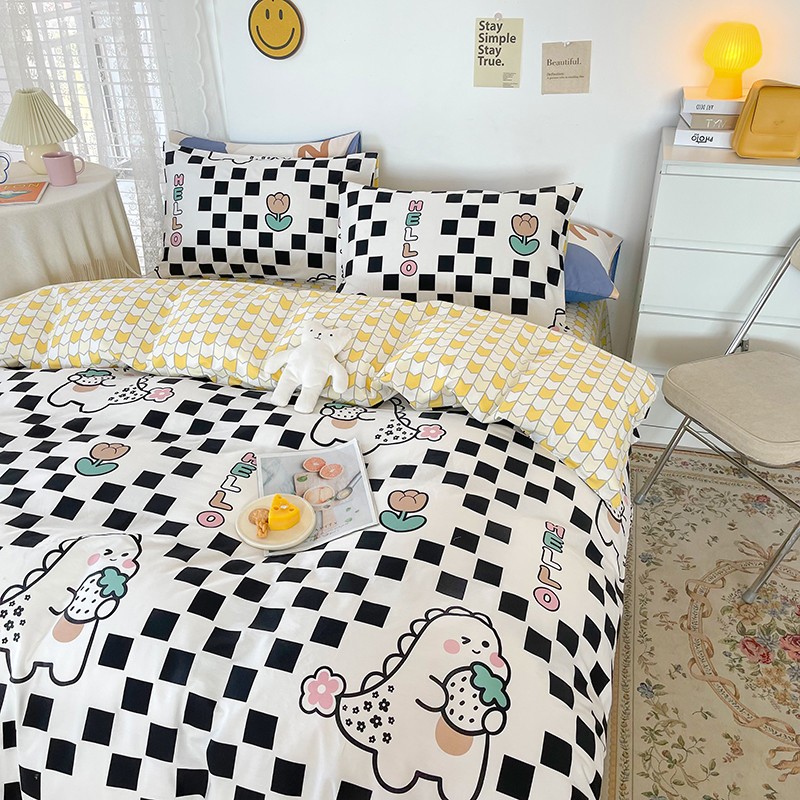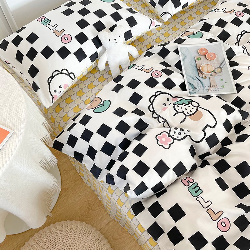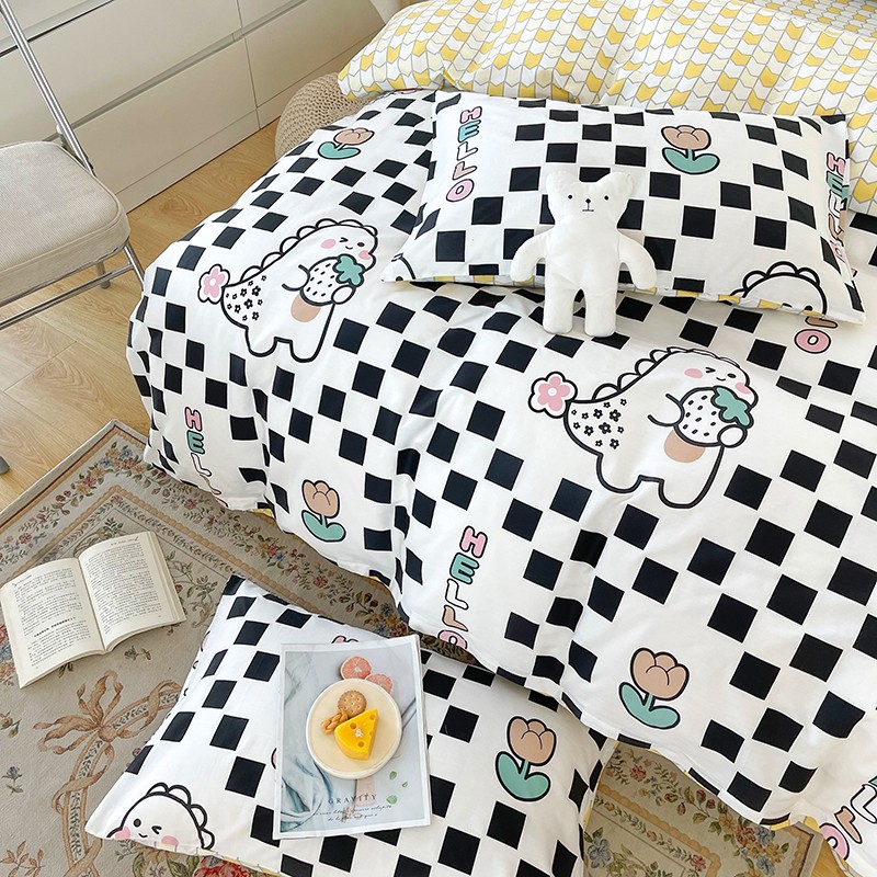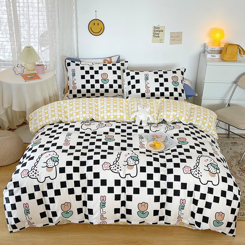 感遇家纺 2022新款全棉印花四件套 黑格恐龙