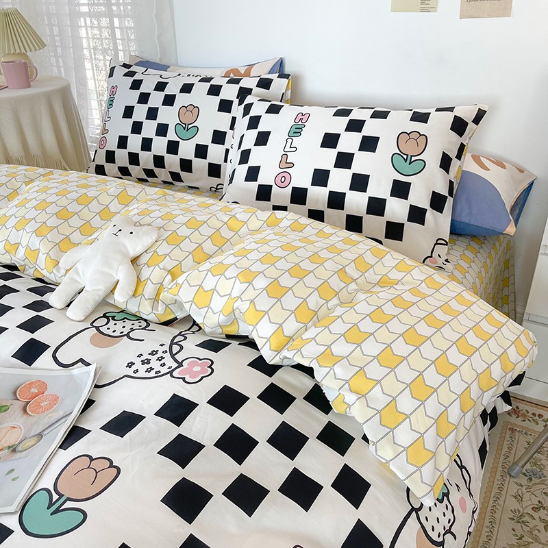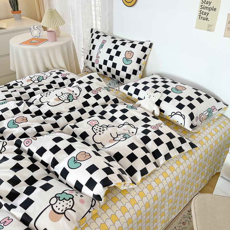 (总)感遇家纺 2022新款全棉印花四件套,格子草莓,花晓,滑板小熊,萌宠,时光,兔宝宝,熊先生