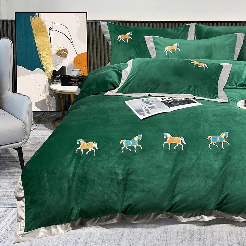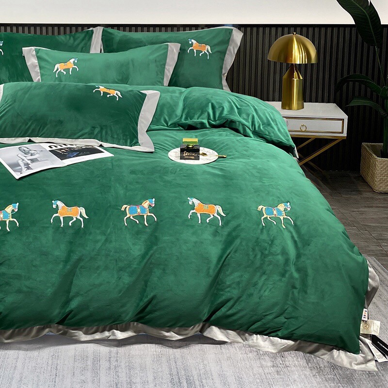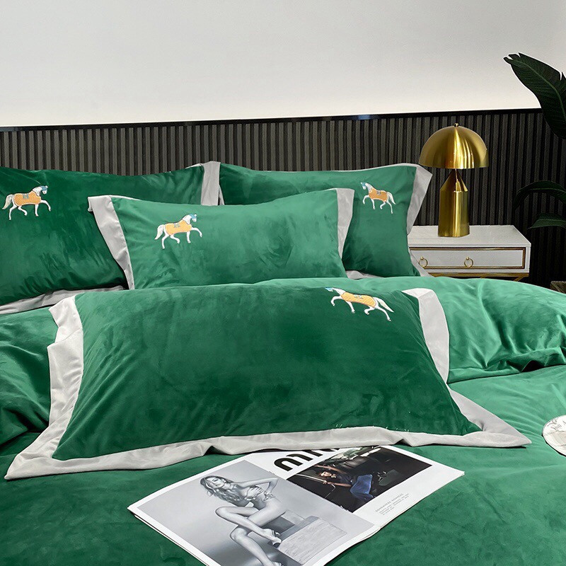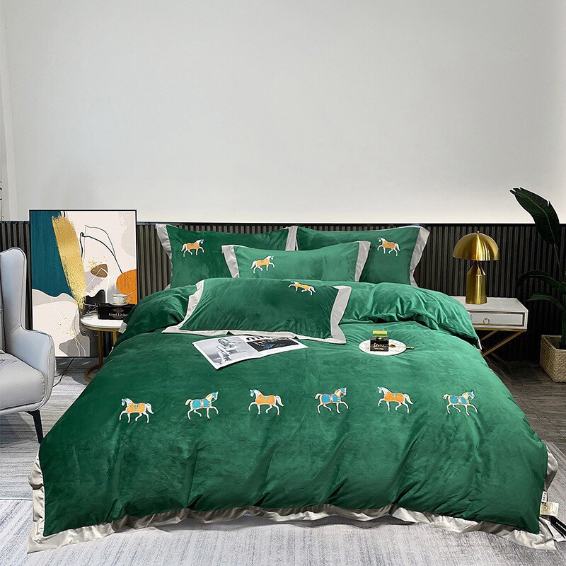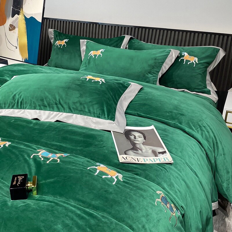 玖玖爱家纺 2021新款爱马仕婴儿绒保暖四件套 爱马仕丝绒绿