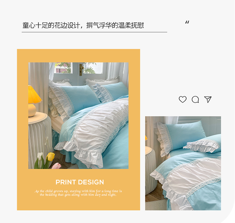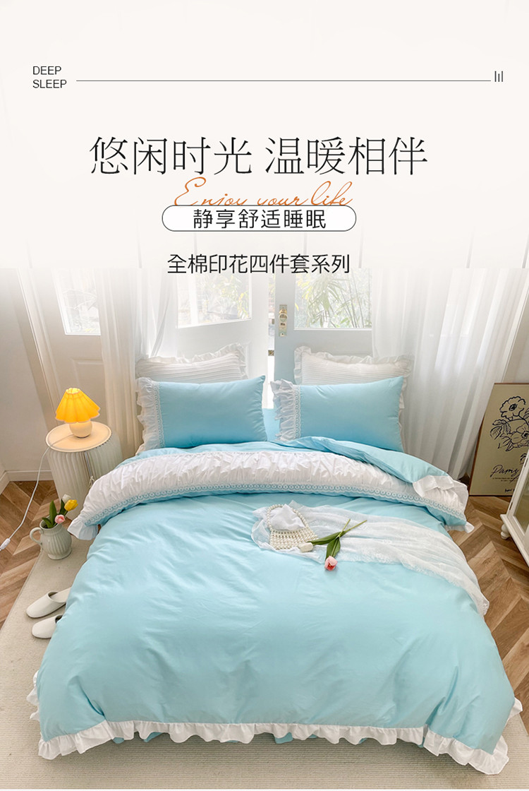 商品名称:淑女公社 2022新款全棉少女心事系列四件套 海洋蓝