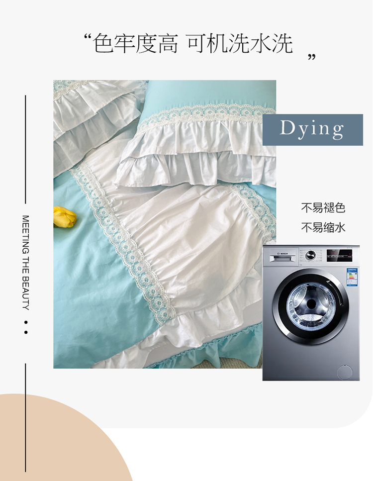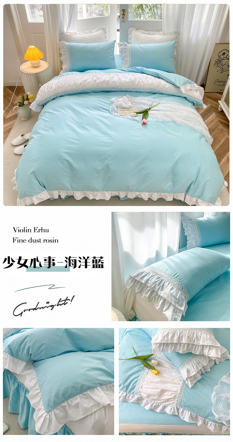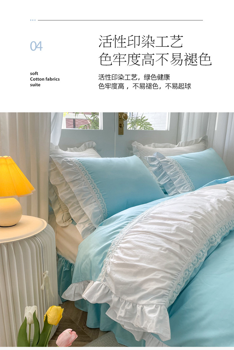 淑女公社 韩版纯棉床裙款四件套-微微公主系列 蓝色,蓝色