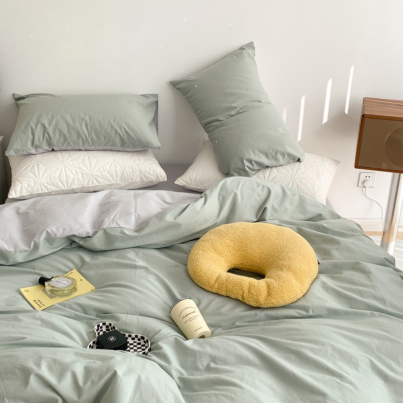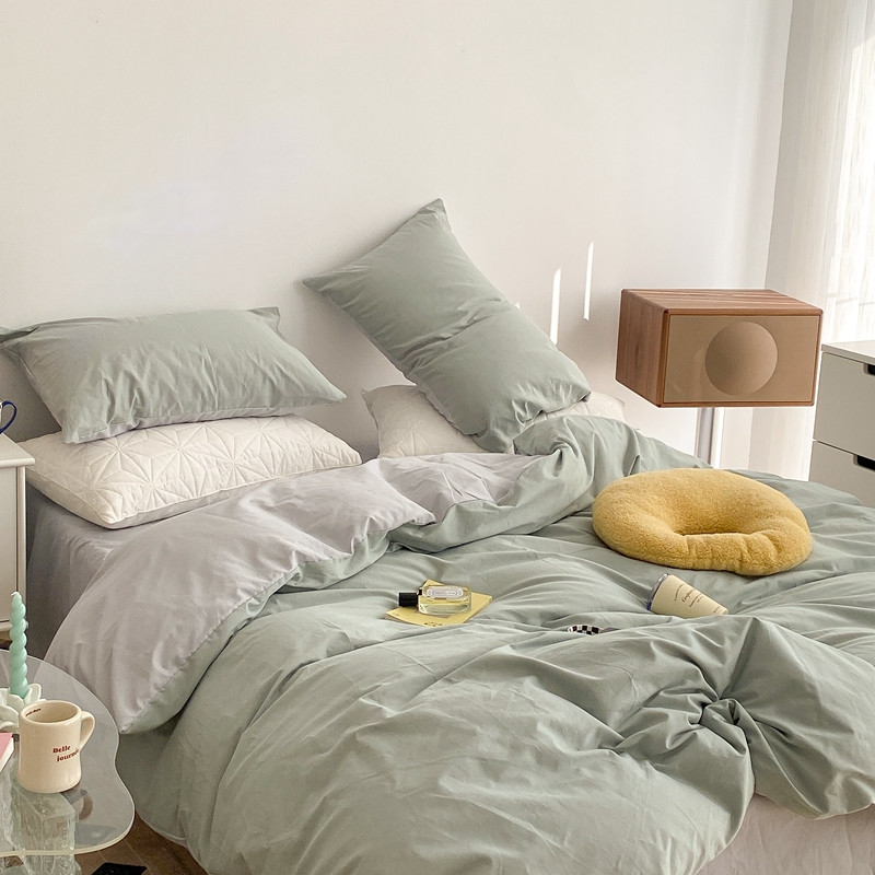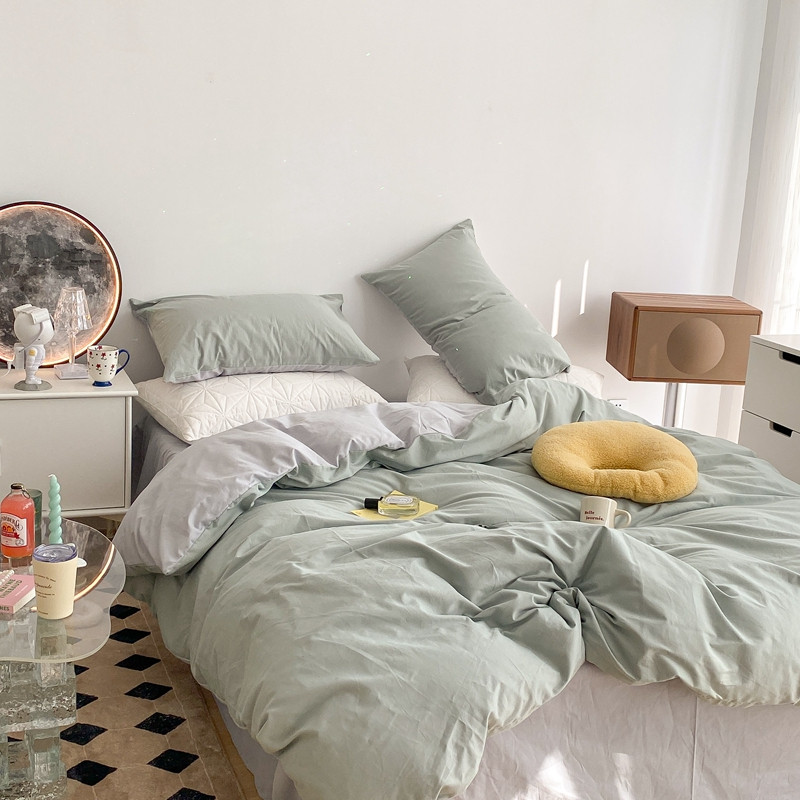 商品名称:昔可家纺 2021新款双拼加厚磨毛四件套 抹茶绿双拼