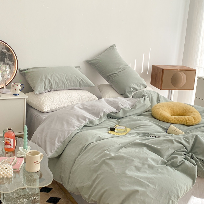 昔可家纺 2021新款双拼加厚磨毛四件套 抹茶绿双拼
