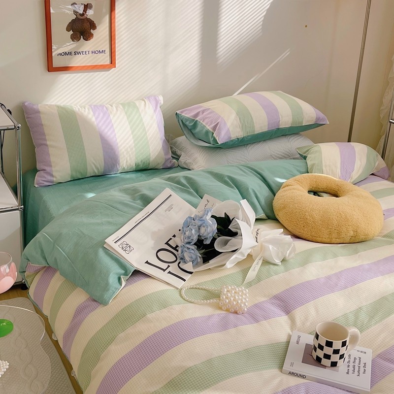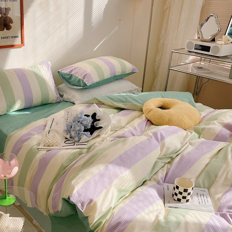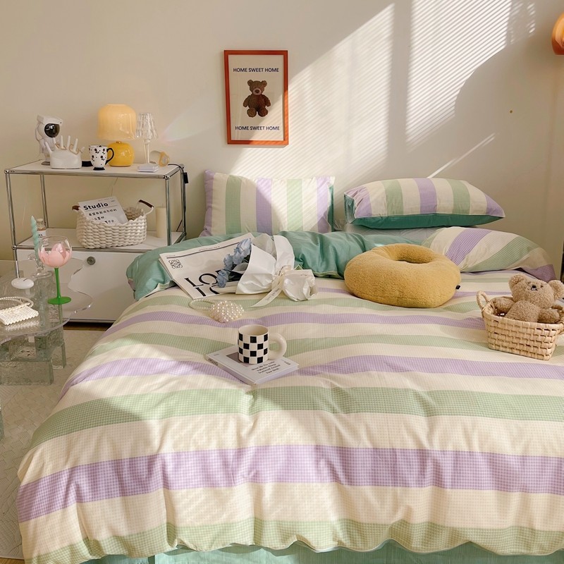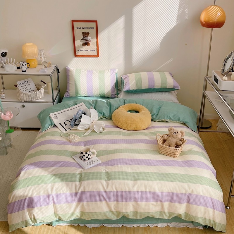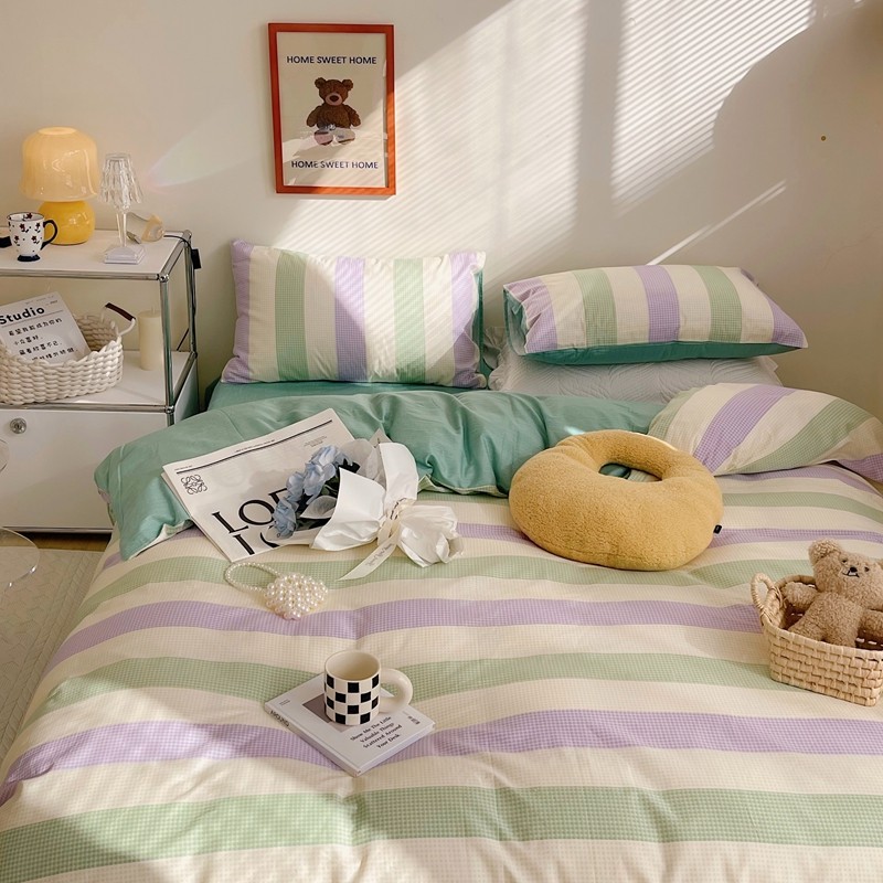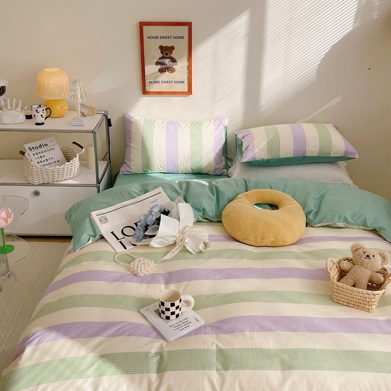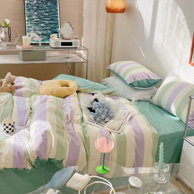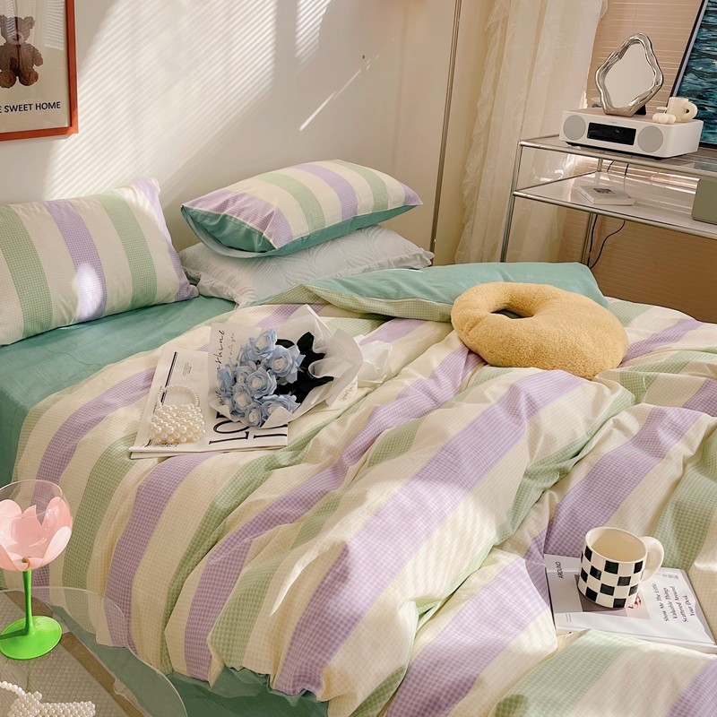 商品名称:顾里 2022新款13372全棉四件套-日系渐变条纹 香草芋泥