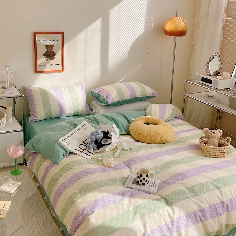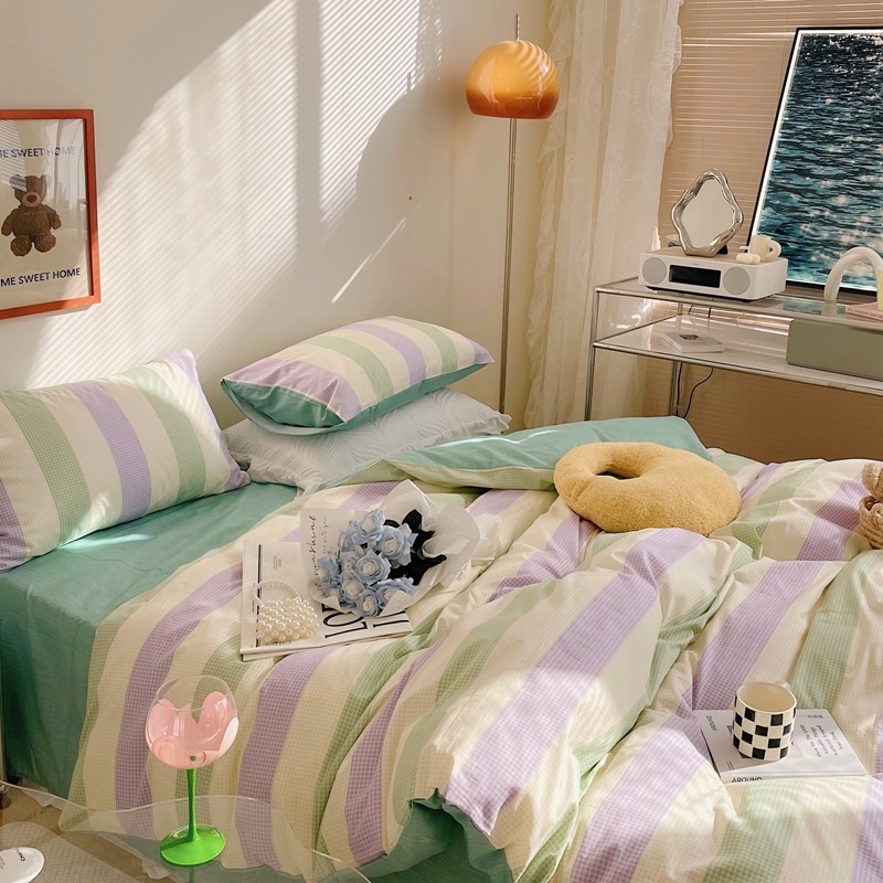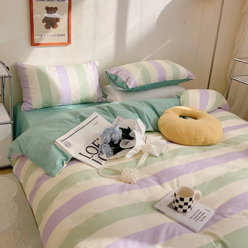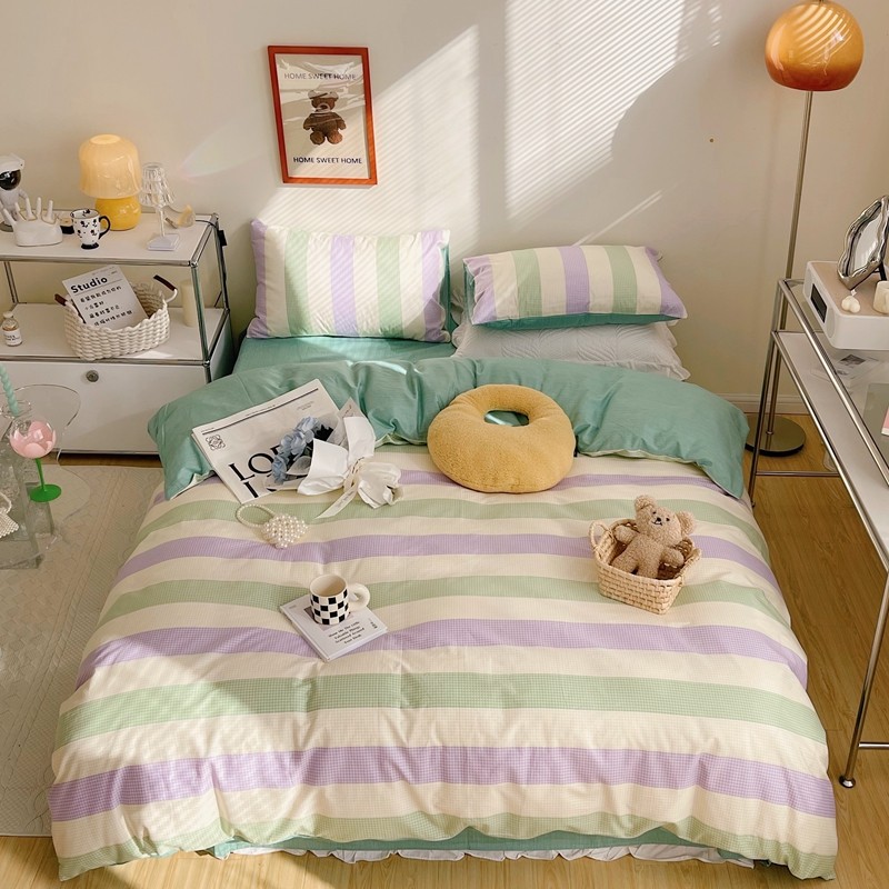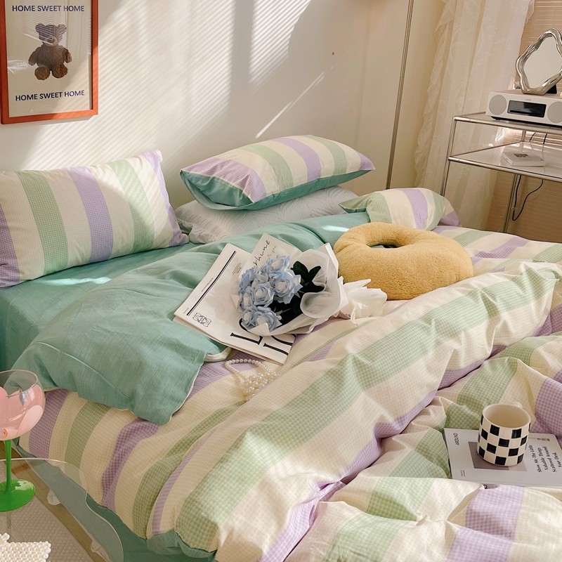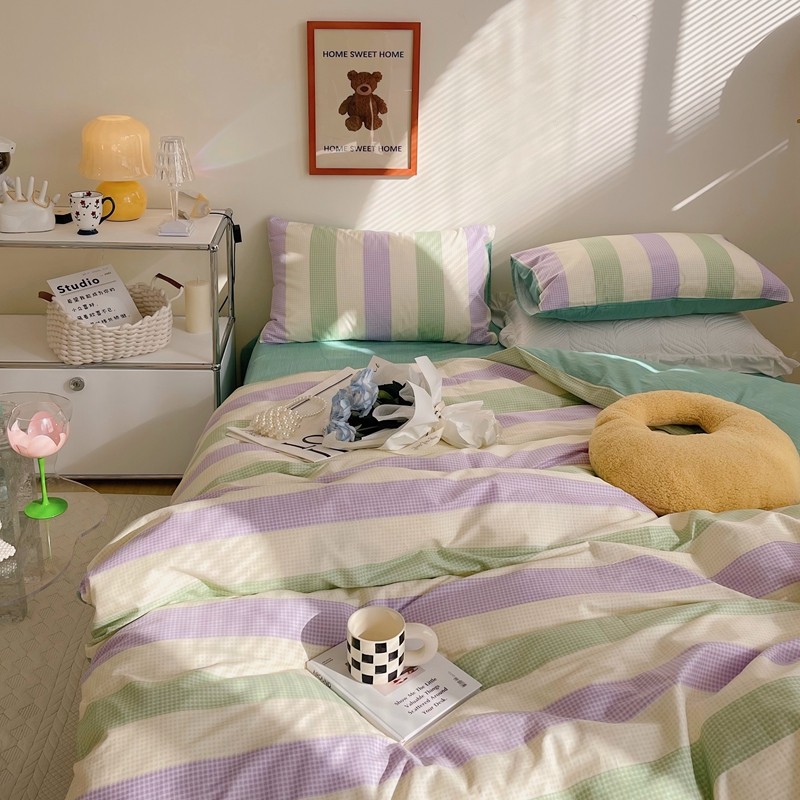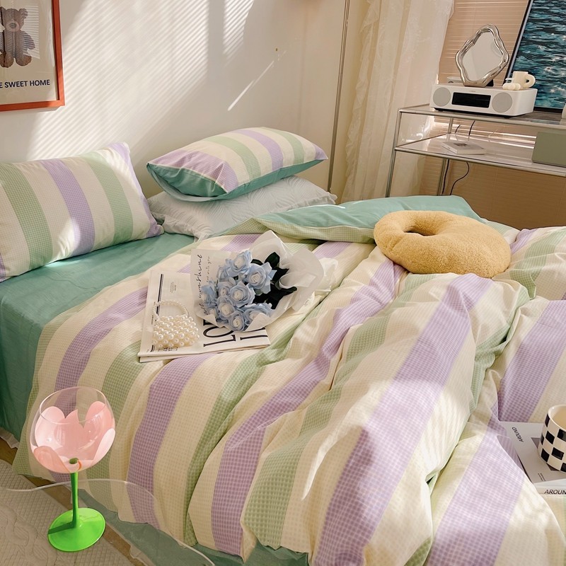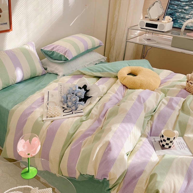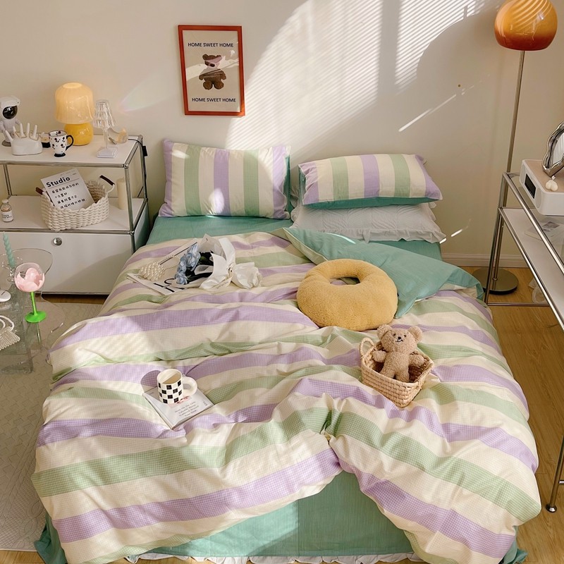 商品名称:顾里 2022新款13372全棉四件套-日系渐变条纹 香草芋泥