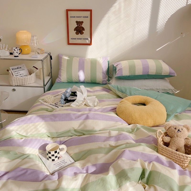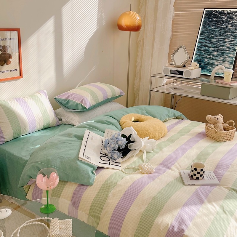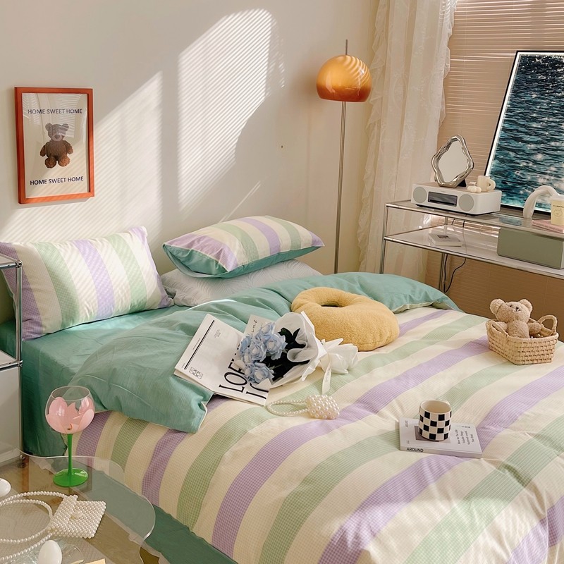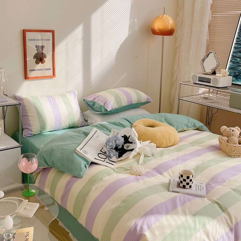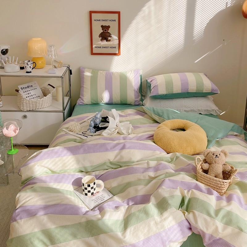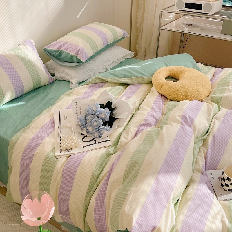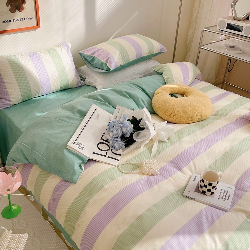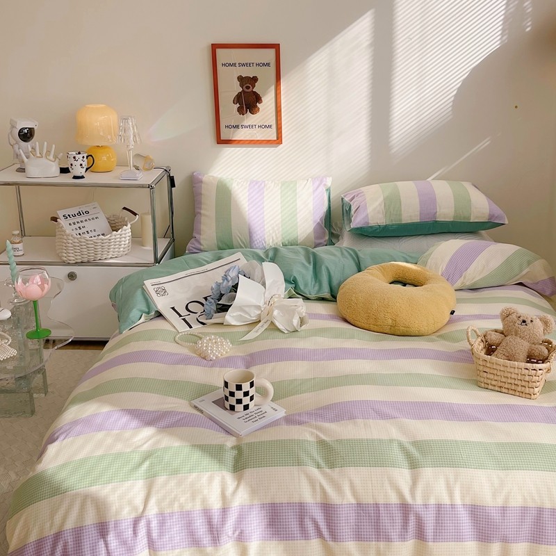 商品名称:顾里 2022新款13372全棉四件套-日系渐变条纹 香草芋泥