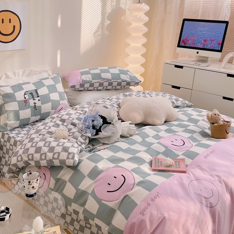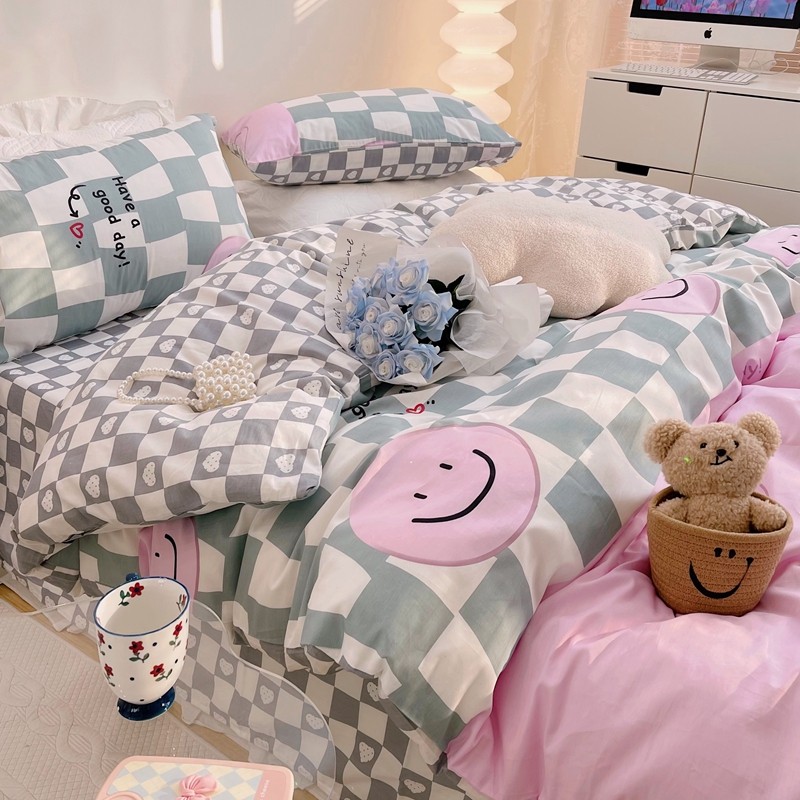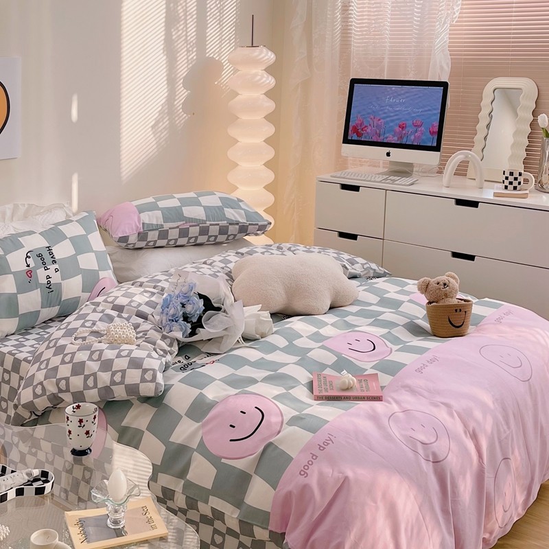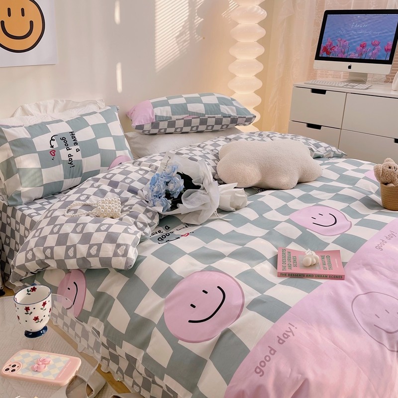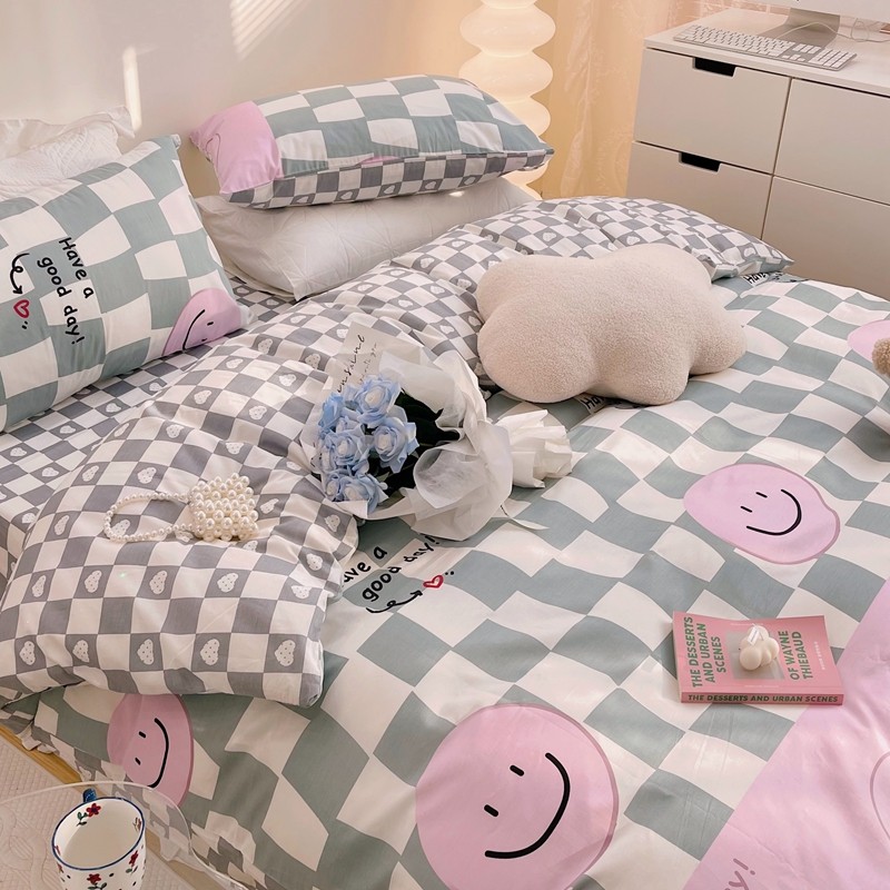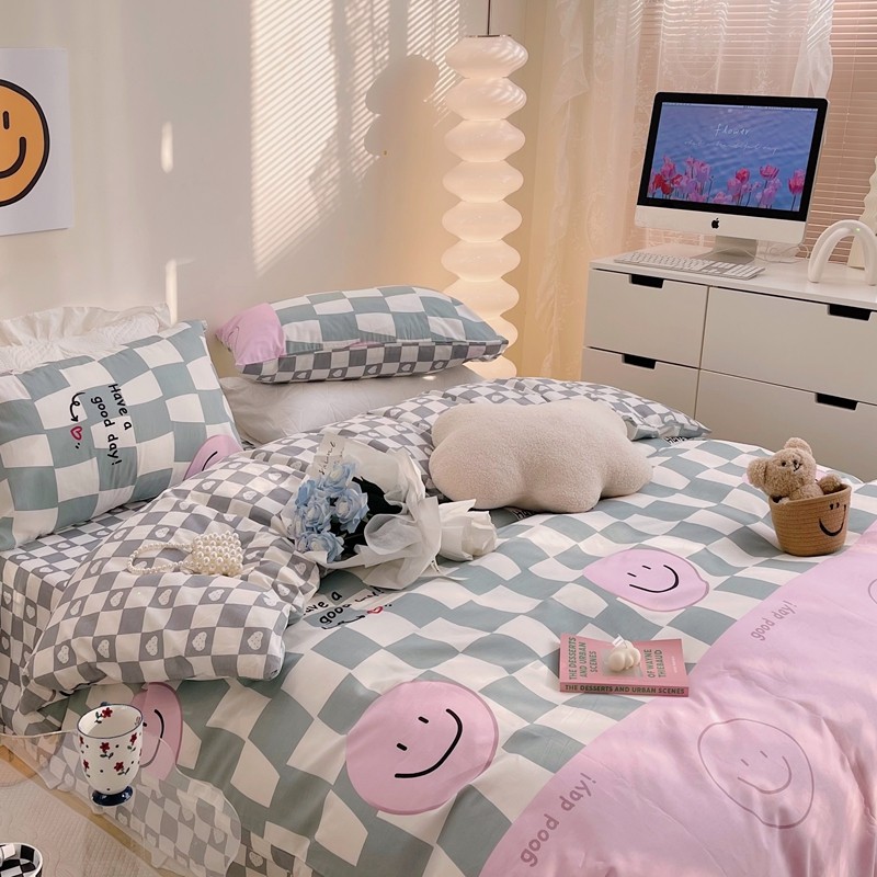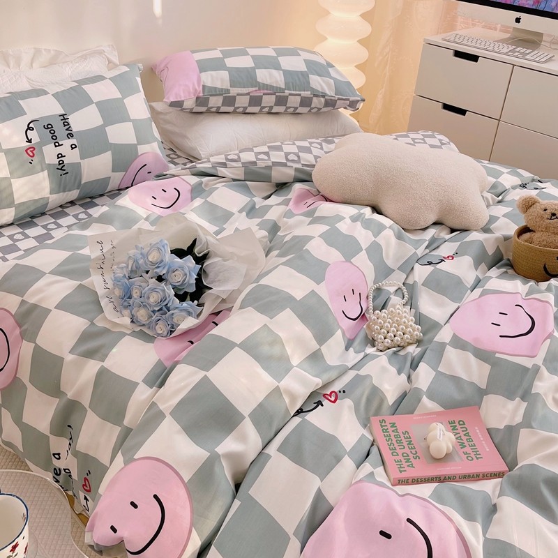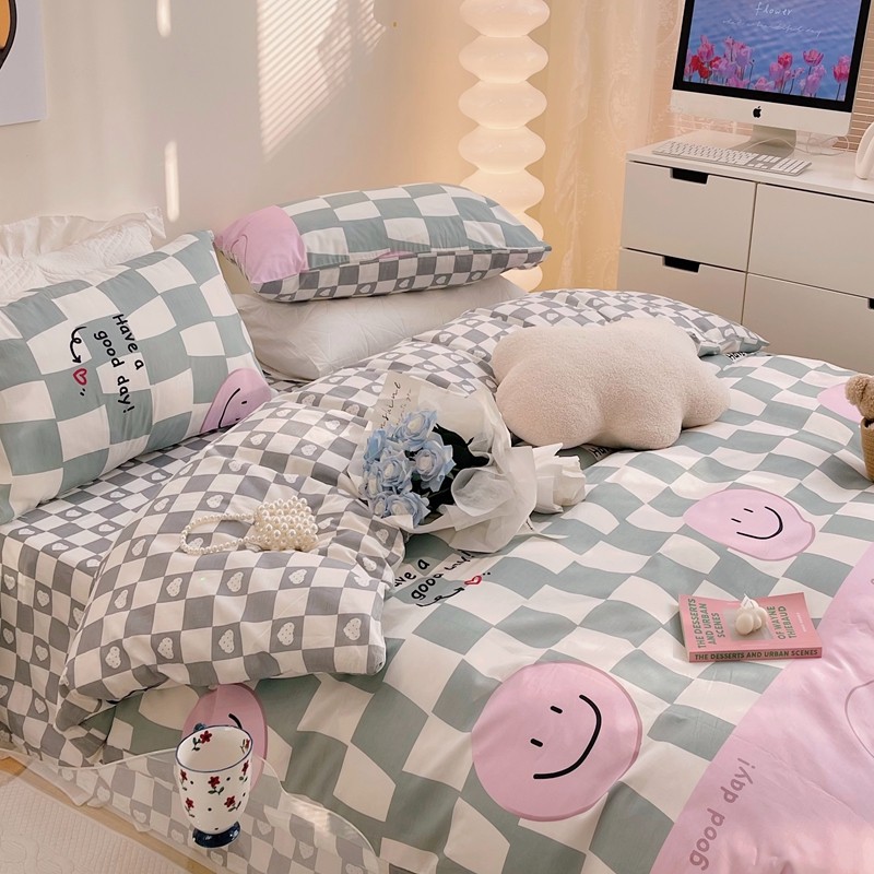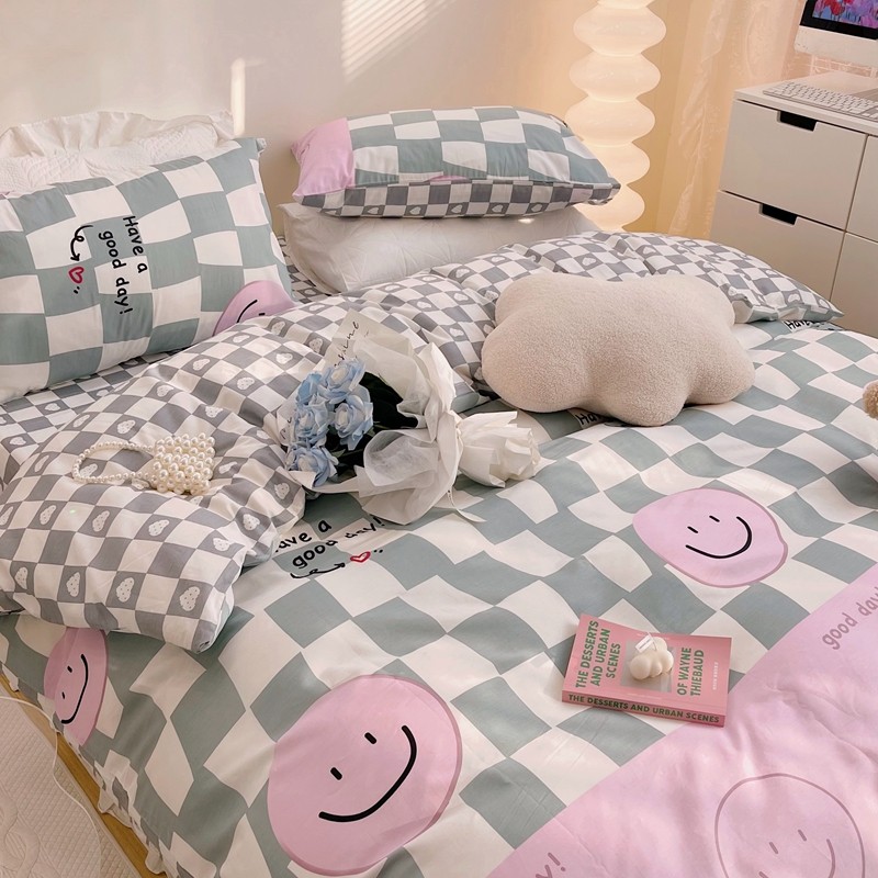 商品名称:顾里 2022新款13372全棉四件套-小清新 方块爱心灰