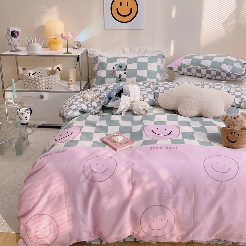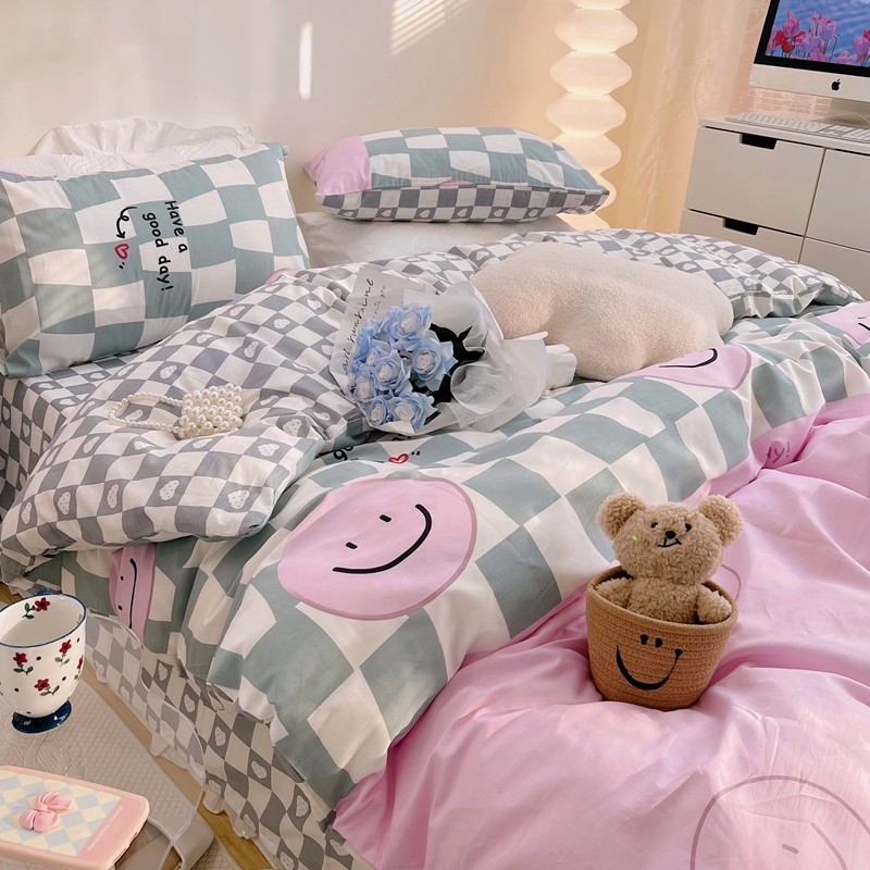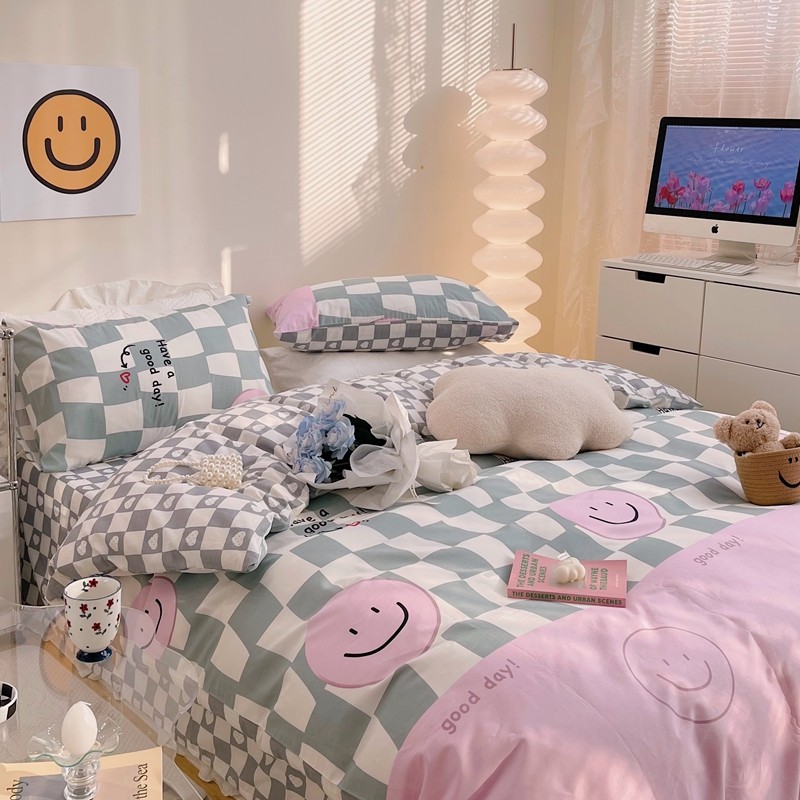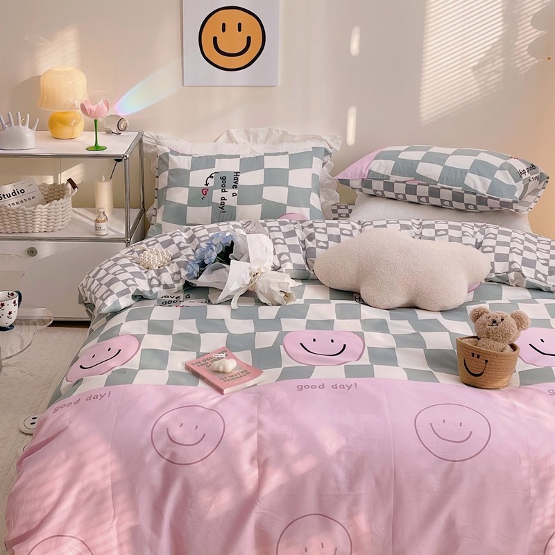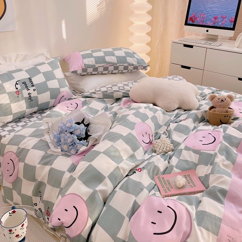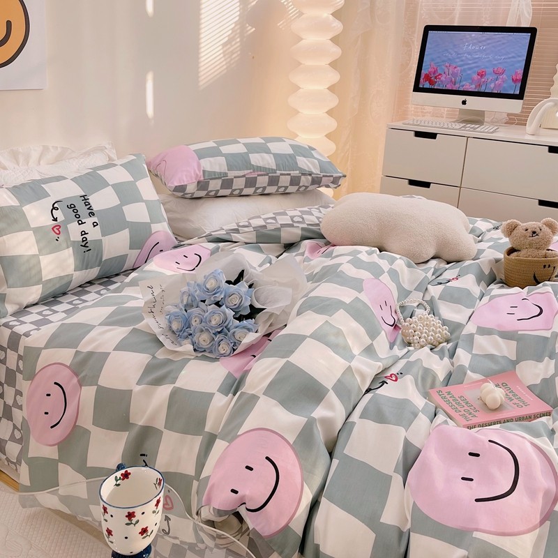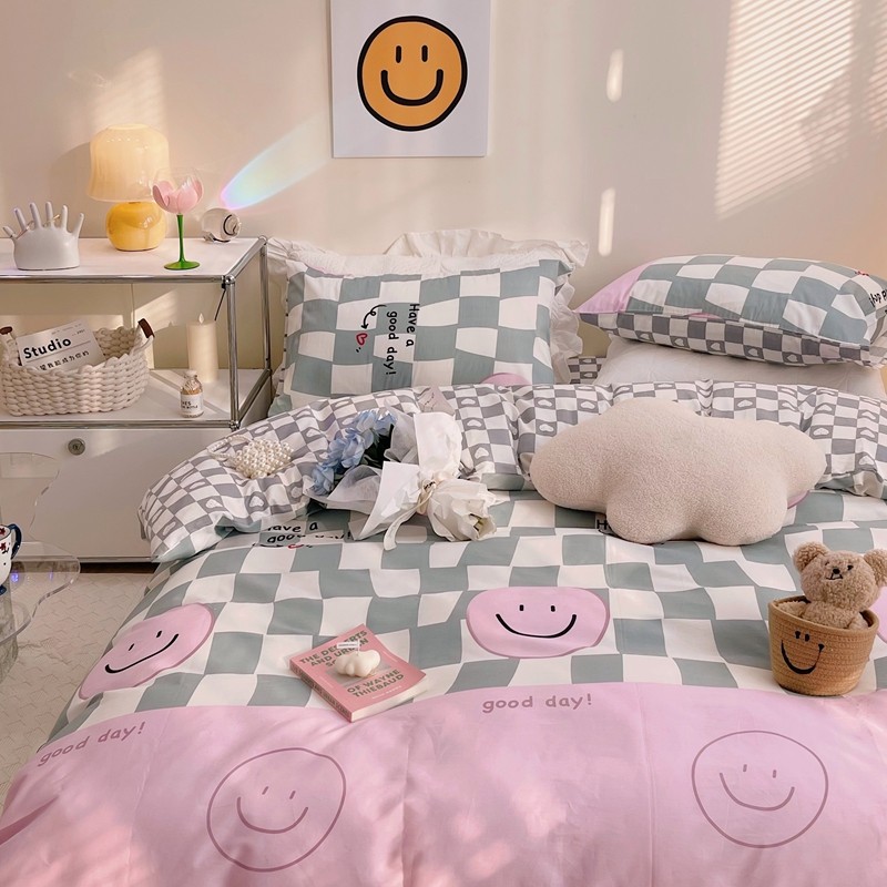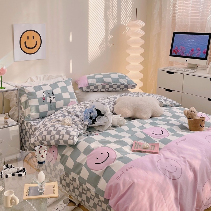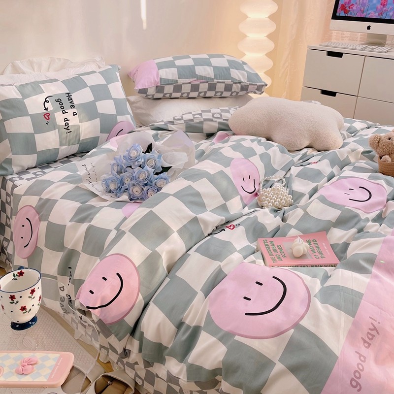 商品名称:顾里 2022新款13372全棉四件套-小清新 方块爱心灰