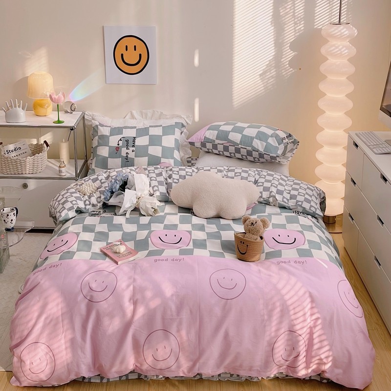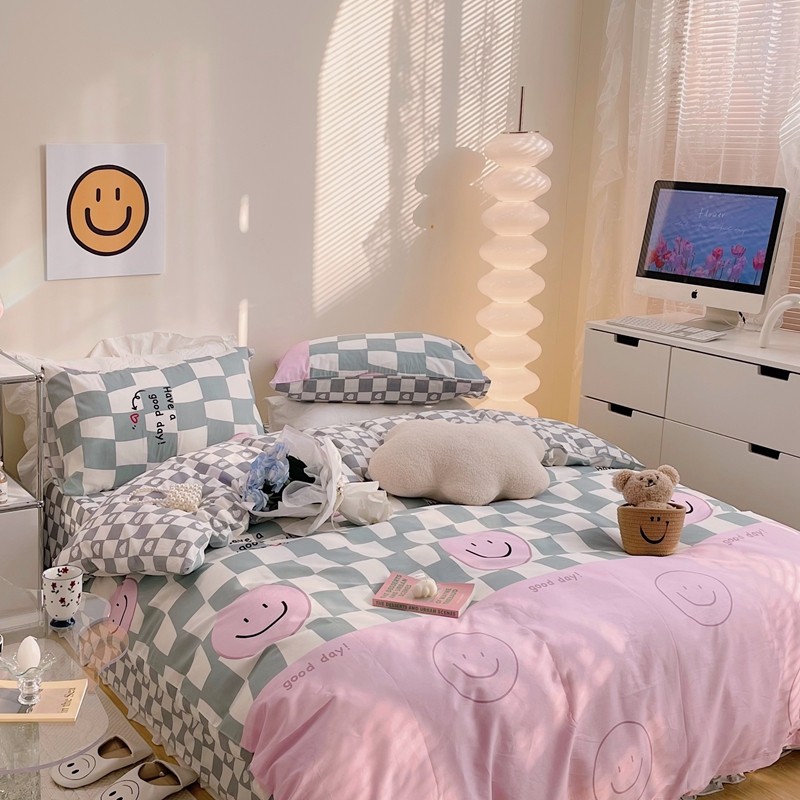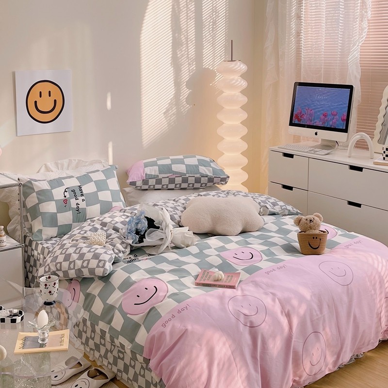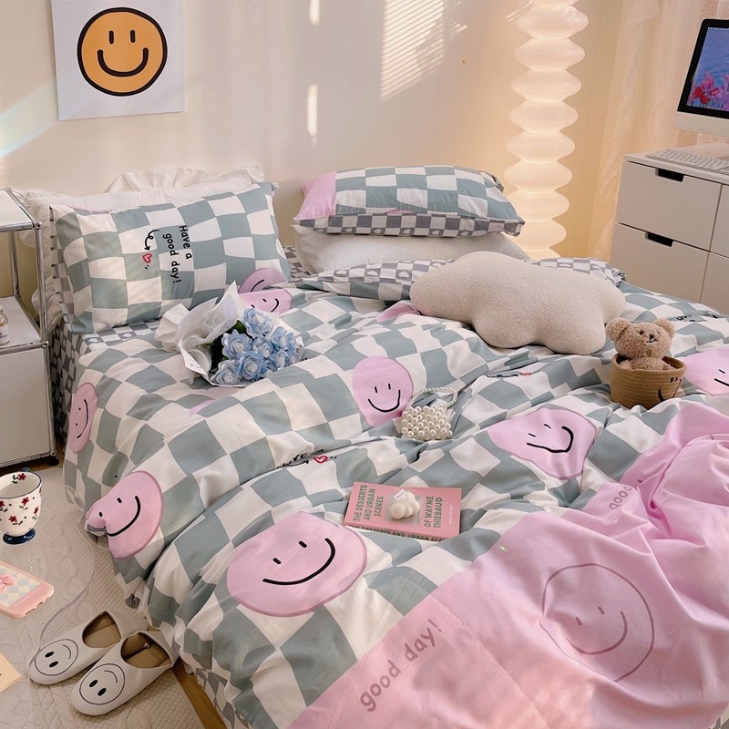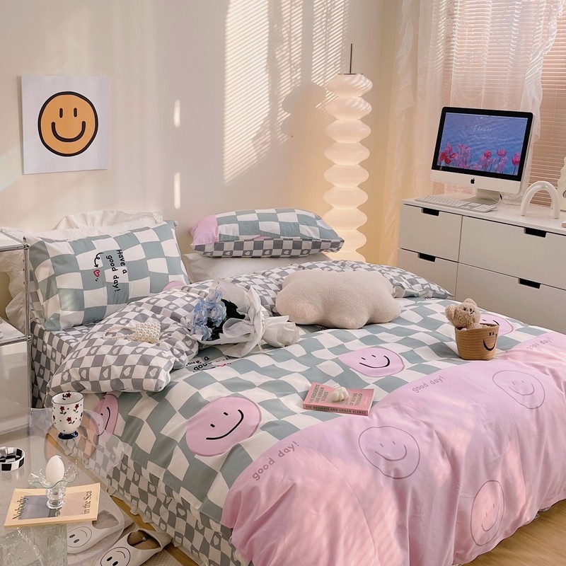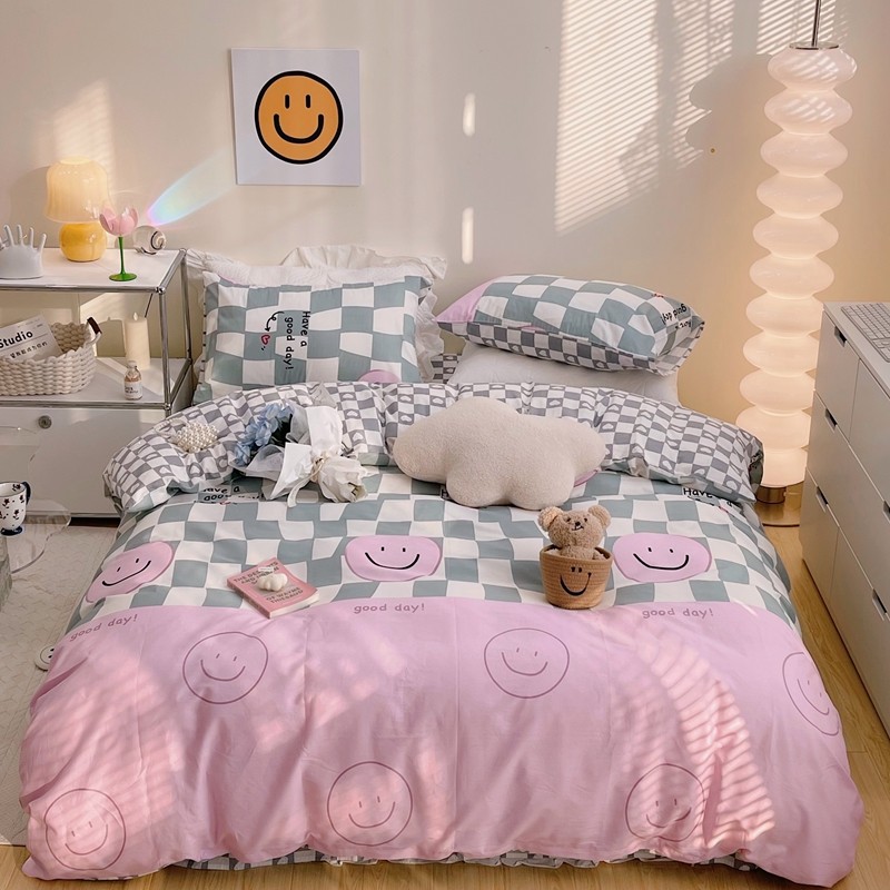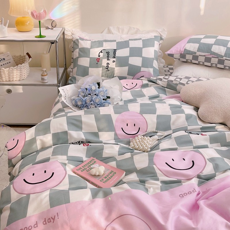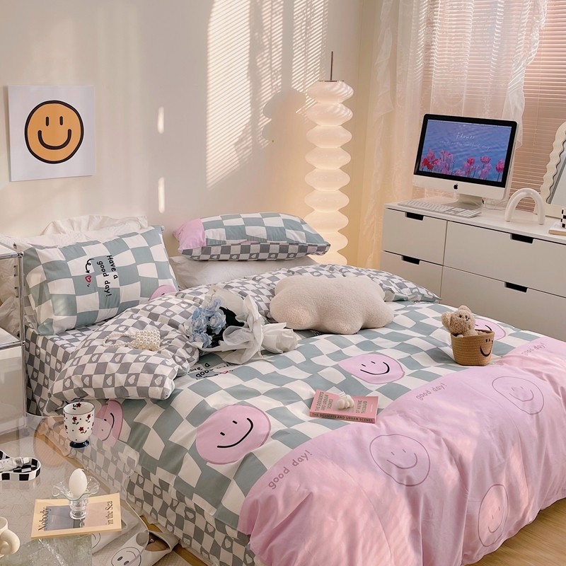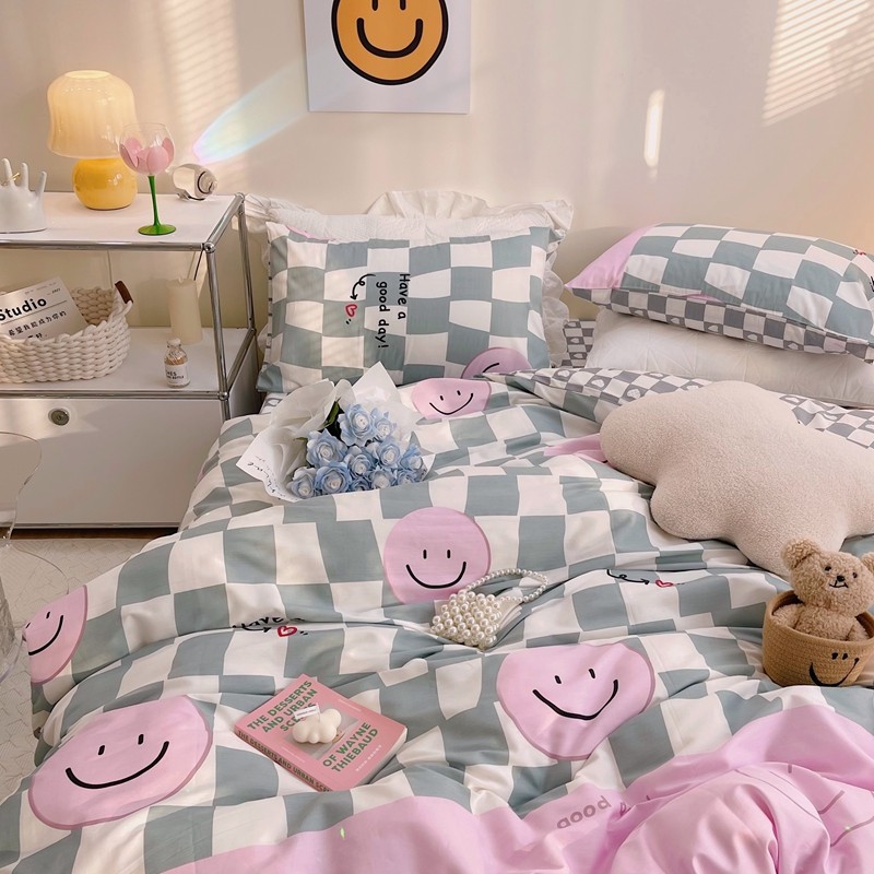 商品名称:顾里 2022新款13372全棉四件套-小清新 方块爱心灰