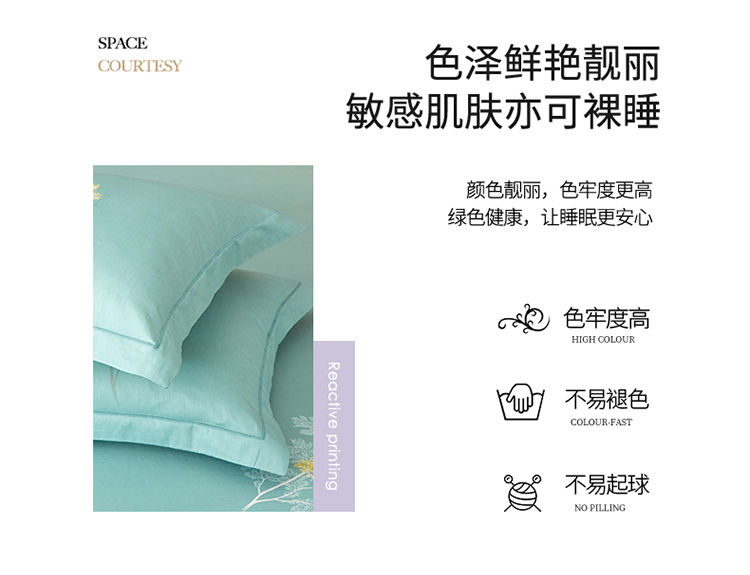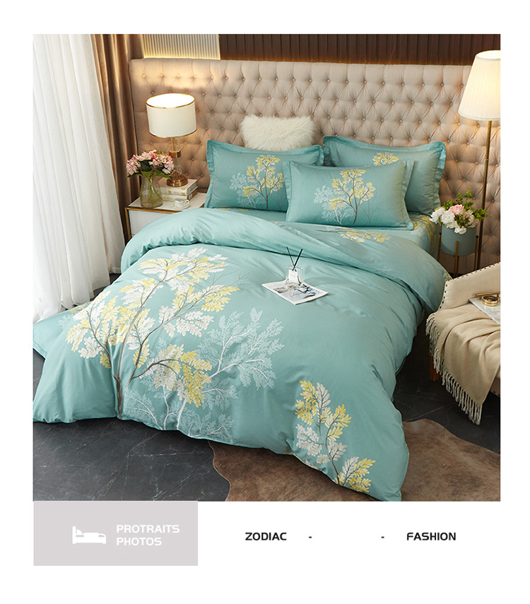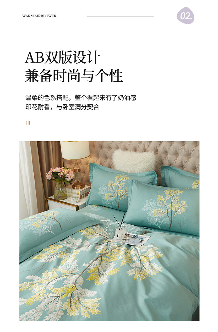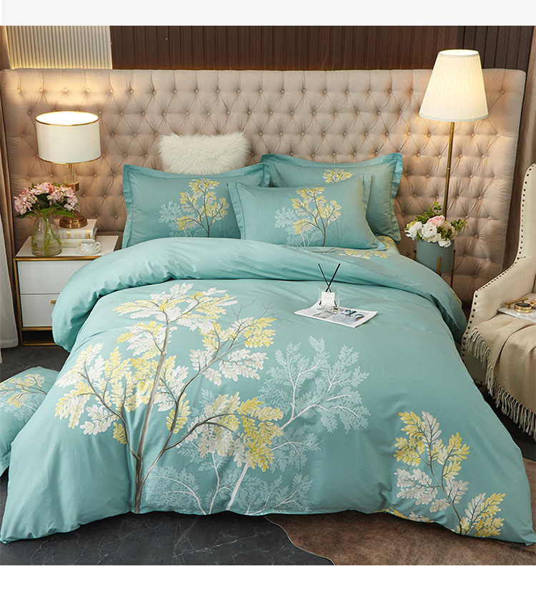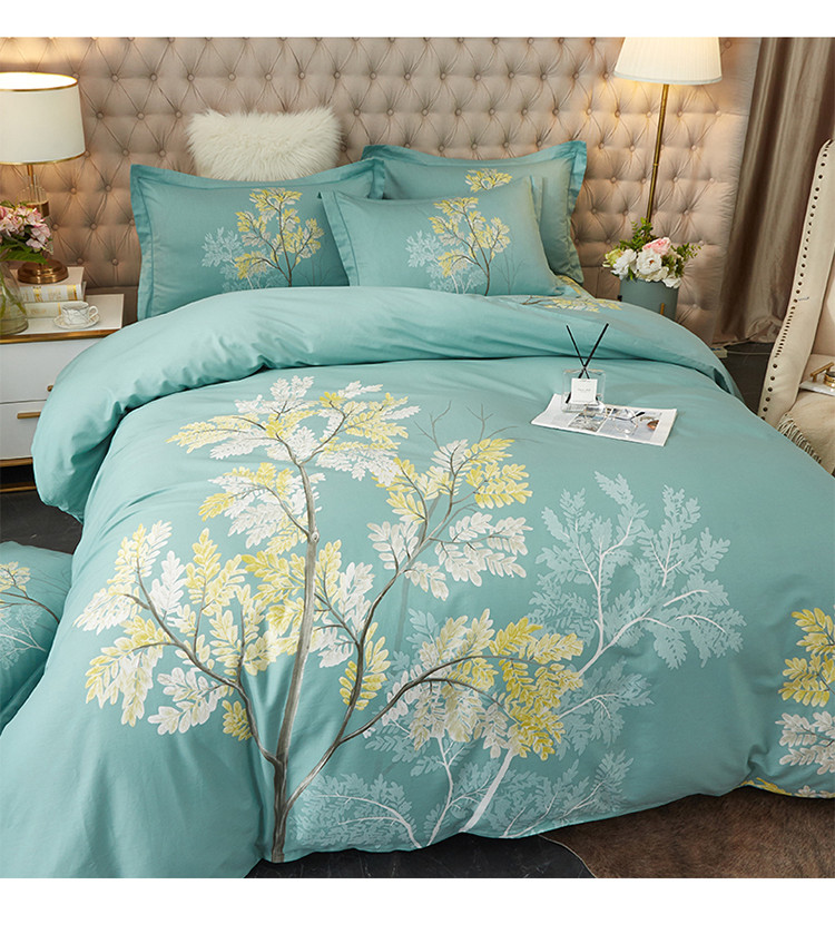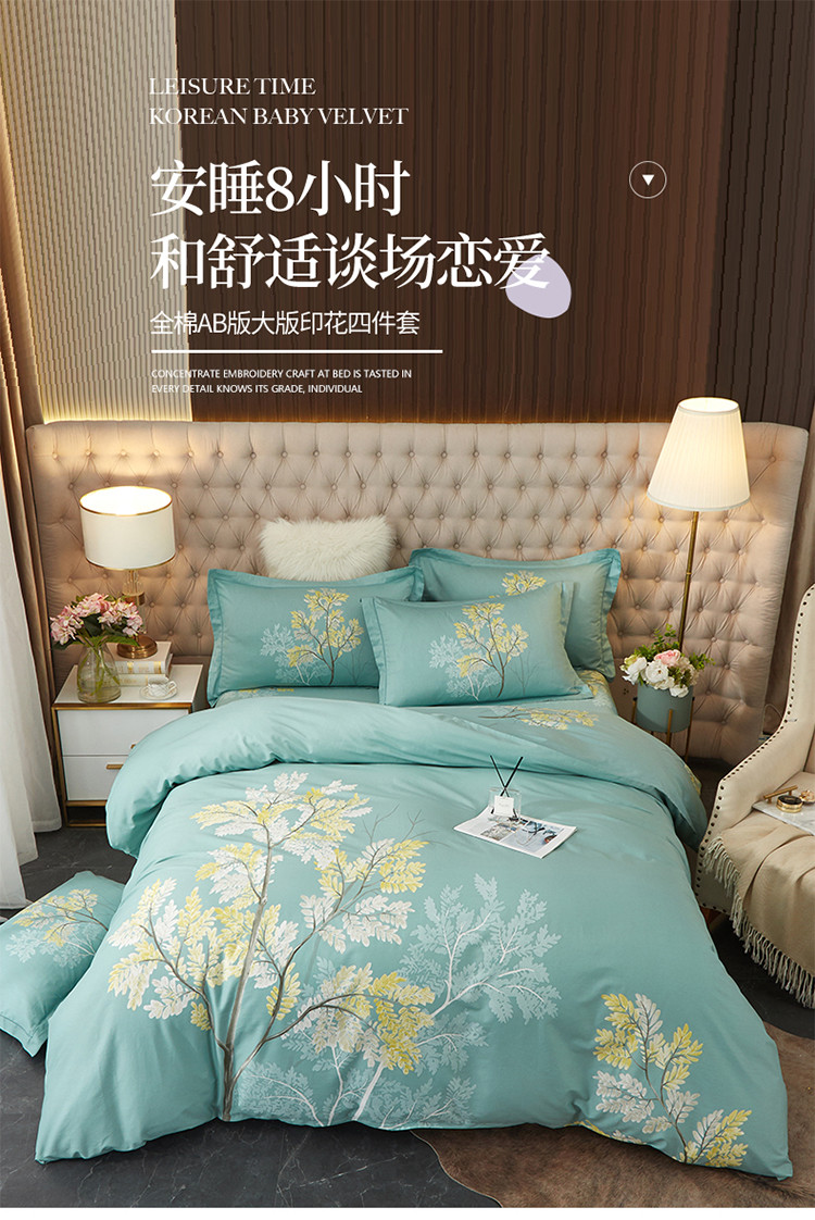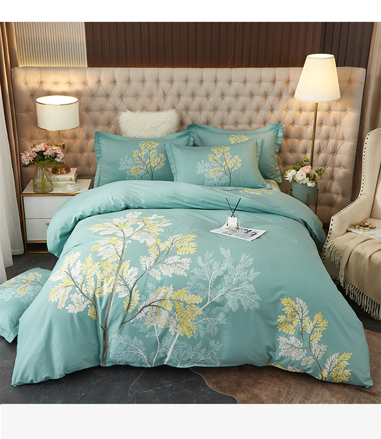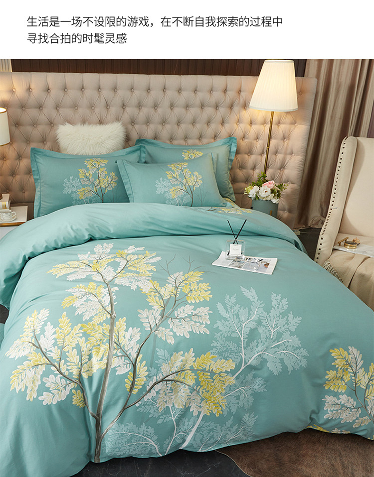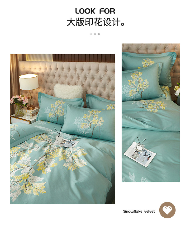 商品名称:金纱玉纺 2022新款全棉13372大版印花四件套 俪叶绿