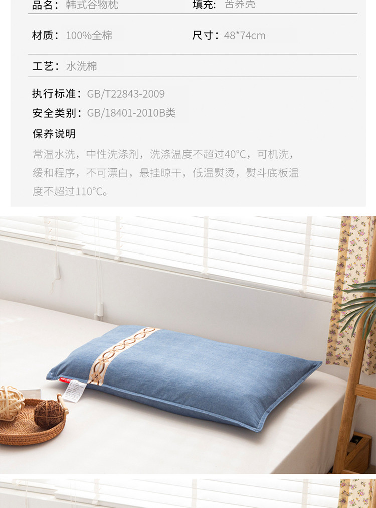 商品名称:(总)明星枕业 2022新款全棉水洗棉单边荞麦枕