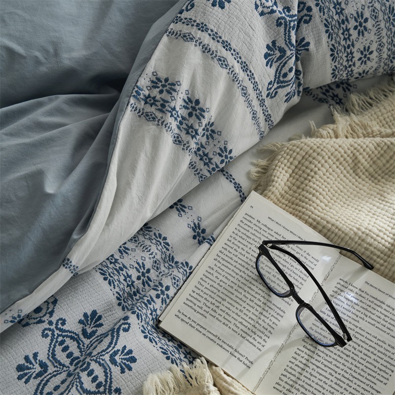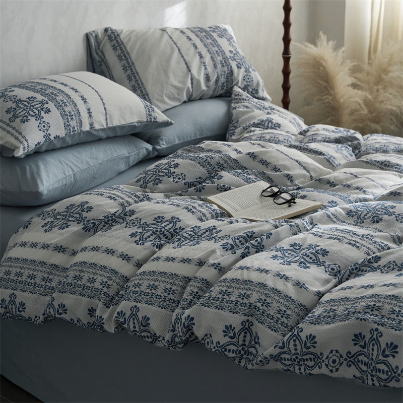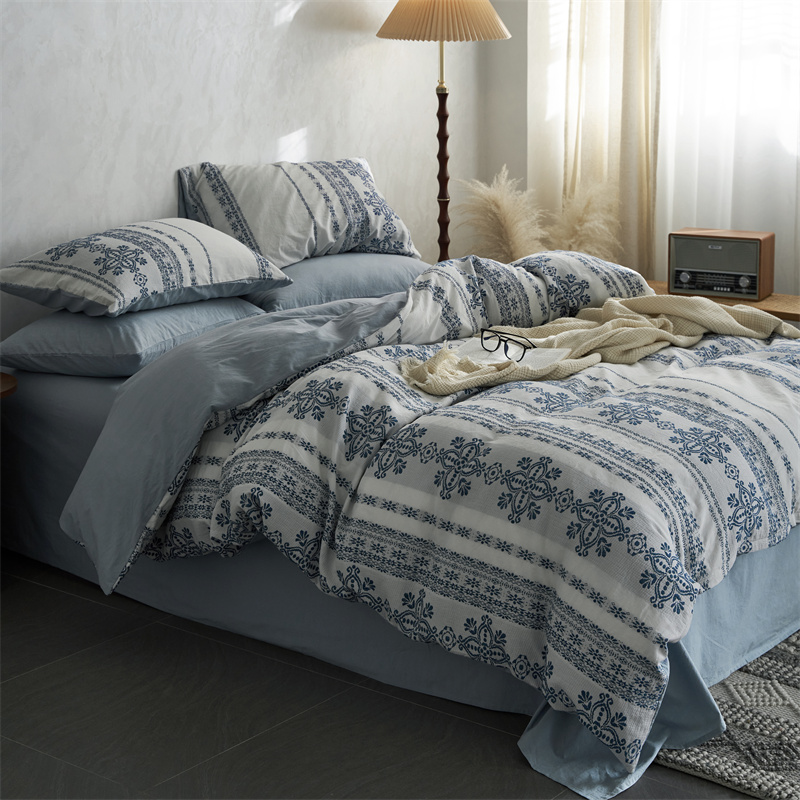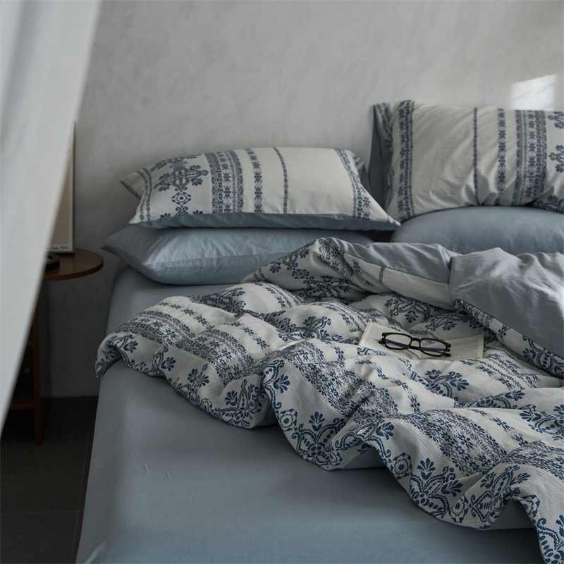 梦享生活 2022新款全棉色织水洗棉提花四件套 克什米尔蓝
