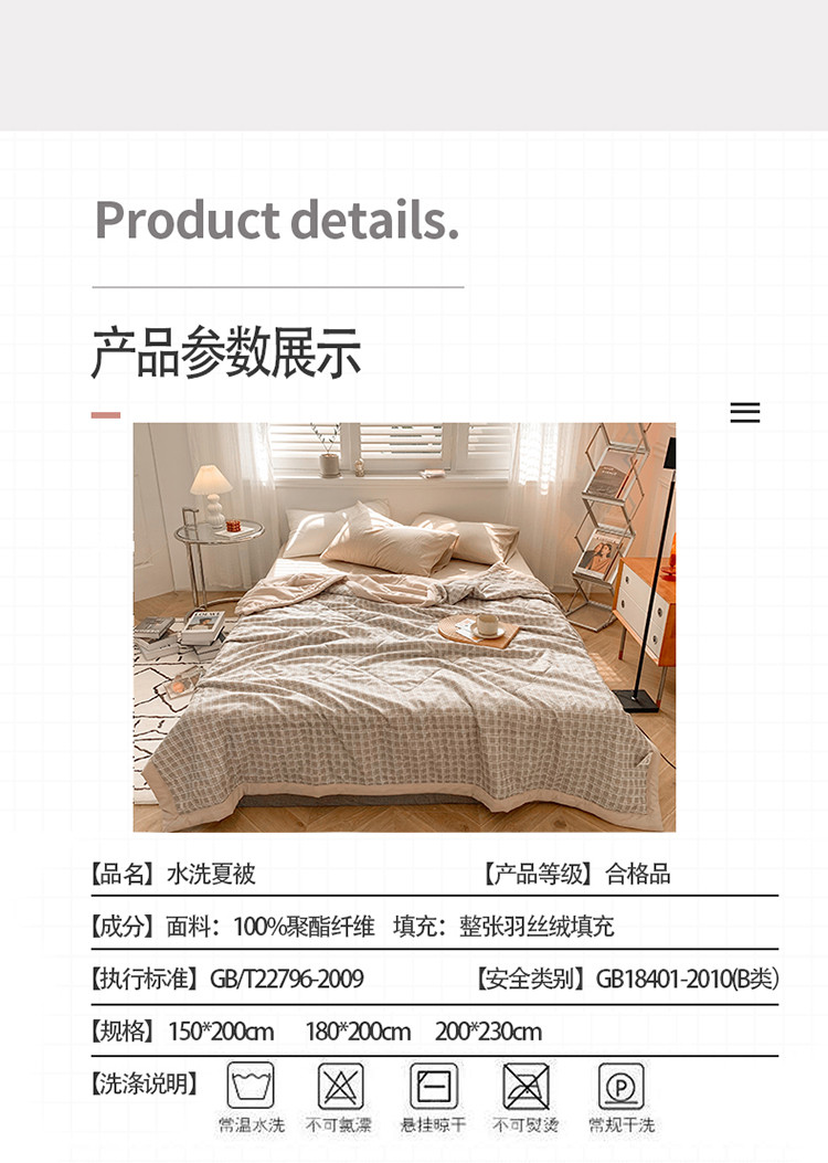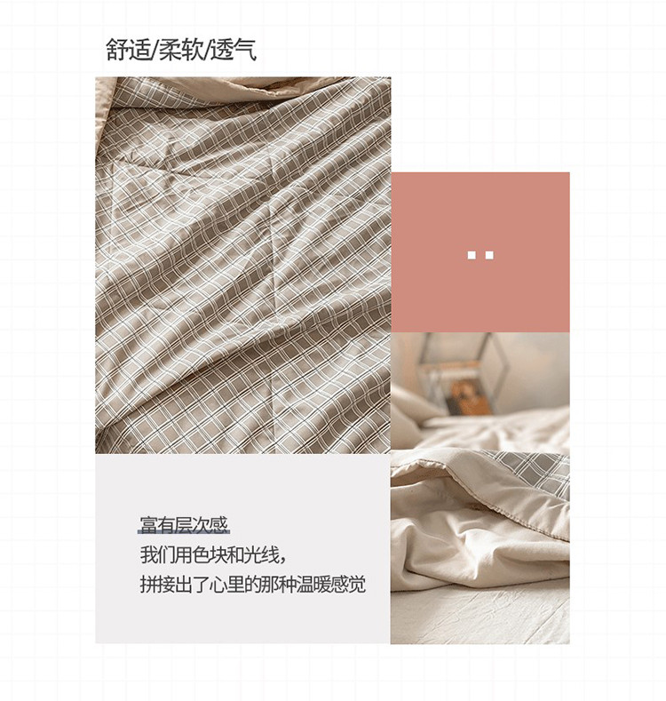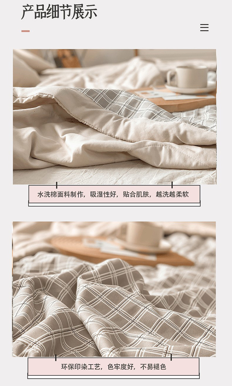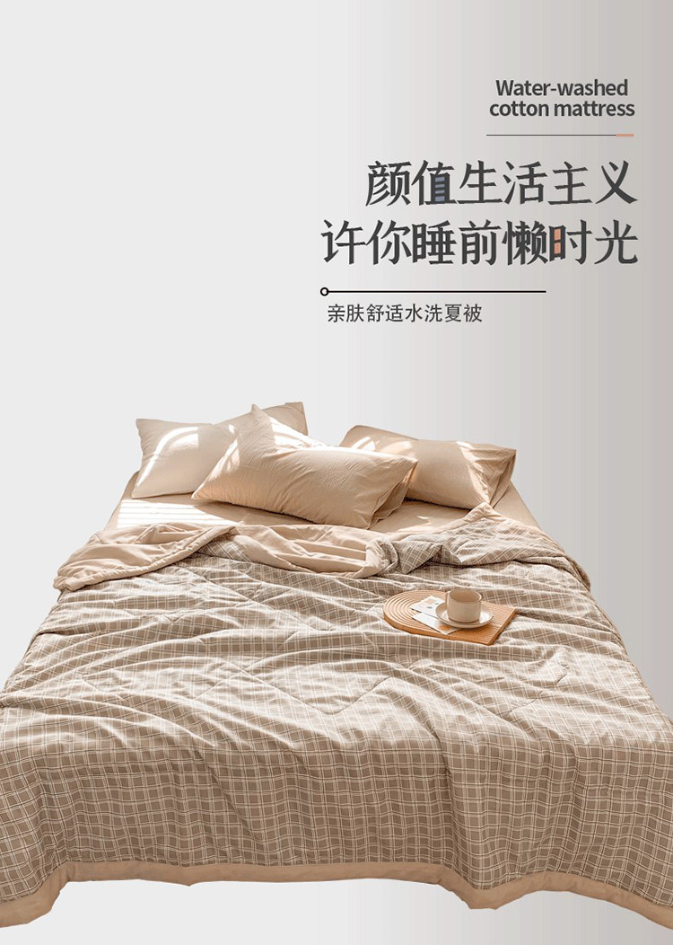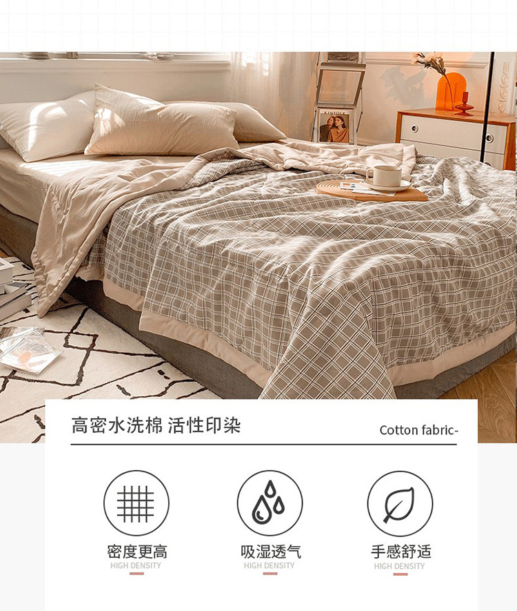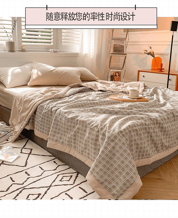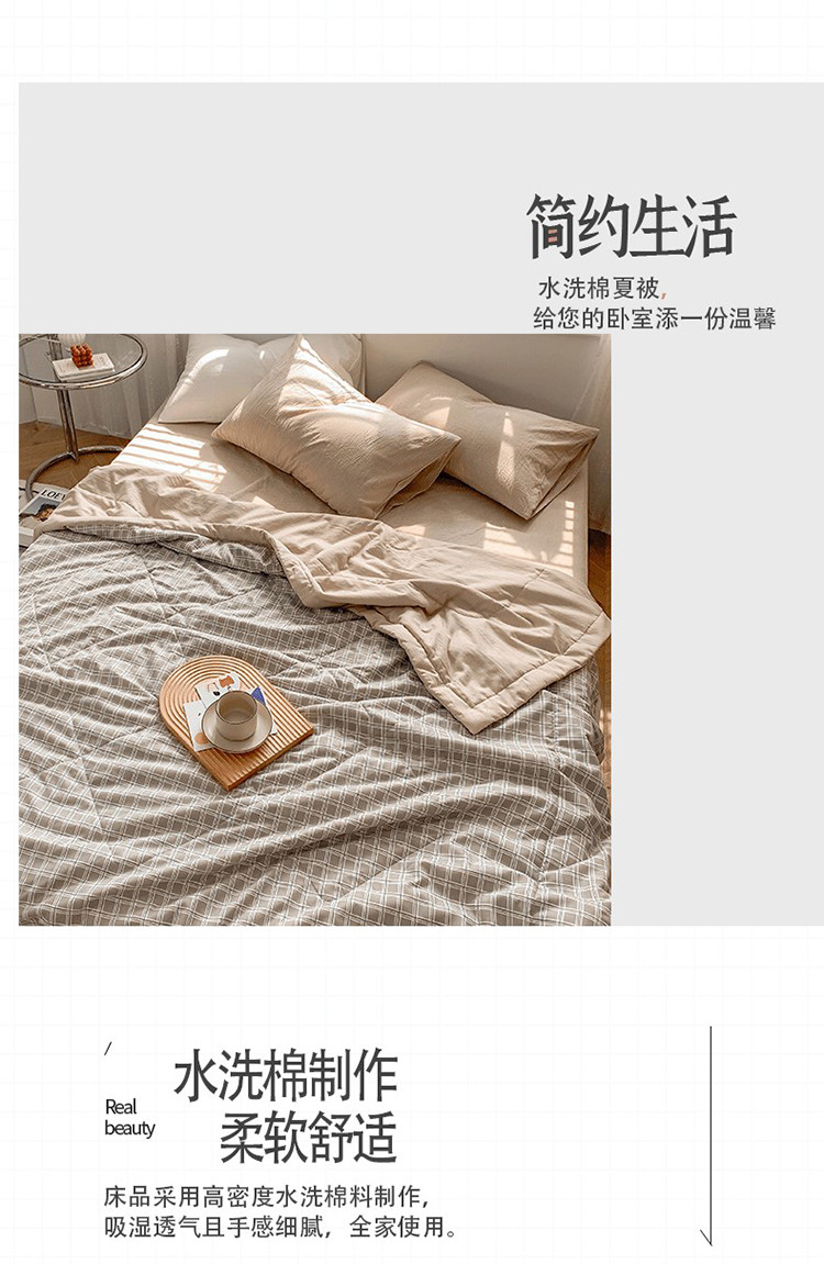 商品名称:慕尚家纺 2025新款日式简约无印风夏被夏凉被风格一 咖色大格