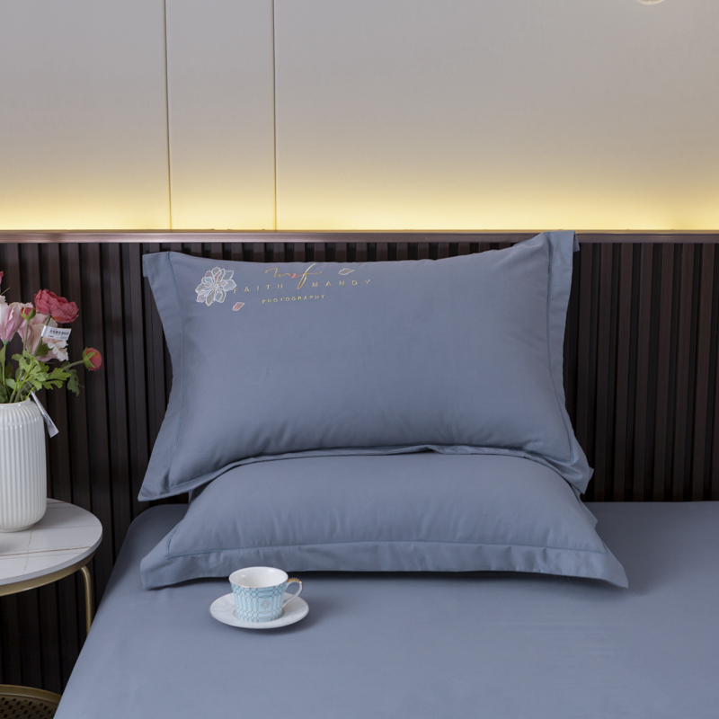 商品名称:优姿 2022新款100S长绒棉宽边绣花四件套似锦年华-蓝灰