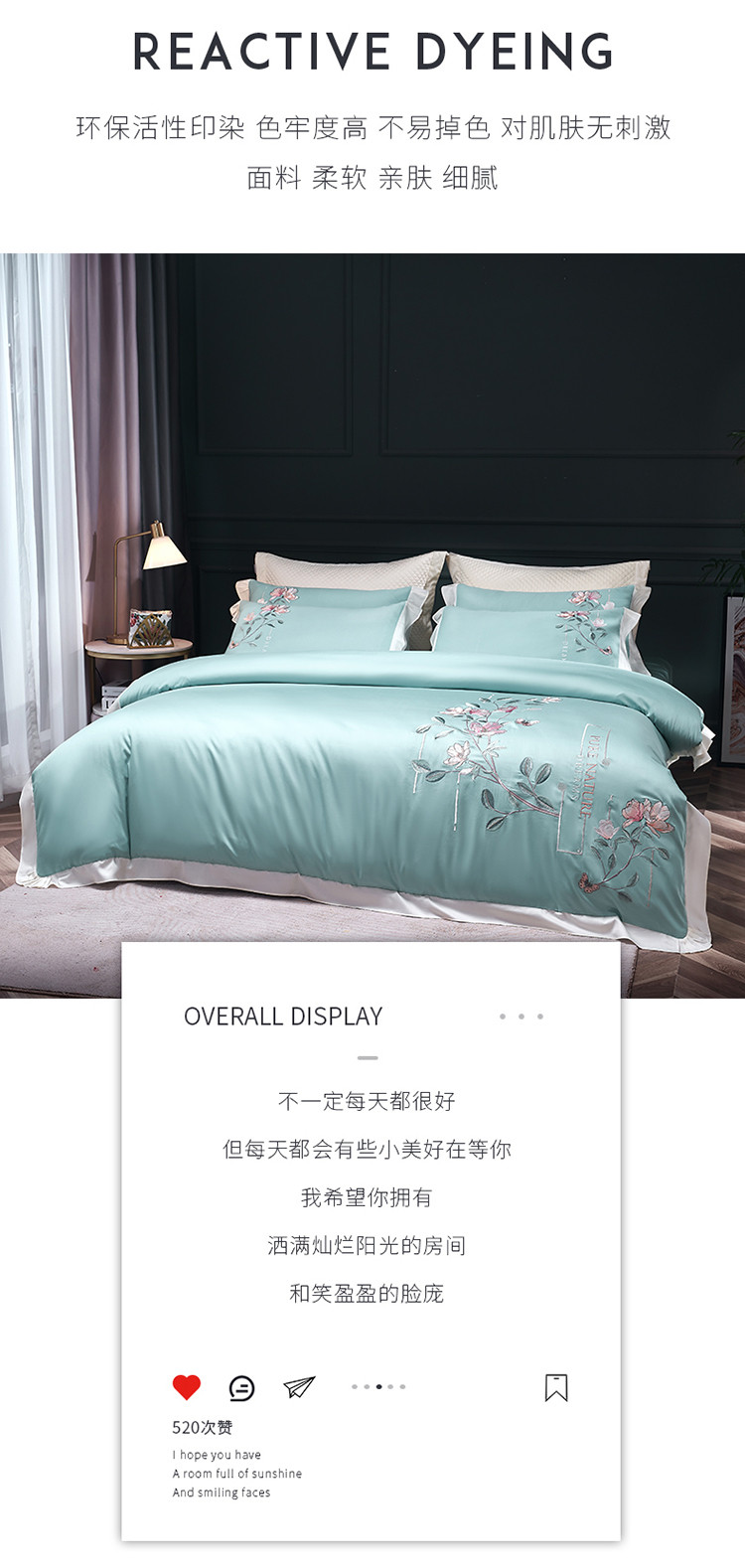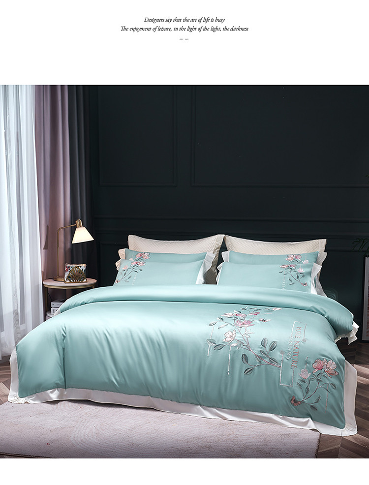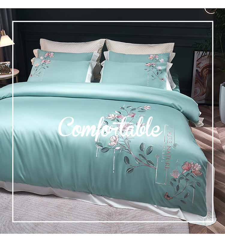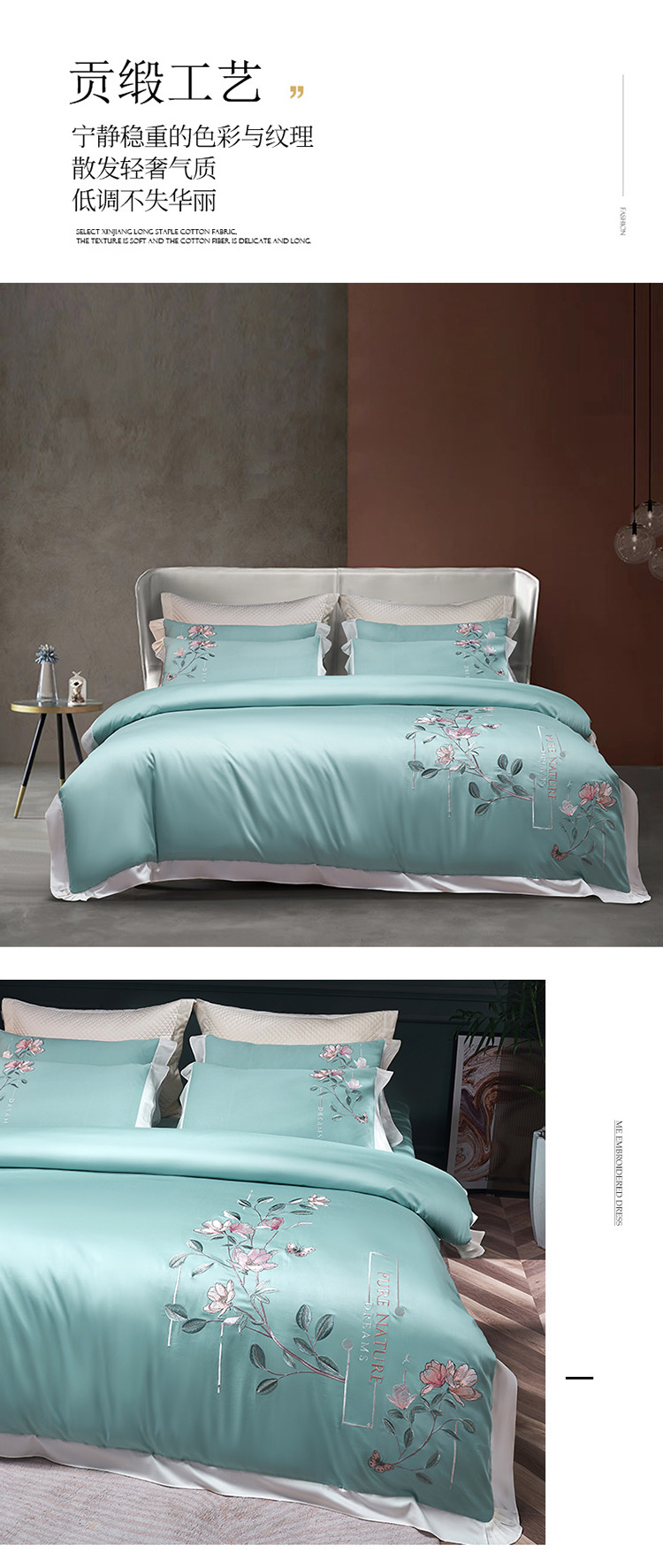 红番天 热卖款全棉提花长绒棉四件套紫色迷情 轻奢绿