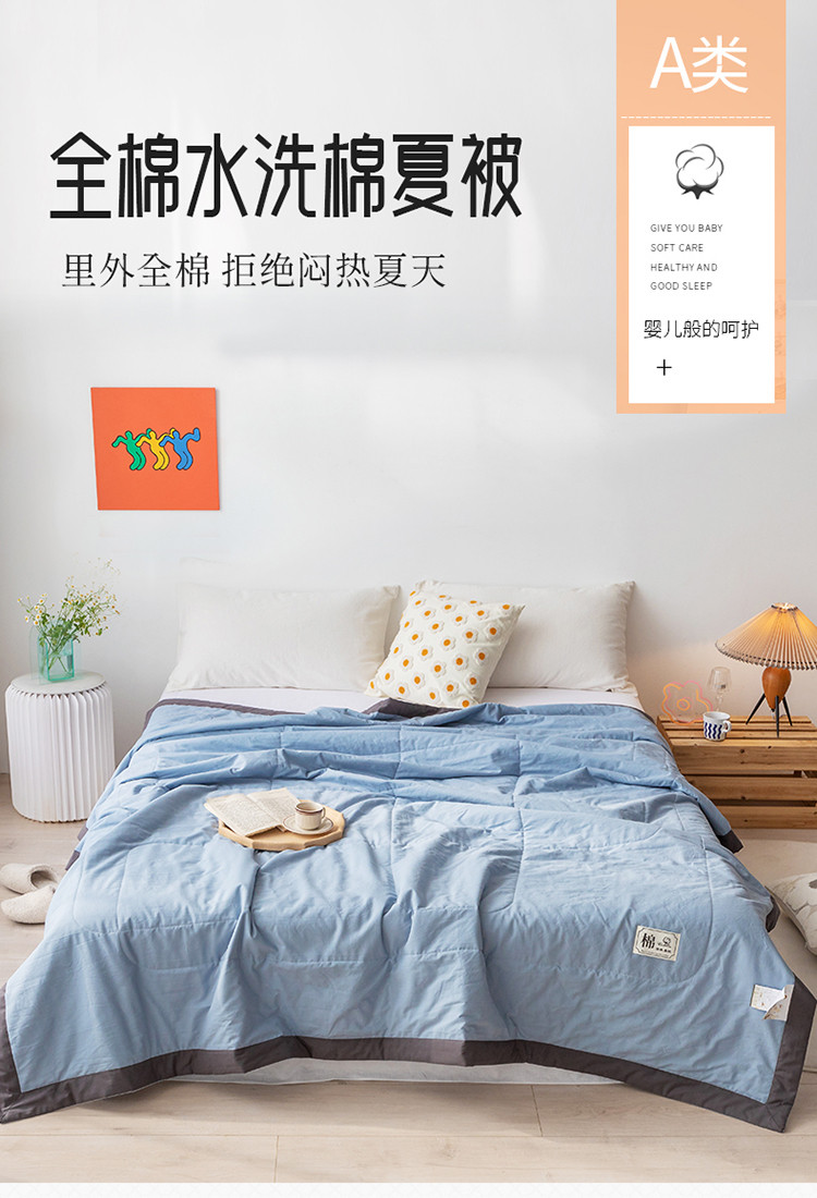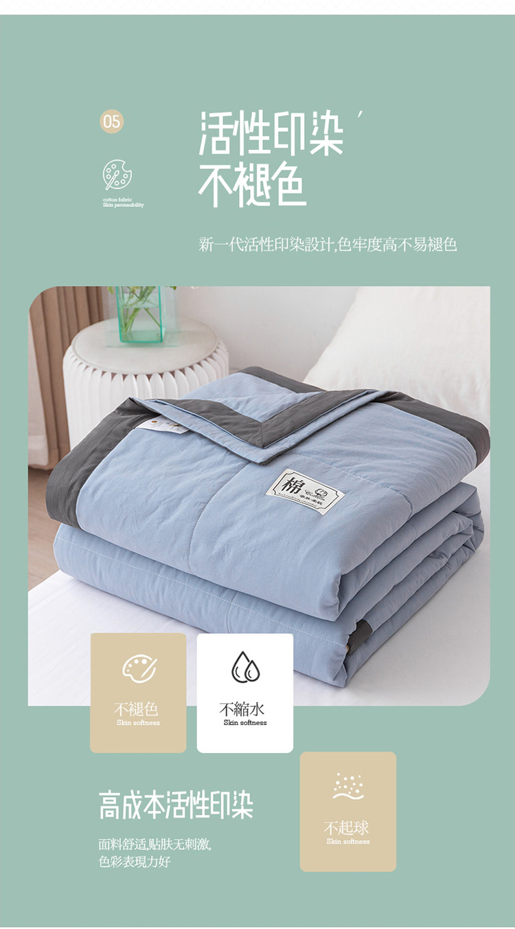 商品名称:鸣升全棉水洗棉纯色棉花夏被被子被芯空调被夏凉被静谧蓝