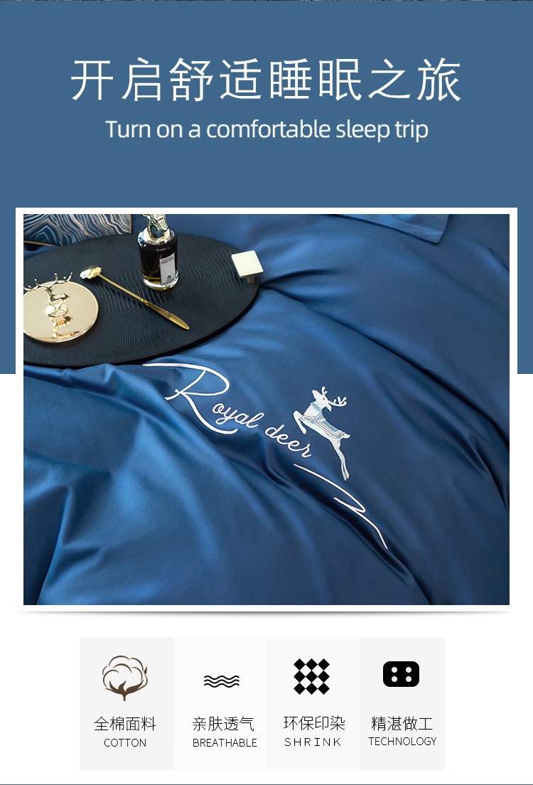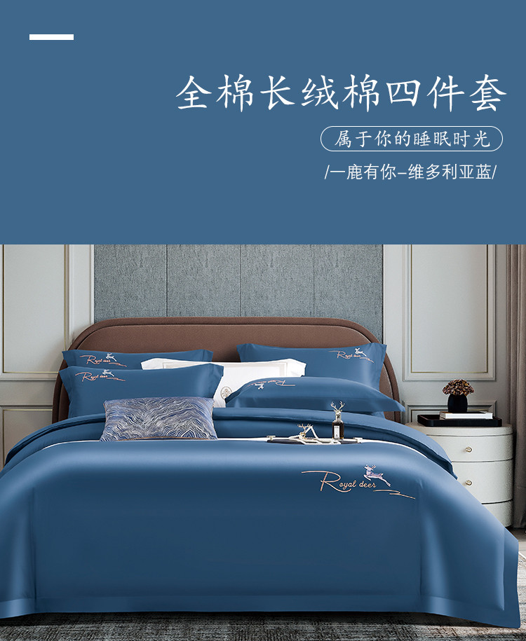 当前位置: 91家纺网 > 商品网购 > 床品套件 > 四件套 > 全棉普通四件套 > 芊寻家居 2024新款全棉长绒棉四件套 一鹿有你-维多利亚蓝