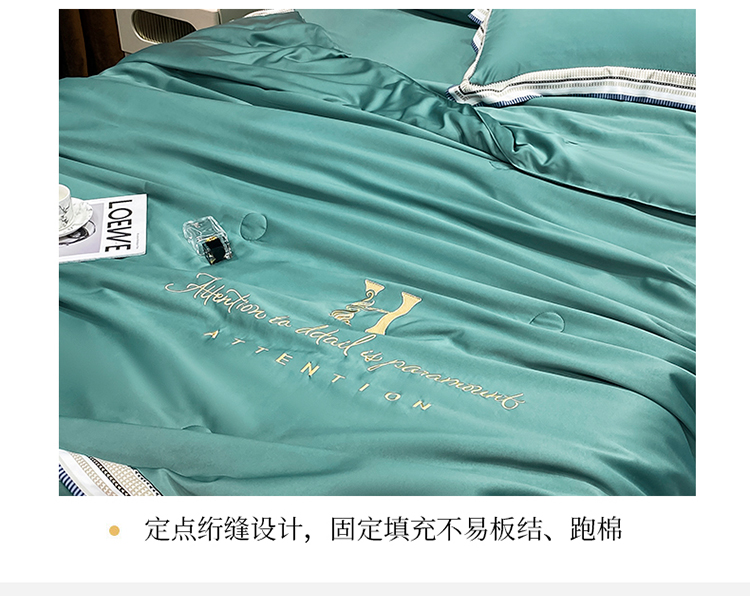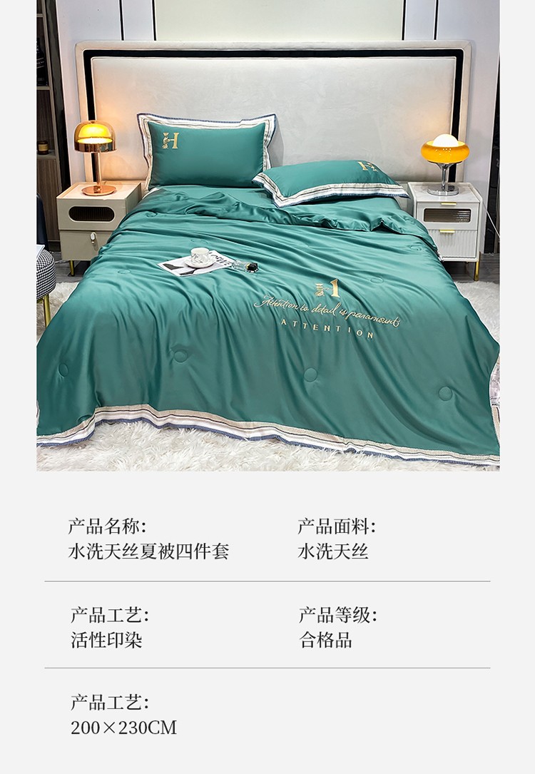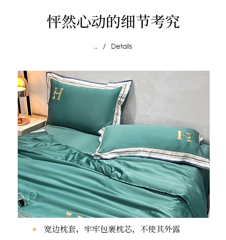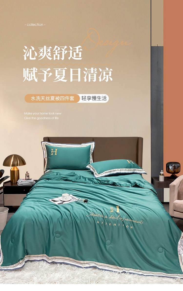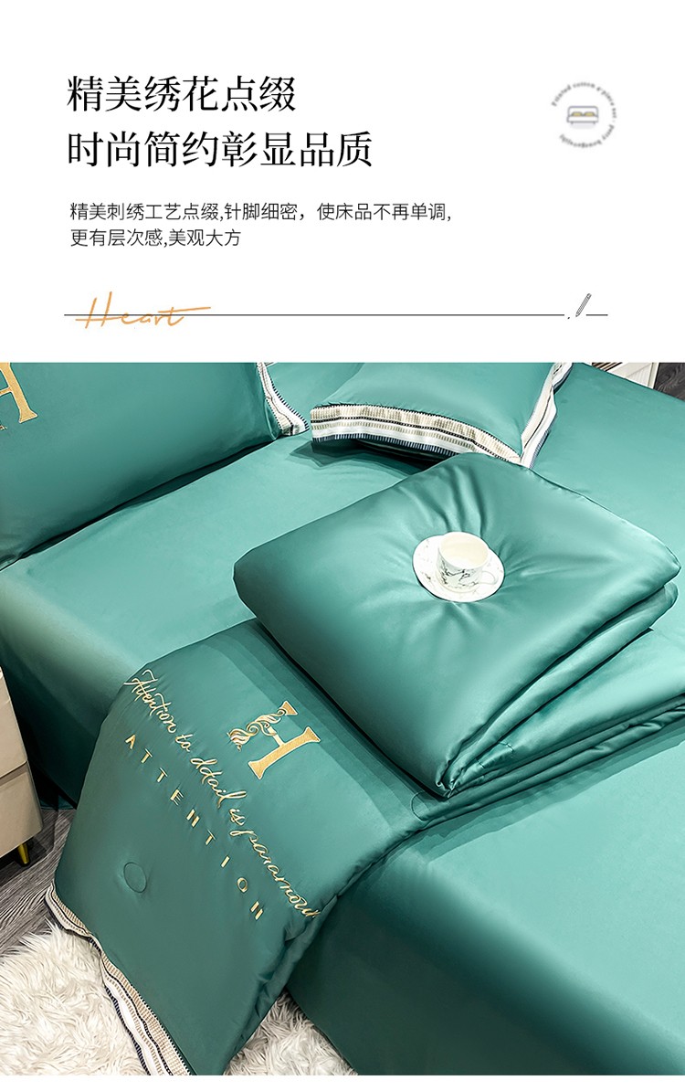 丽卡家纺 2023新款水洗天丝刺绣夏被四件套 华尔兹-黛绿
