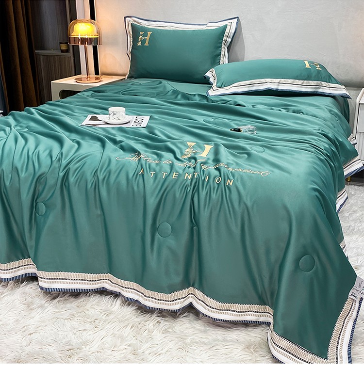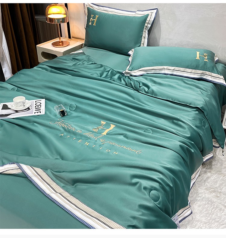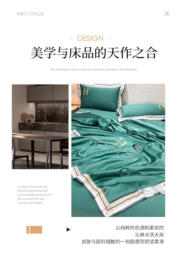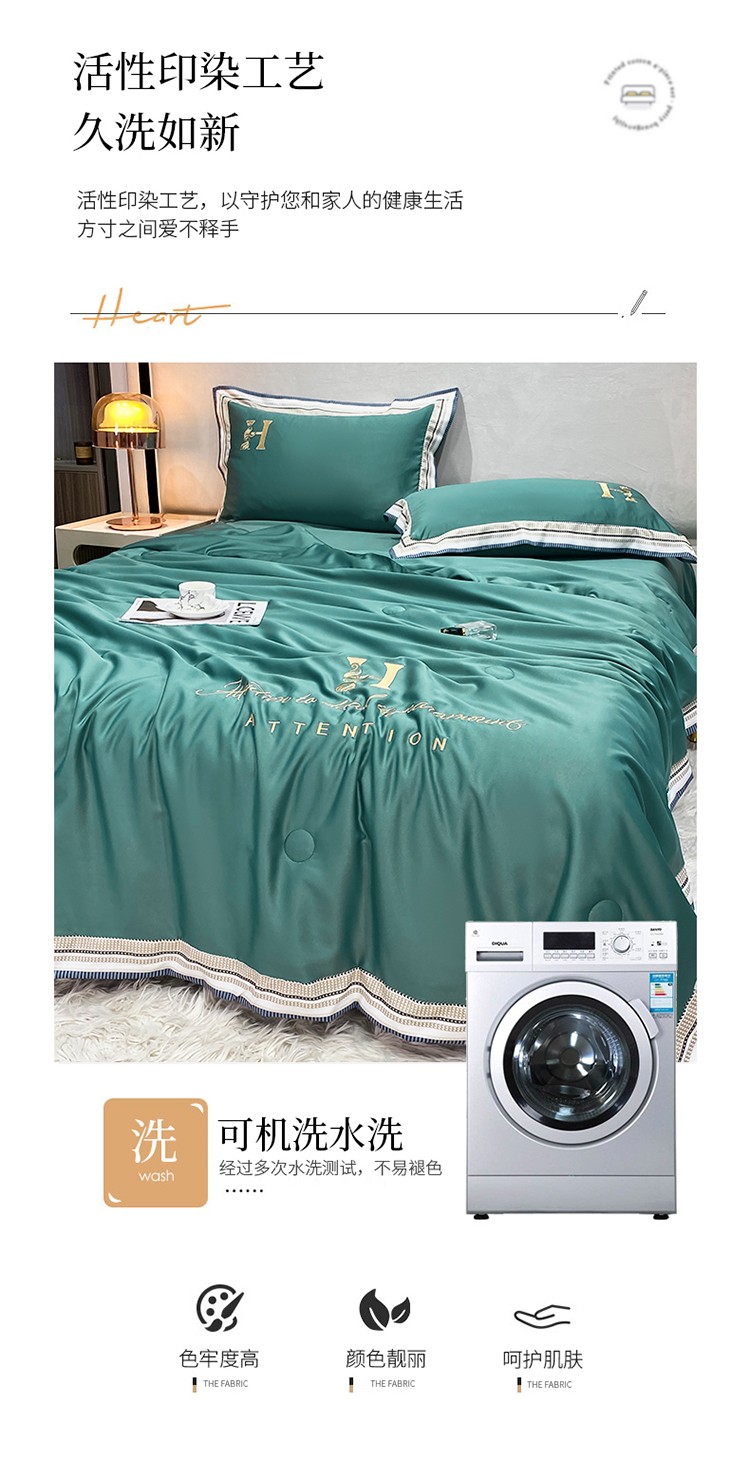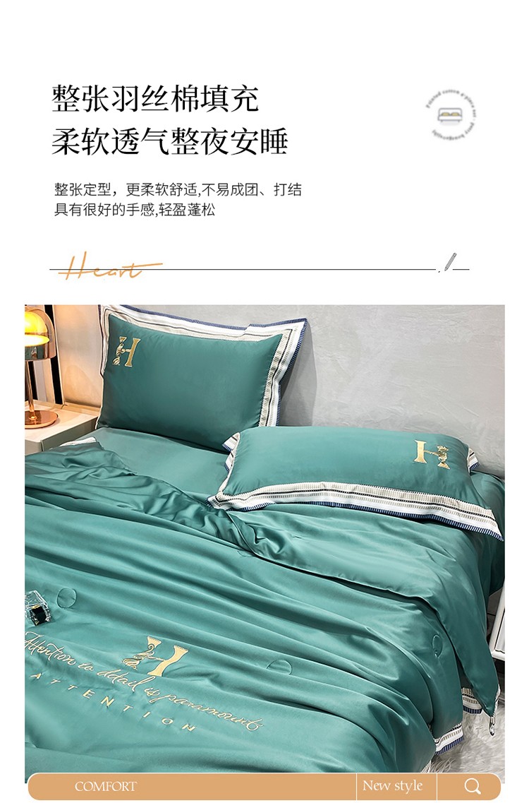 丽卡家纺 2023新款水洗天丝刺绣夏被四件套 华尔兹-黛绿