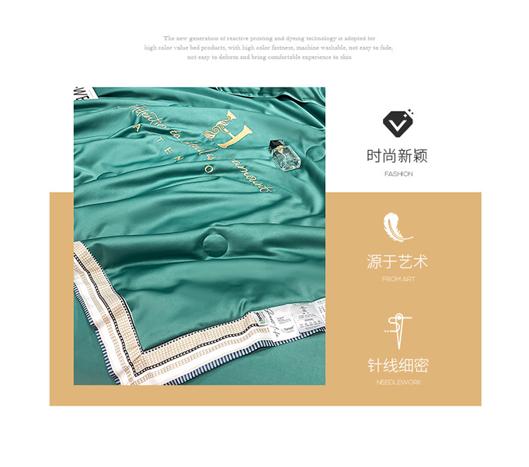 商品名称:丽卡家纺 2023新款水洗天丝刺绣夏被四件套 华尔兹-黛绿