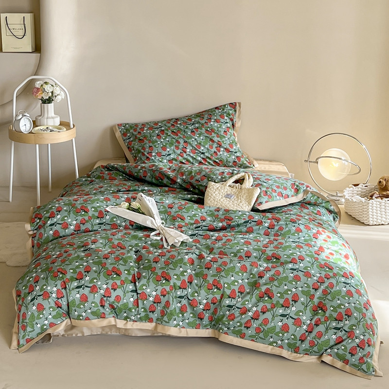 汇庭 2022新款长绒棉印花学生春秋被 芝士草莓