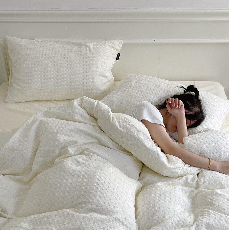 当前位置: 91家纺网 > 商品网购 > 床品套件 > 四件套 > 全棉普通四件套 > 梦享生活家居 2022新款华夫格四件套 奶昔