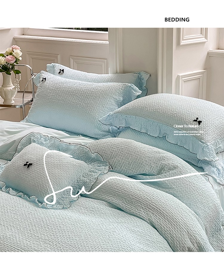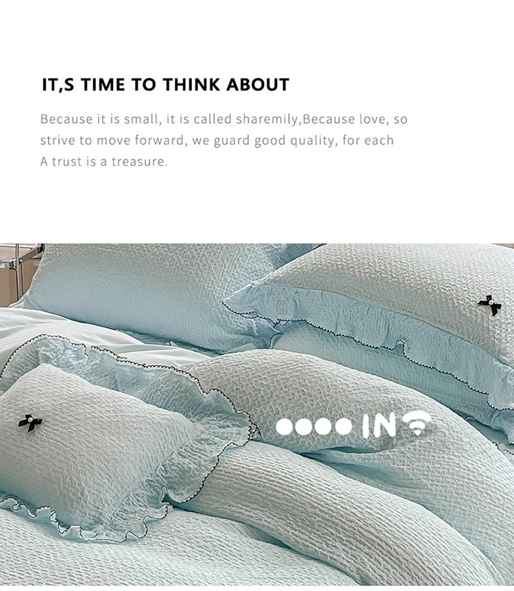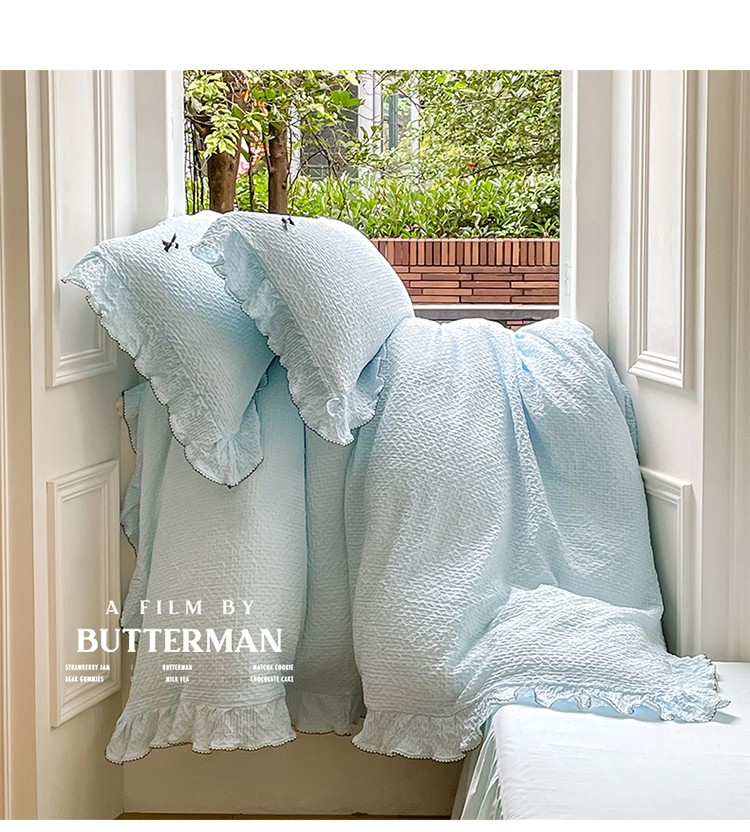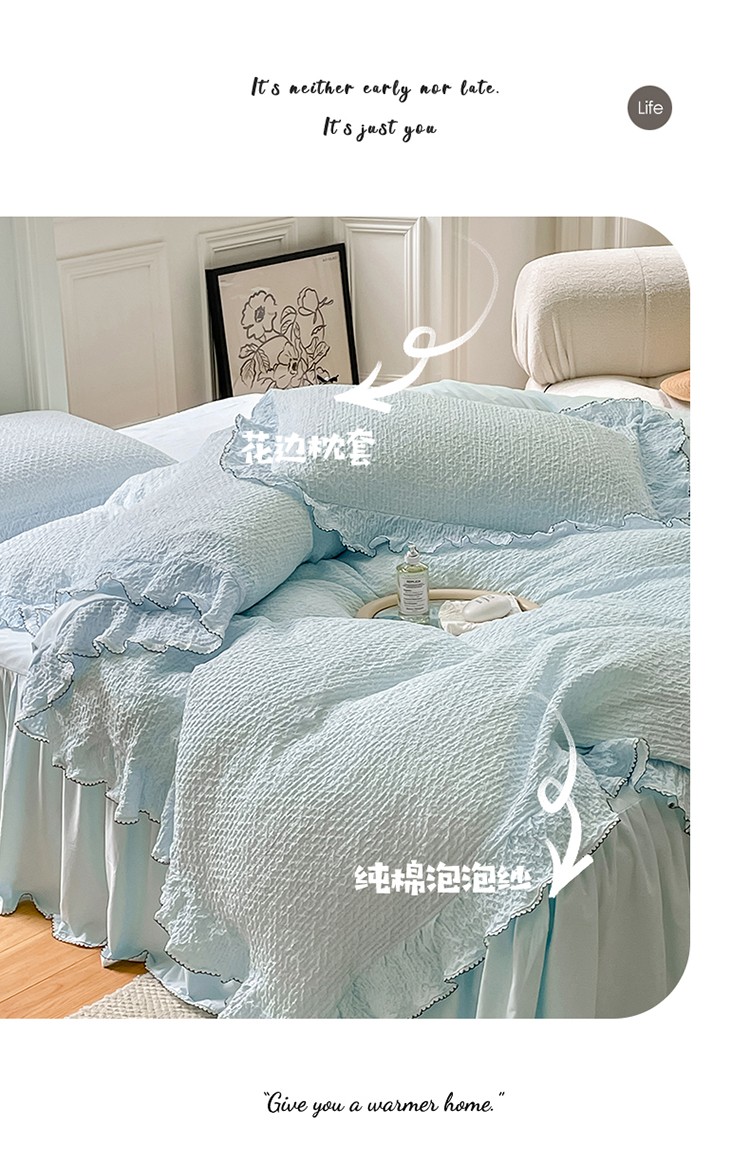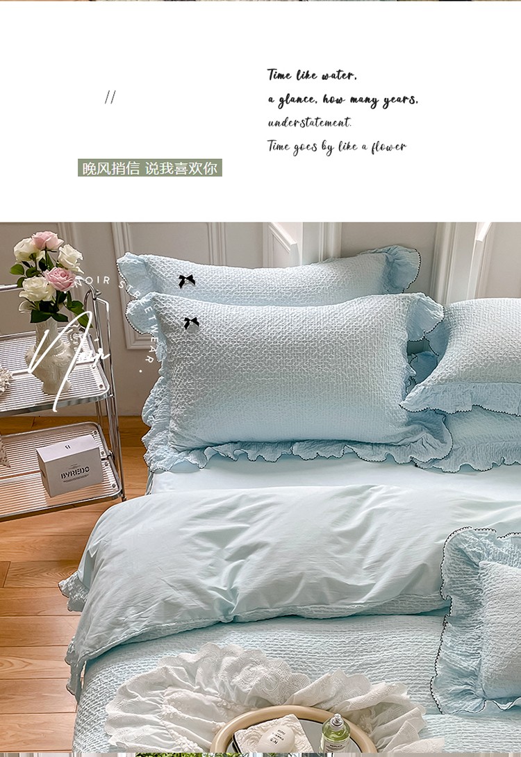商品名称:婳庭家居 2023新款雪山系列全棉泡泡纱四件套 雪山-海盐蓝