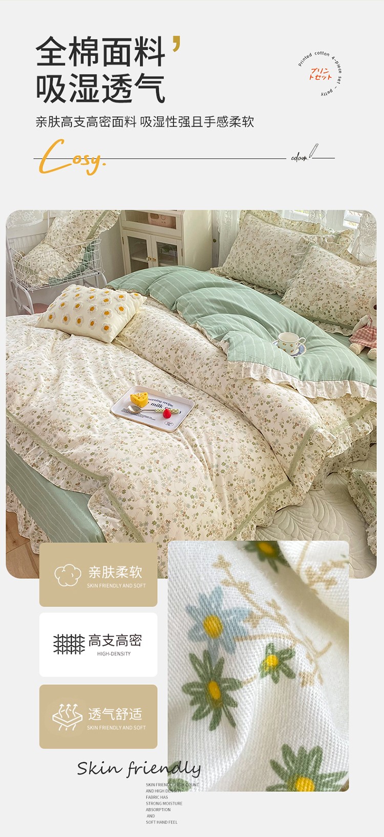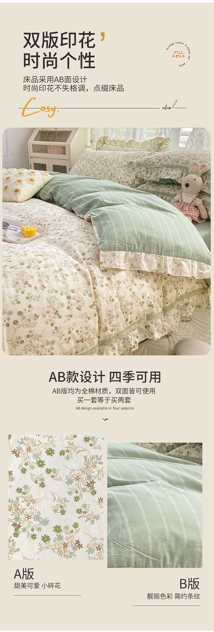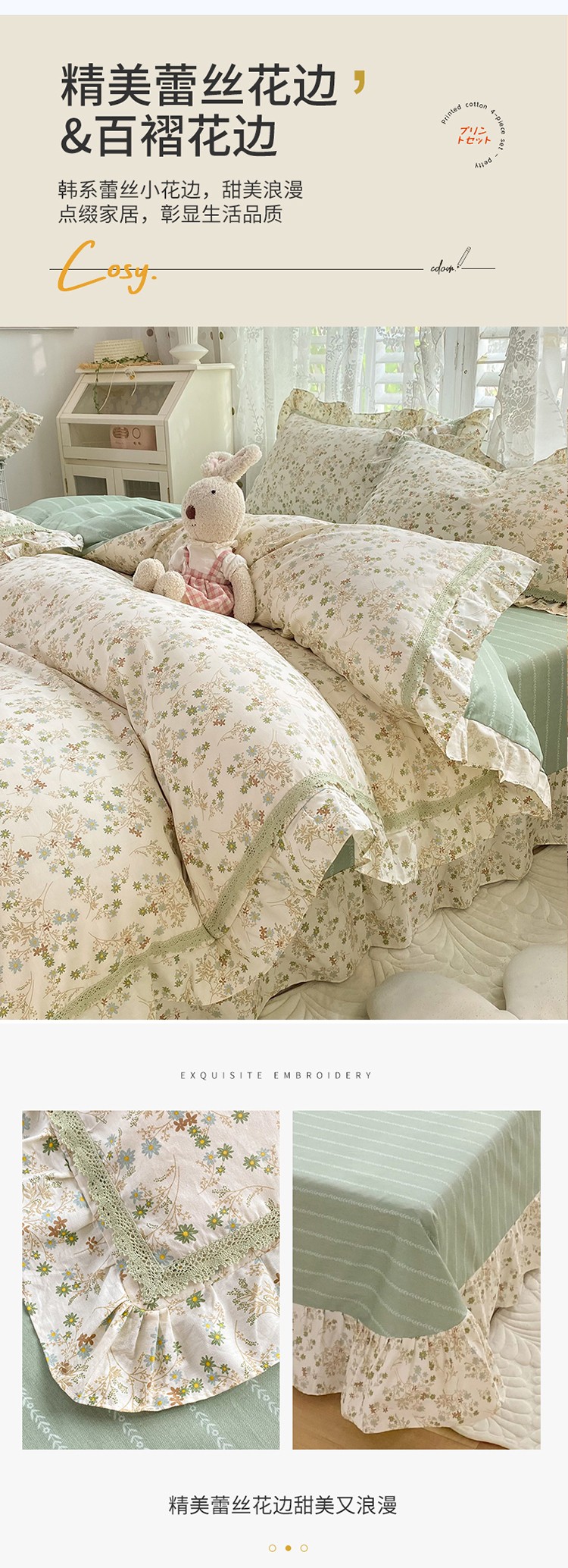 (总)艾唯希家纺 2025新款全棉双层花边四件套纯棉小碎花10个花型-花边系列,春意萌,恋之晴空,奶芙蓉-绿,奶芙蓉-粉,林间物语-绿,林间物语-紫,花冉,花艺漫漫,梳璃,雾里花