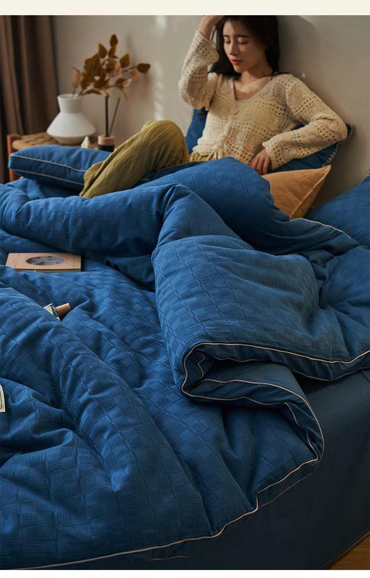 商品名称:2022新款华夫格提花立体大豆冬被-风华系列 风华-秋蓝