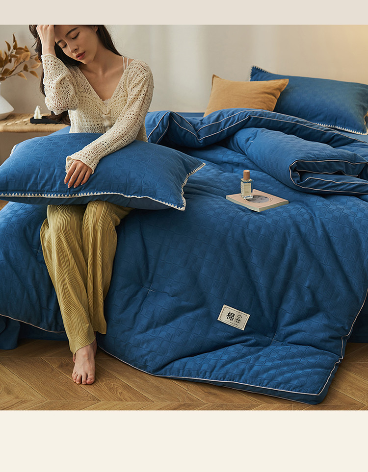 2022新款华夫格提花立体大豆冬被-风华系列 风华-秋蓝