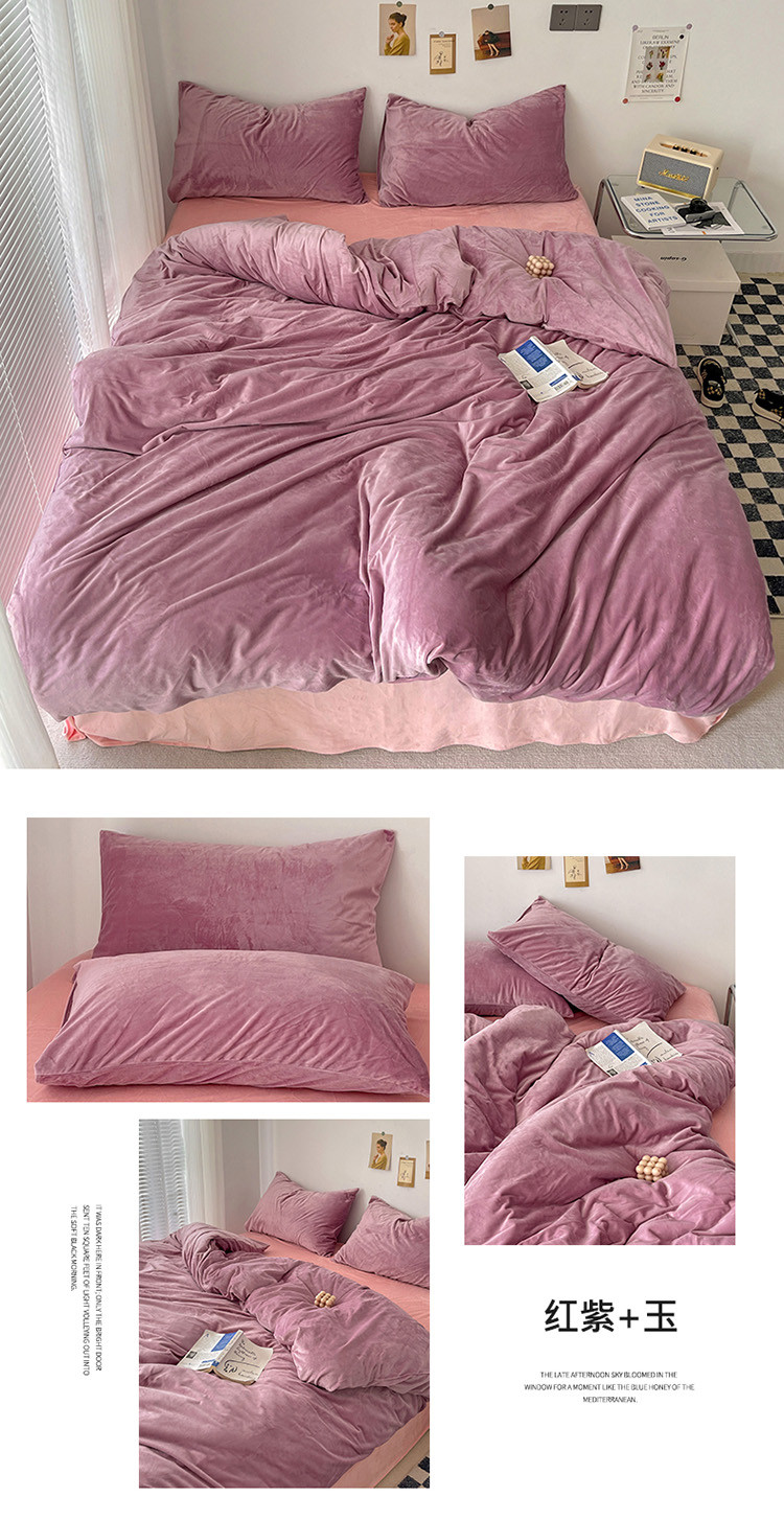 总盛馨2023新款加厚宝宝绒纯色撞色牛奶法莱绒床笠四件套,豆沙,豆沙+湖绿,粉玉,果绿,果绿+米白,果绿+浅蓝,红紫,红紫+玉,湖绿,湖绿+果绿,姜黄,姜黄+红紫,米白,米白+曜黑,浅蓝,驼色,驼色+银灰,曜黑,曜黑+银灰,银灰