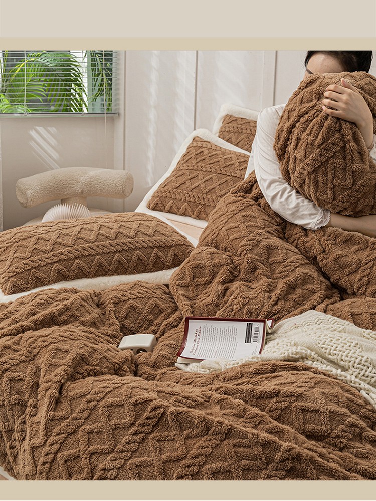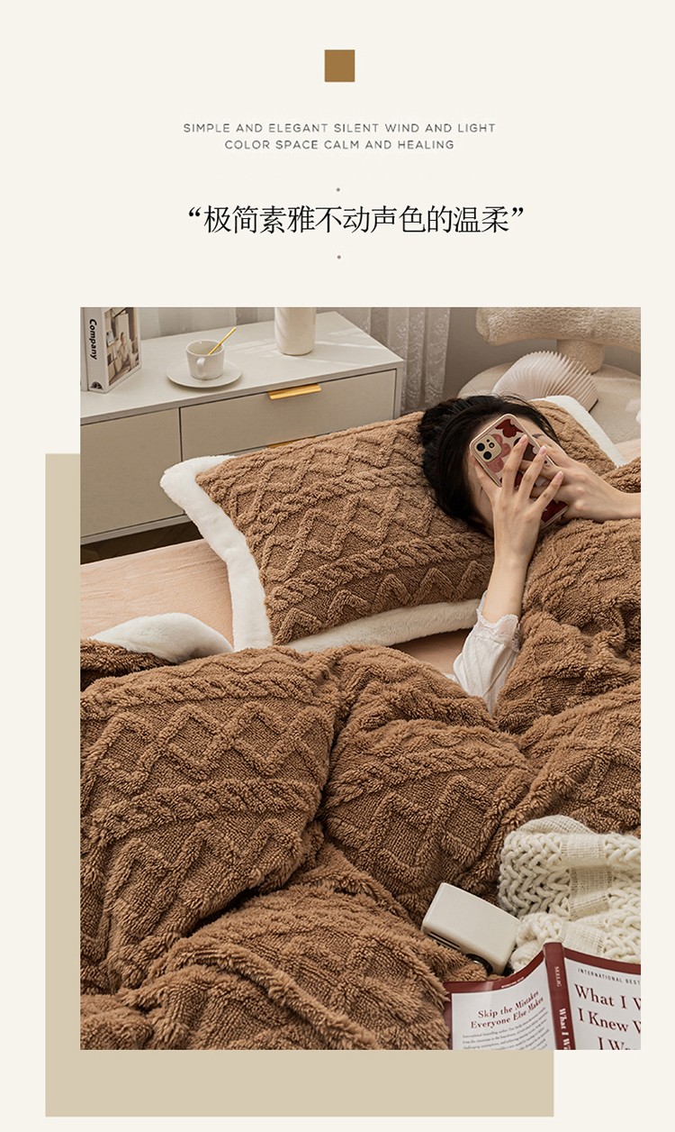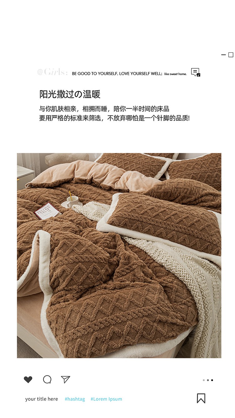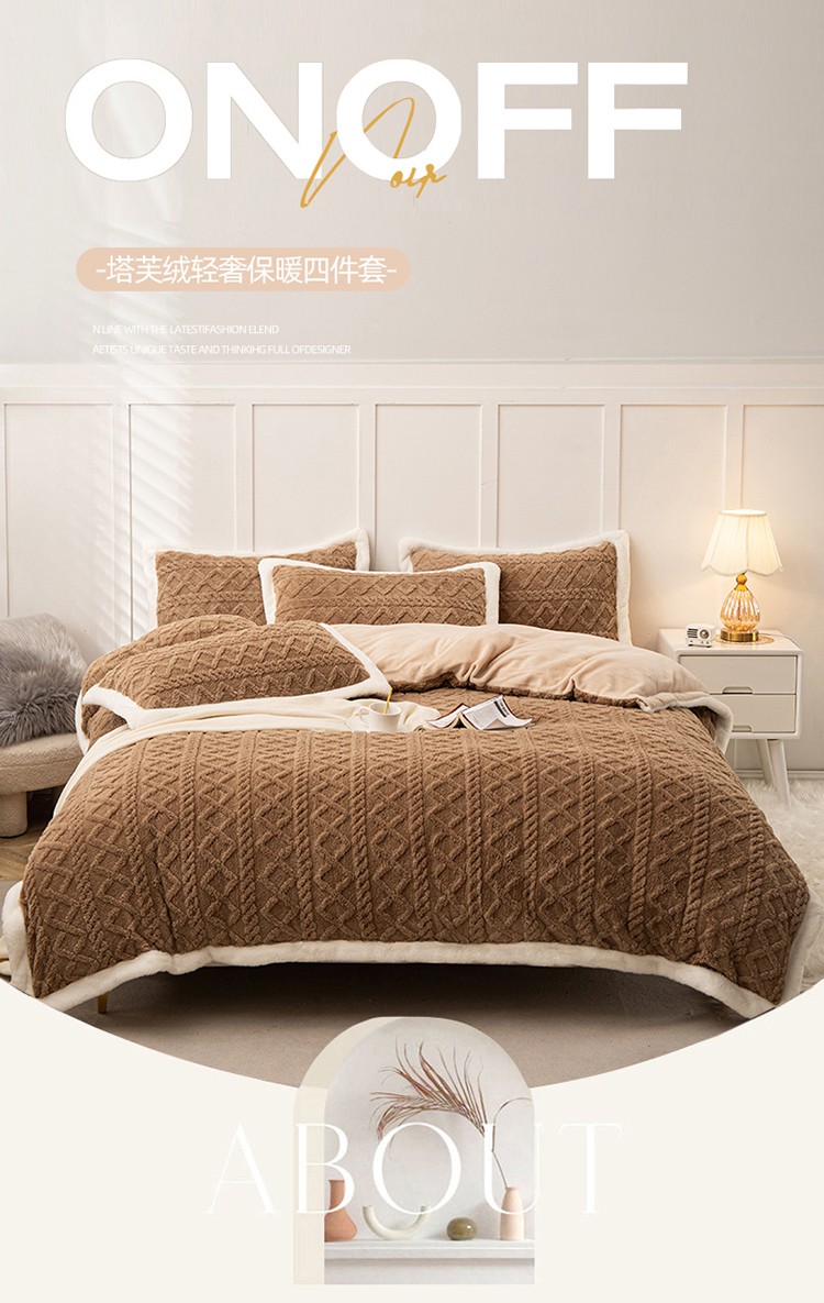 商品名称:潮邦2025【含买家秀】塔芙绒牛奶绒轻奢保暖四件套 塔芙深咖