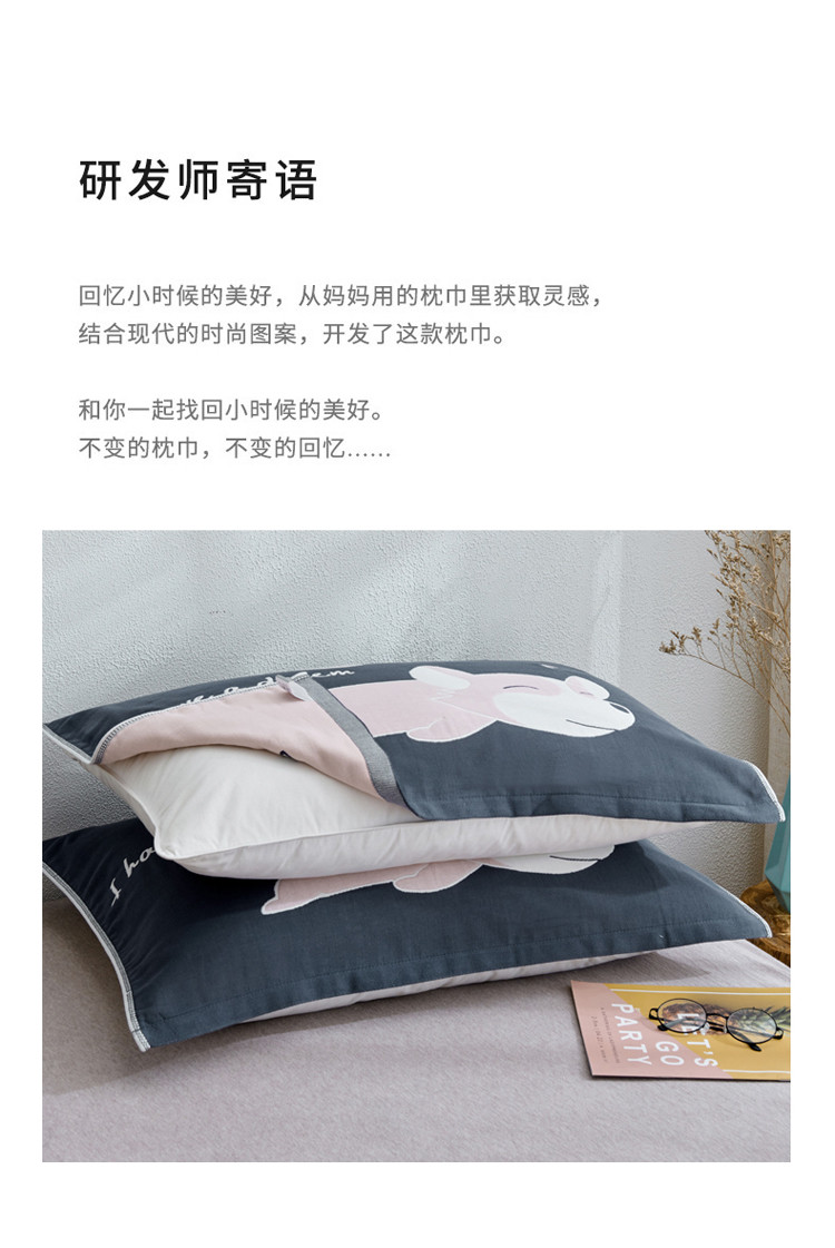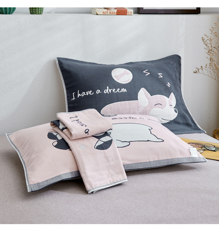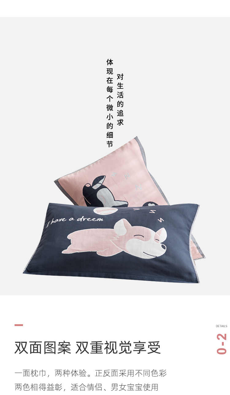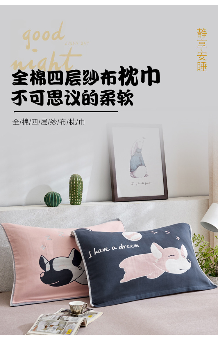 • 91家纺网 家纺一手货源 找家纺 朴尔 2022新款全棉四层纱布大版花独版枕巾(一对) 梦想狗狗(50*80)