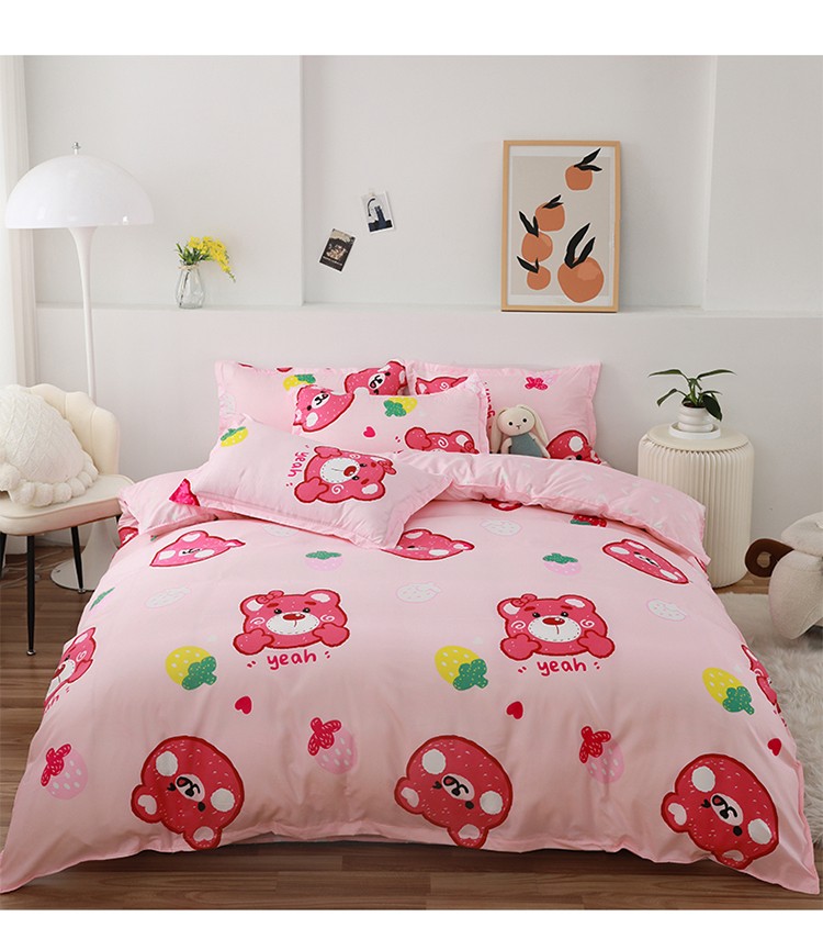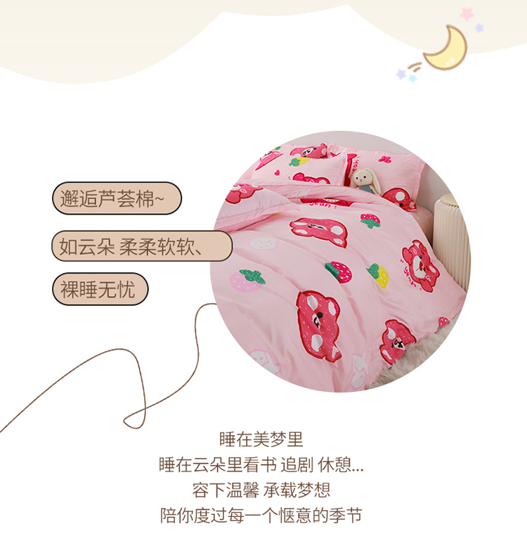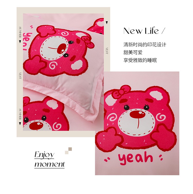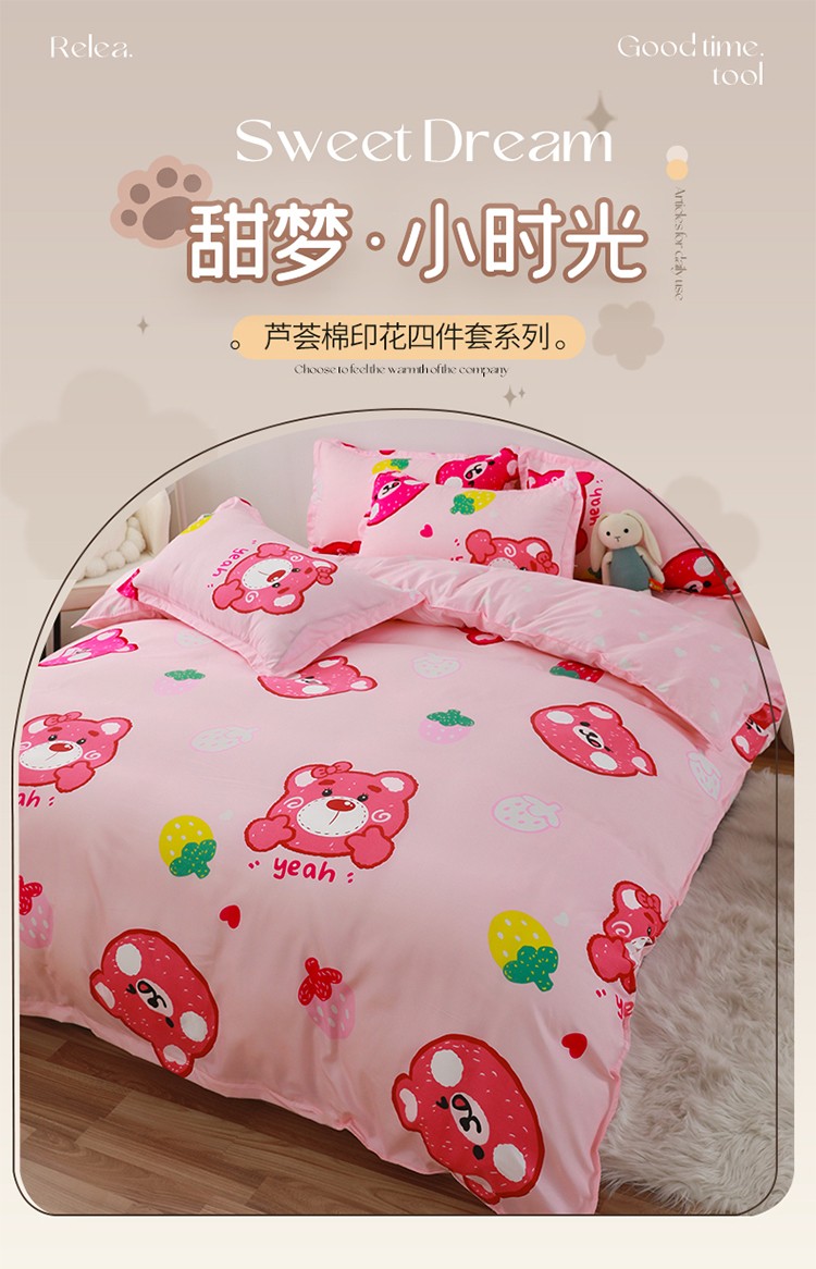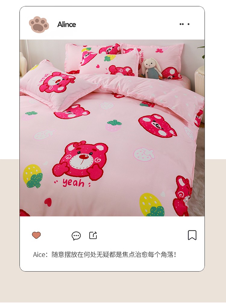 妖妖家纺 2023新款芦荟棉AB双版印花四件套 嘟嘟熊头
