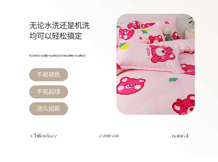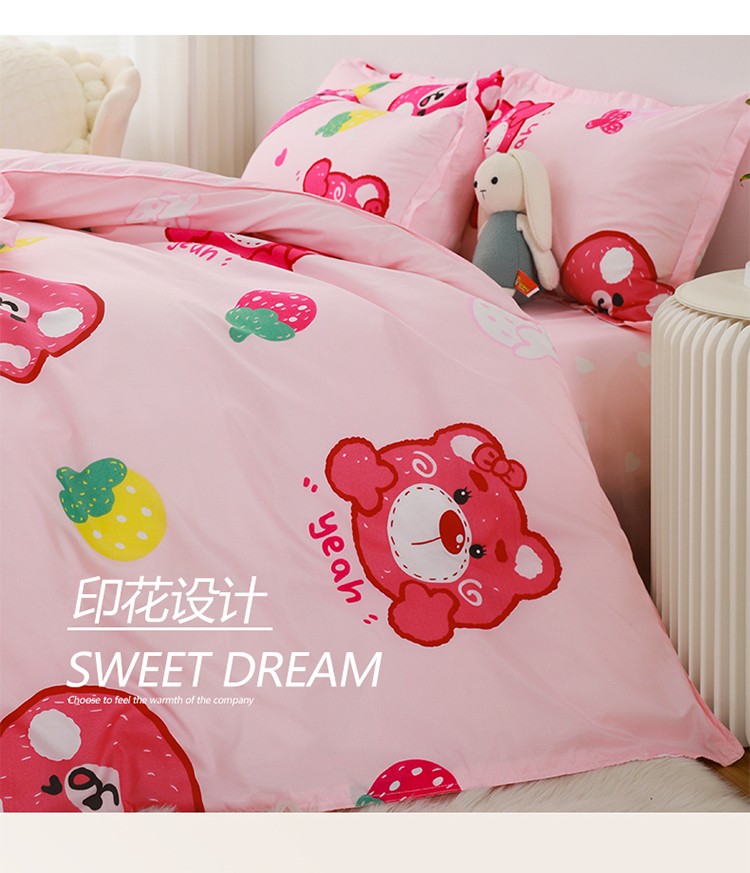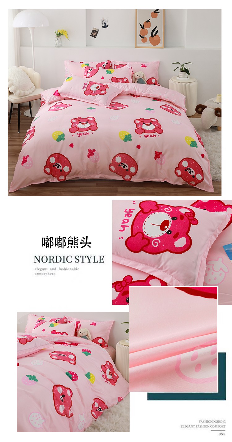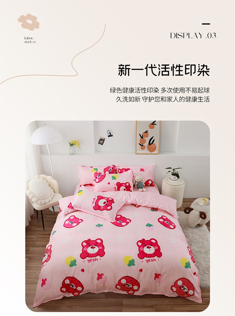 商品名称:妖妖家纺 2023新款芦荟棉AB双版印花四件套 嘟嘟熊头