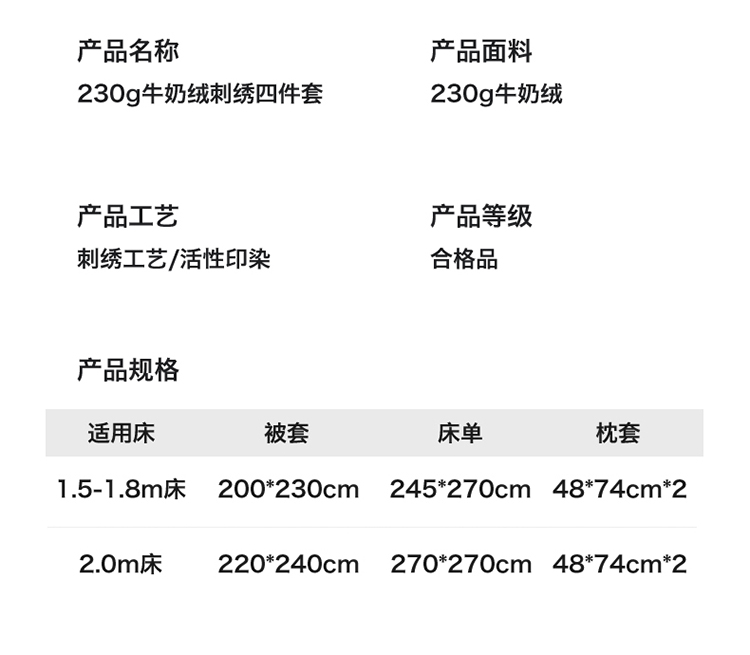 商品名称:名品优仓 新款230g牛奶绒刺绣四件套-贝拉花园 豆沙粉