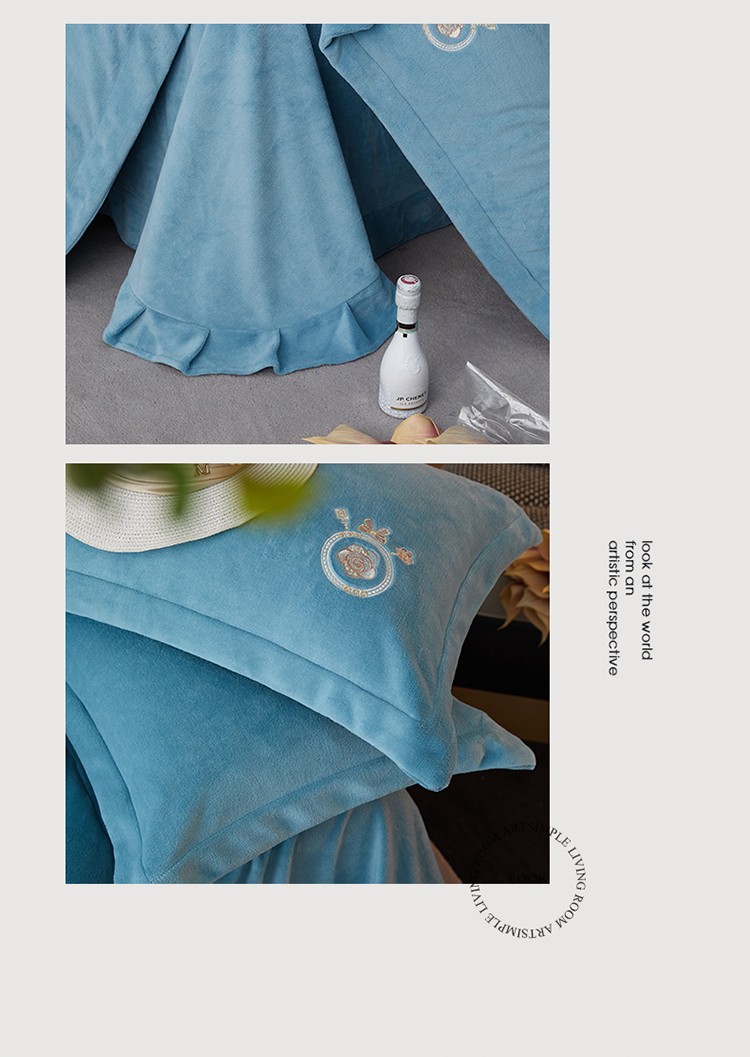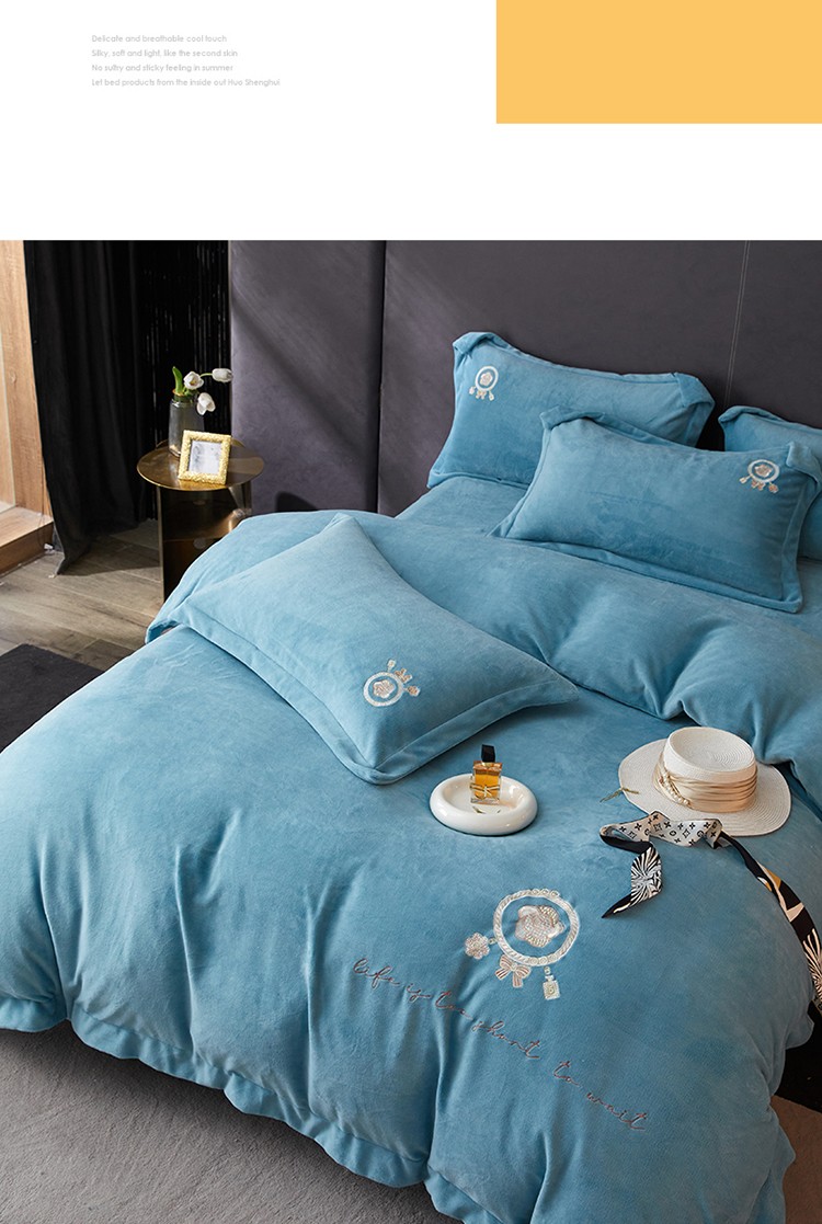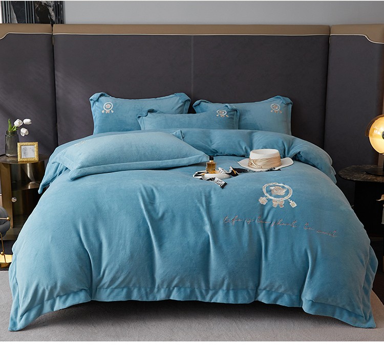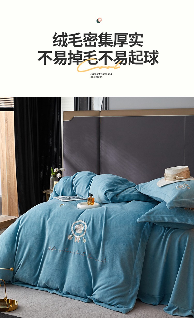 名品优仓 2022新款200g牛奶绒刺绣四件套-唯美 深海蓝