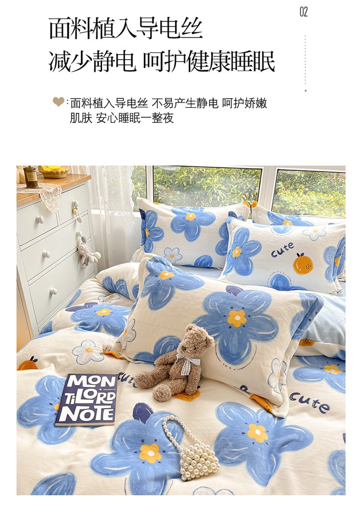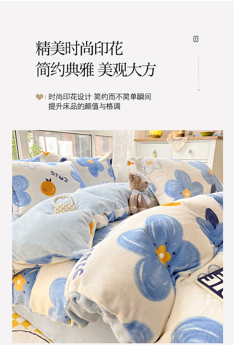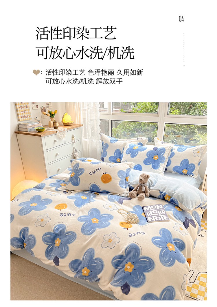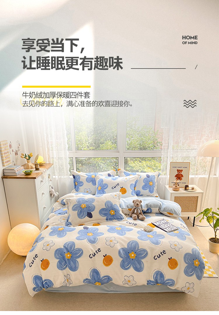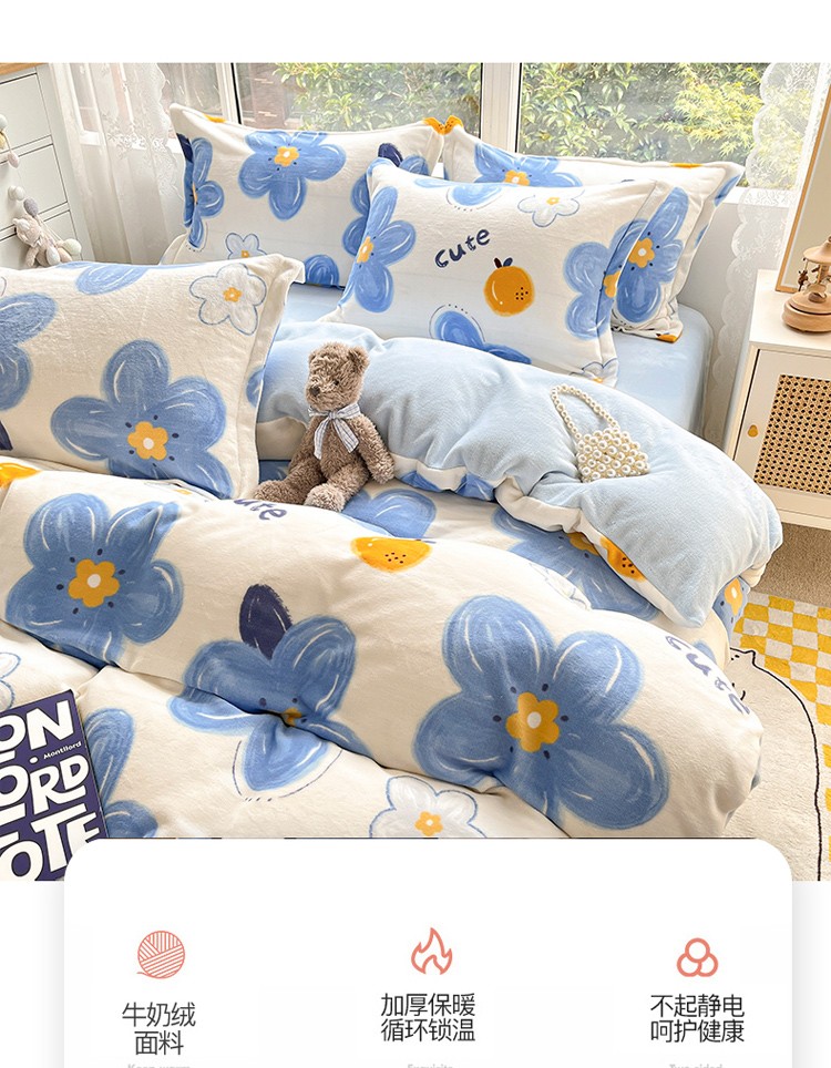 当前位置: 91家纺网 > 商品网购 > 床品套件 > 四件套 > 牛奶绒四件套 > 柒月2022新款加厚牛奶绒四件套 向阳花蓝