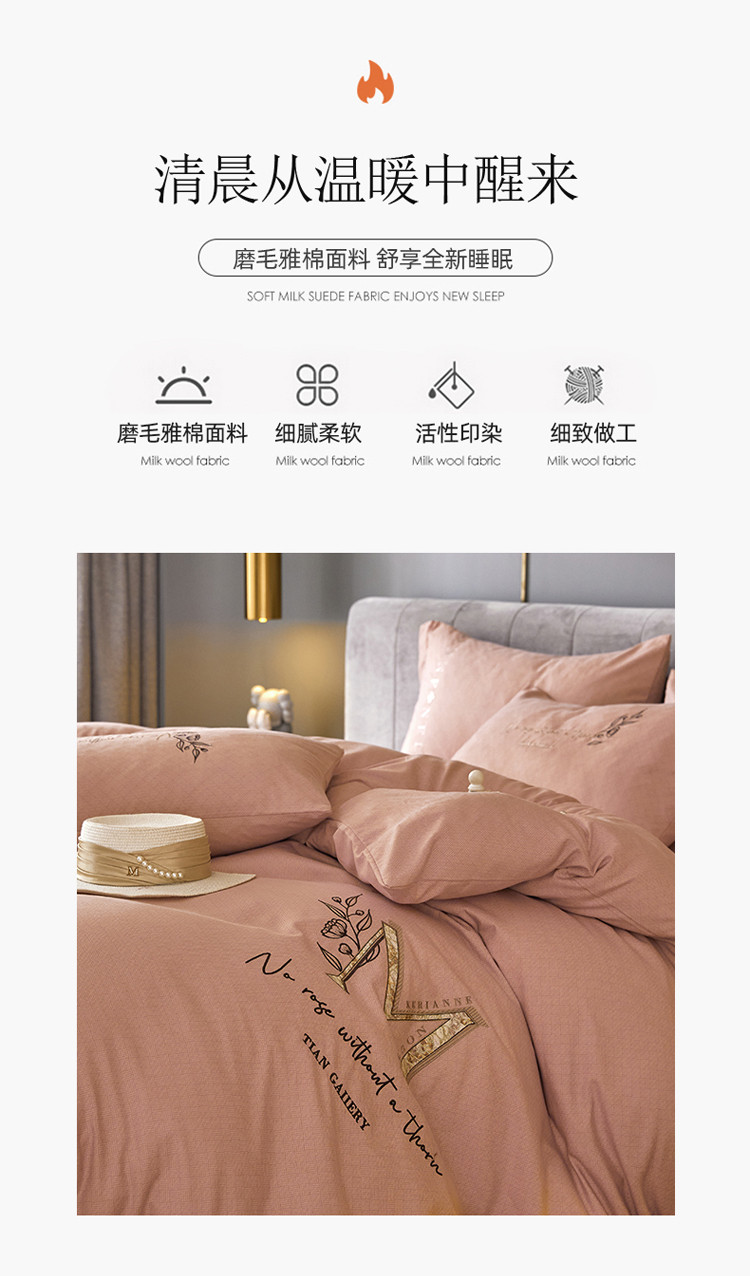 (总)凡客家居 2022新款阳绒磨毛刺绣诺伊系列四件套学生宿舍三件套
