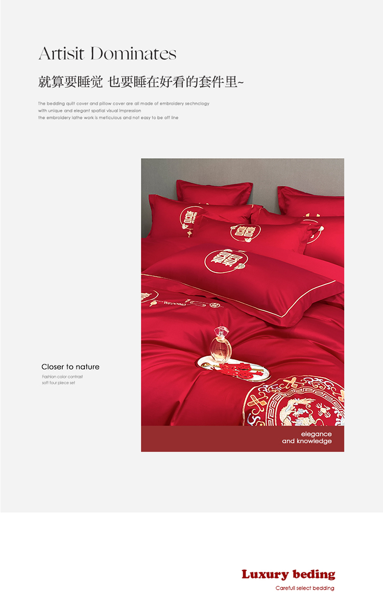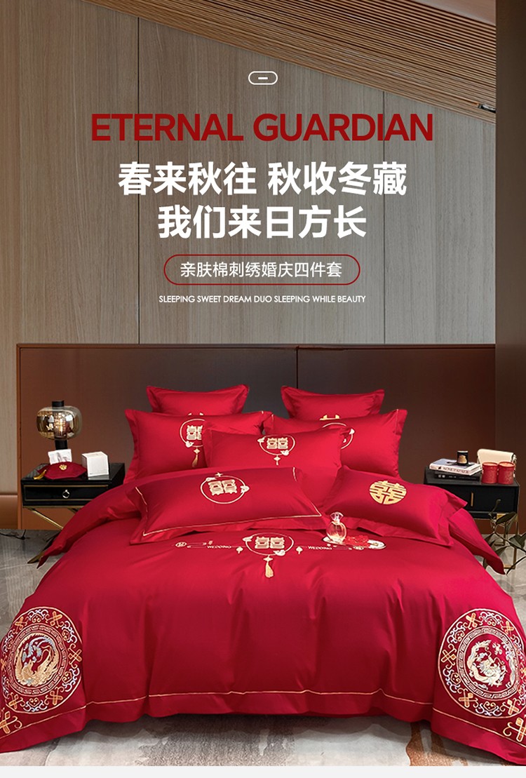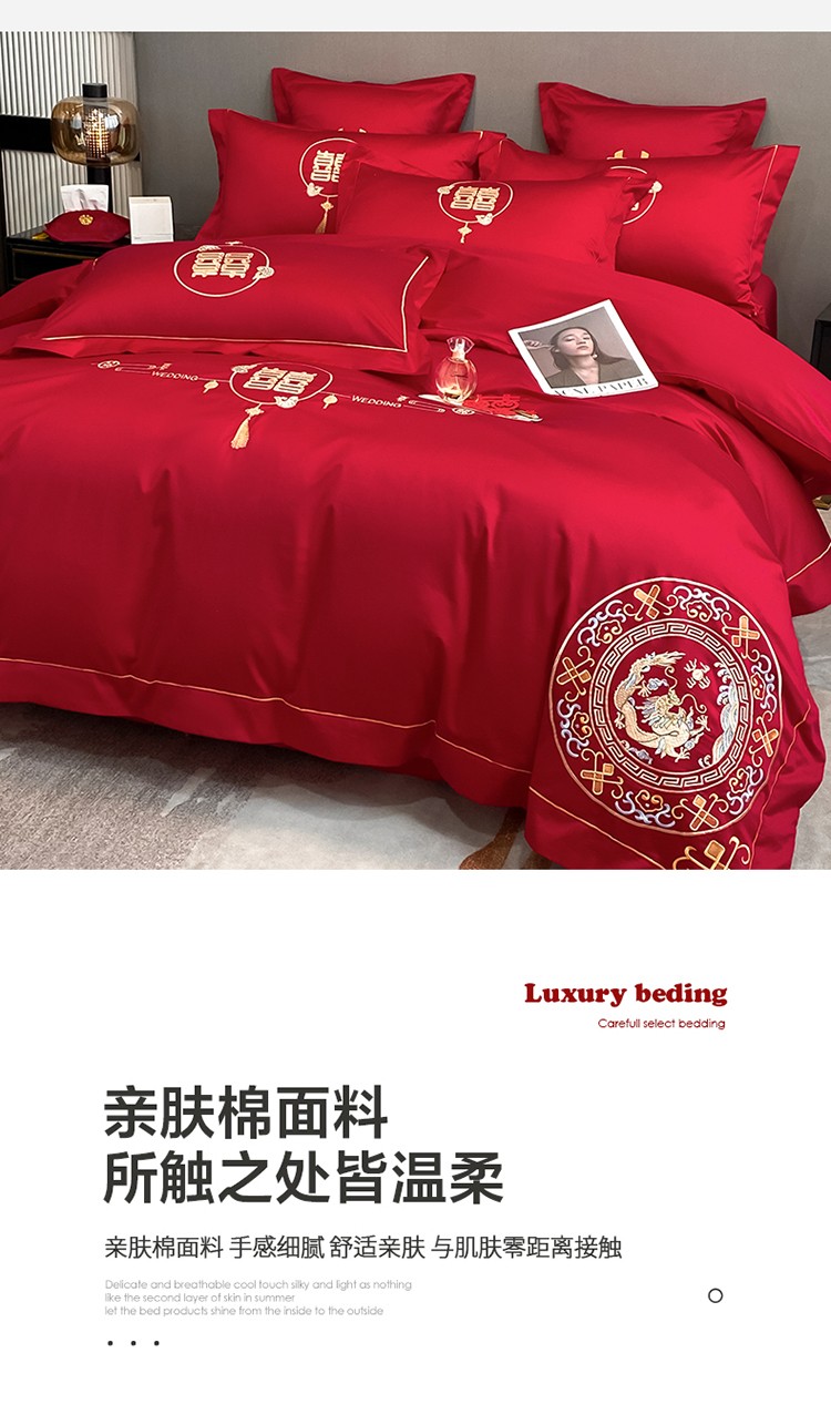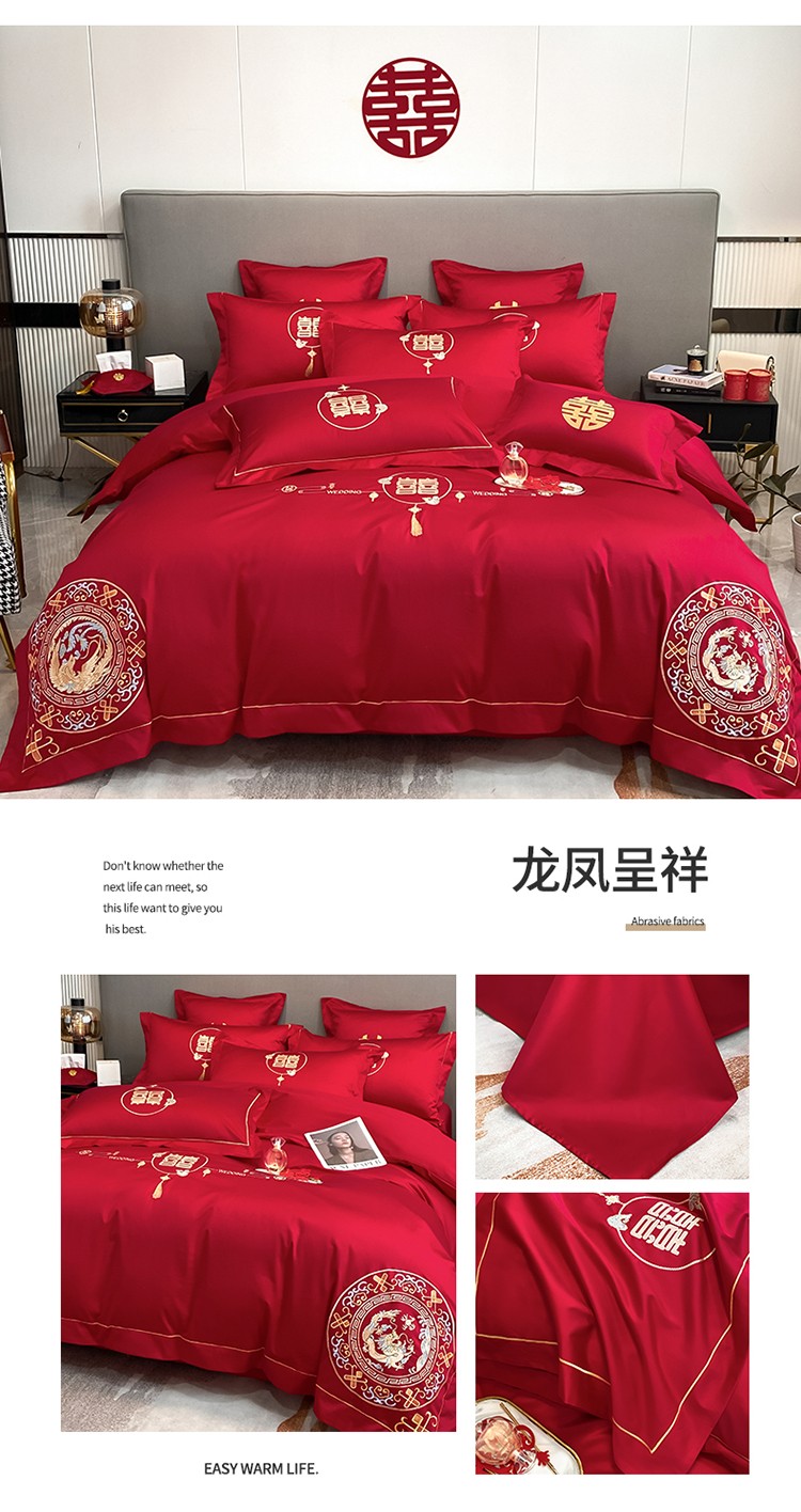 当前位置: 91家纺网 > 商品网购 > 床品套件 > 四件套 > 欧乐蒂 2022新款亲肤棉刺绣婚庆四件套 龙凤呈祥