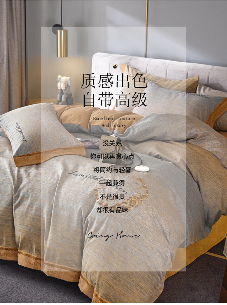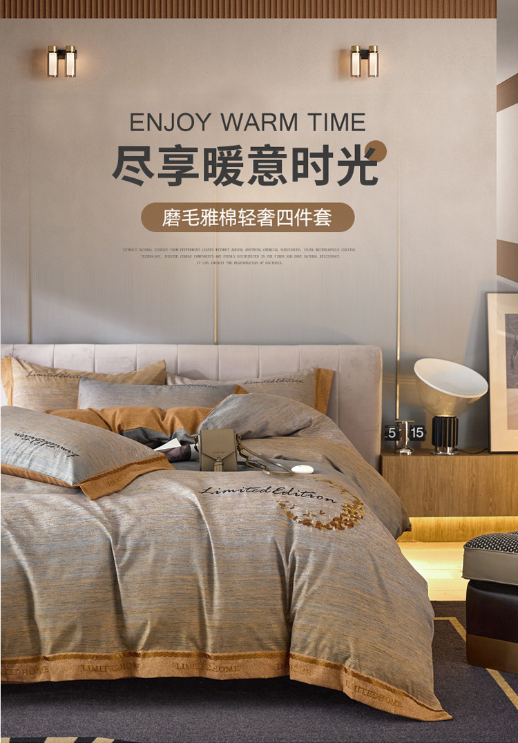 凡客家居 2022新款阳绒磨毛刺绣卡曼系列四件套 卡曼-灰