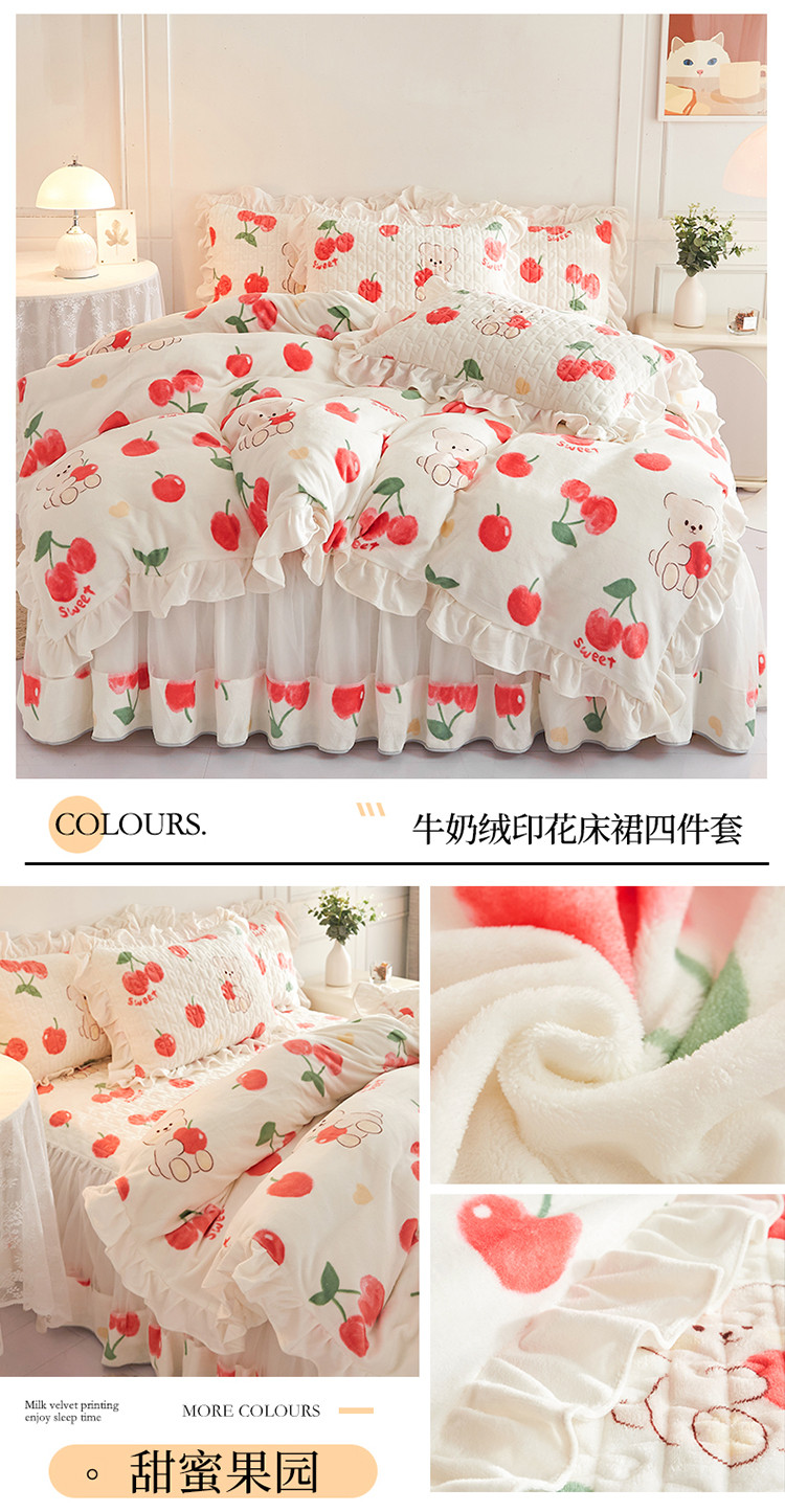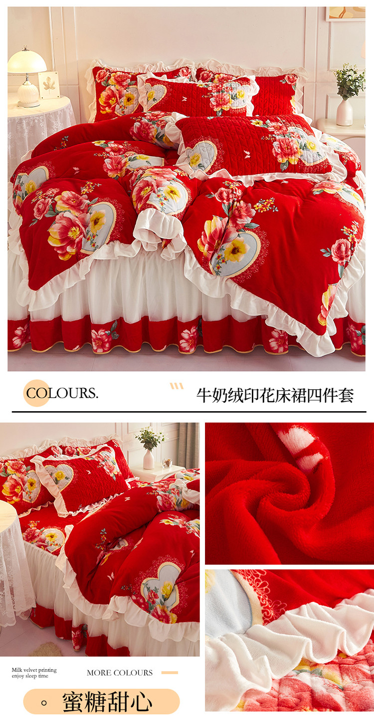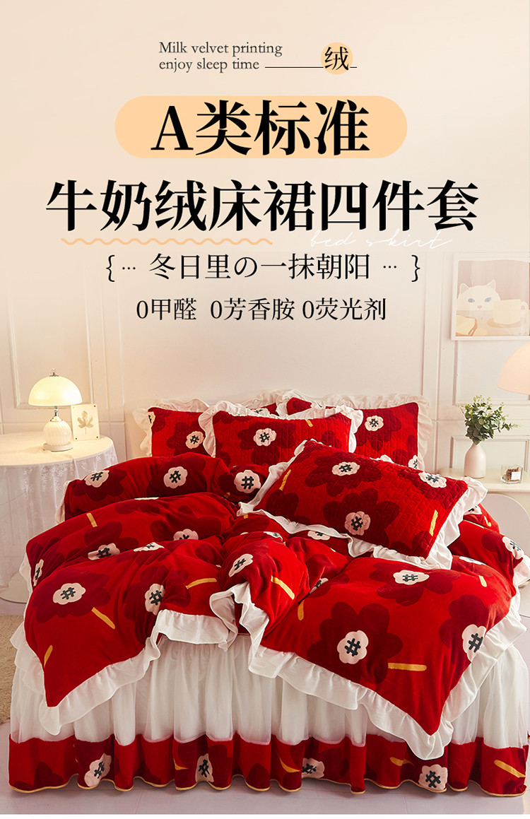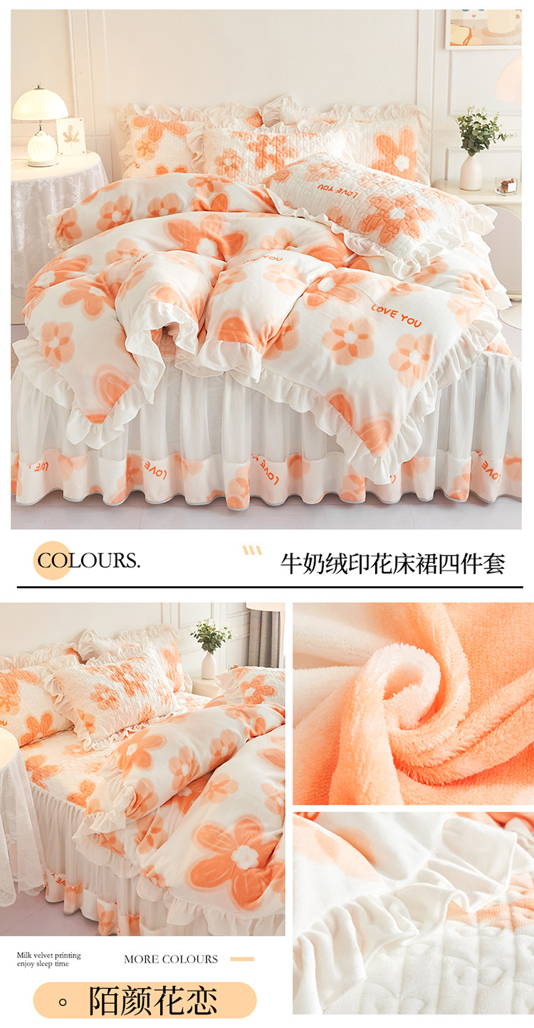 (总)宜凡2022新款A类牛奶绒印花床裙四件套