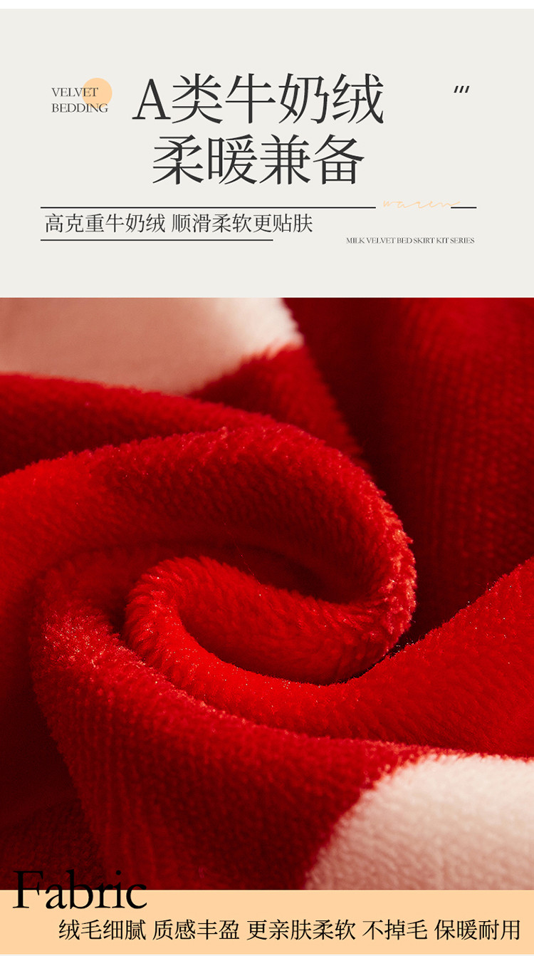 (总)宜凡家纺 2025新款婴儿绒压花全夹棉床裙四件套,韵雅-中国红,韵雅-黑天鹅