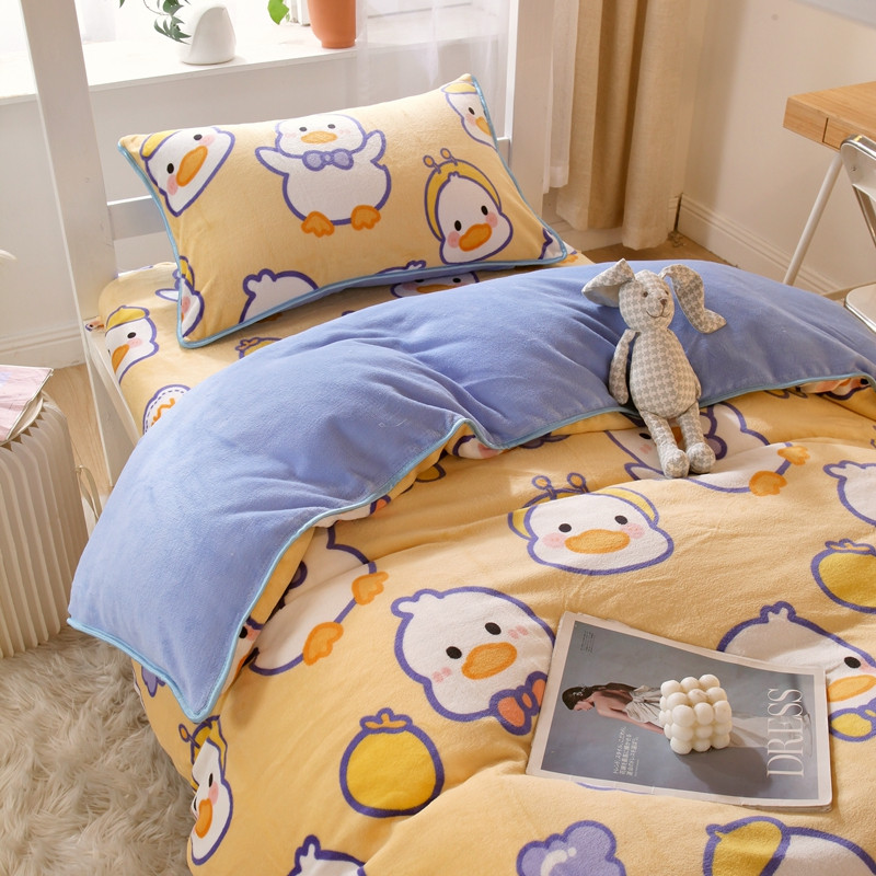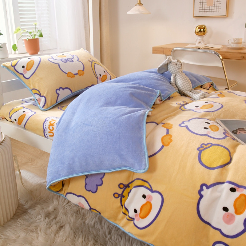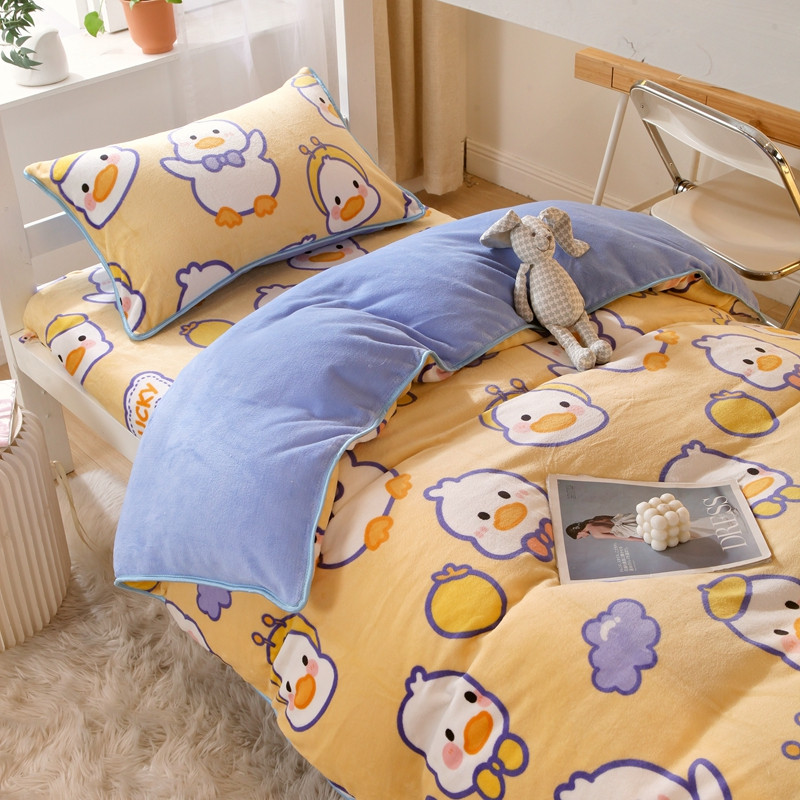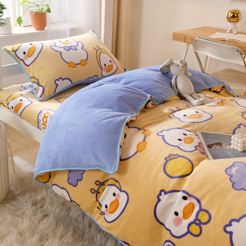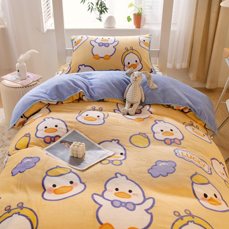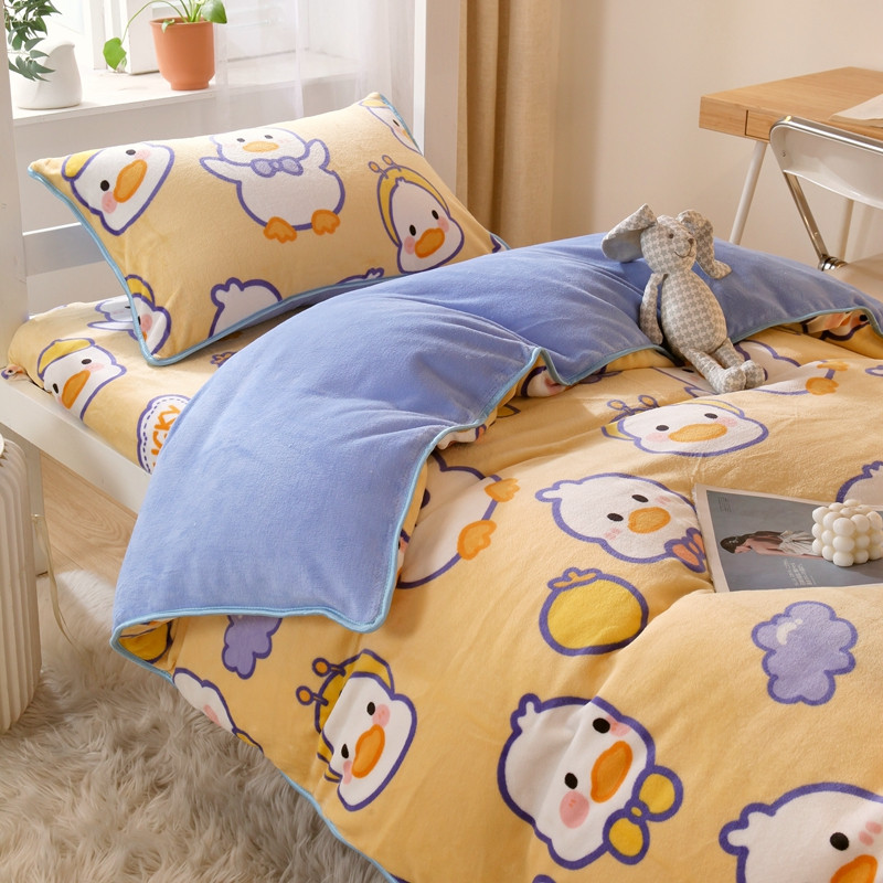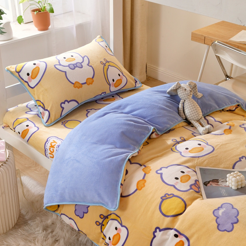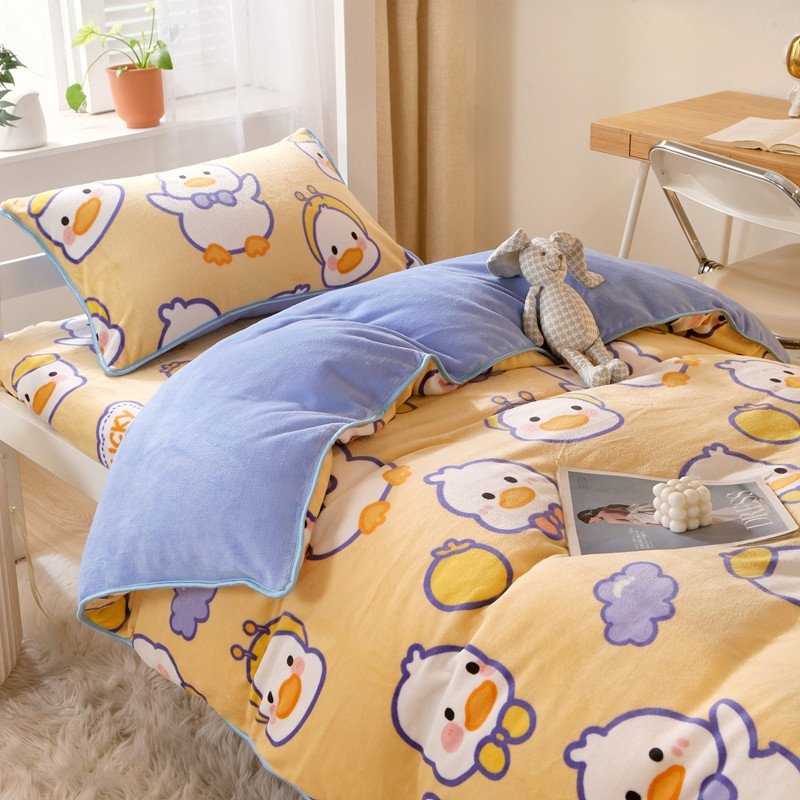 当前位置: 91家纺网 > 商品网购 > 床品套件 > 四件套 > 牛奶绒四件套 > 金鑫汇 2022新款牛奶绒学生上下铺三件套 欢乐鸭-黄