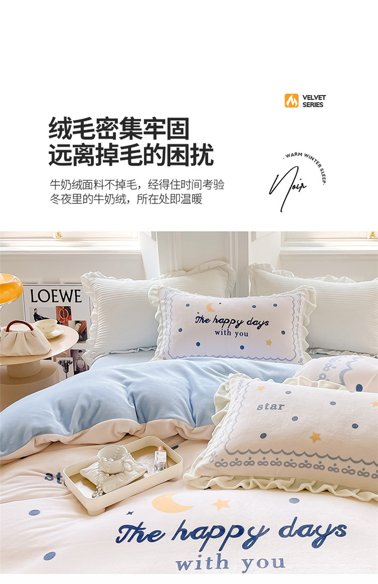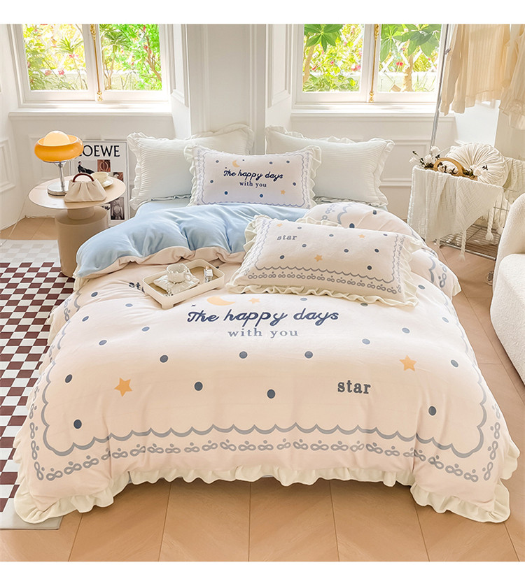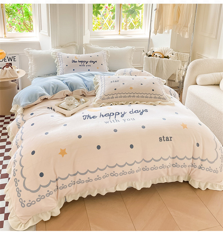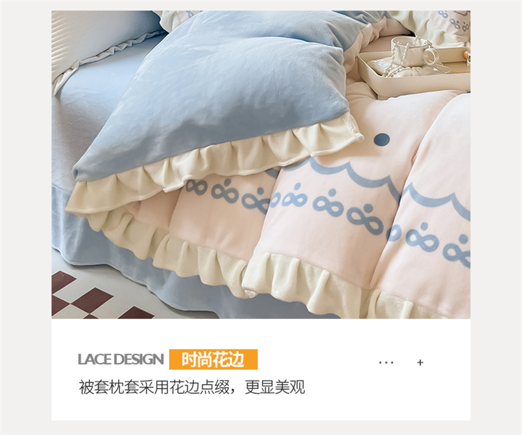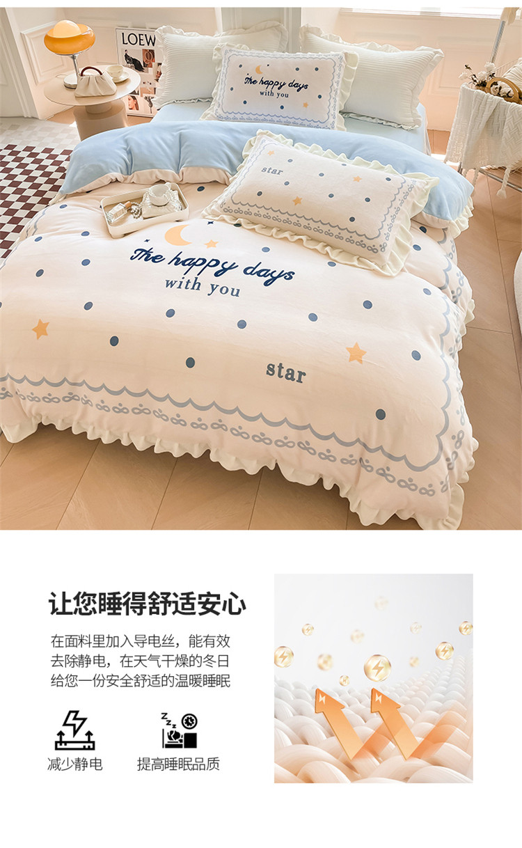商品名称:懒猫 2022新款大版牛奶绒花边款四件套 星空